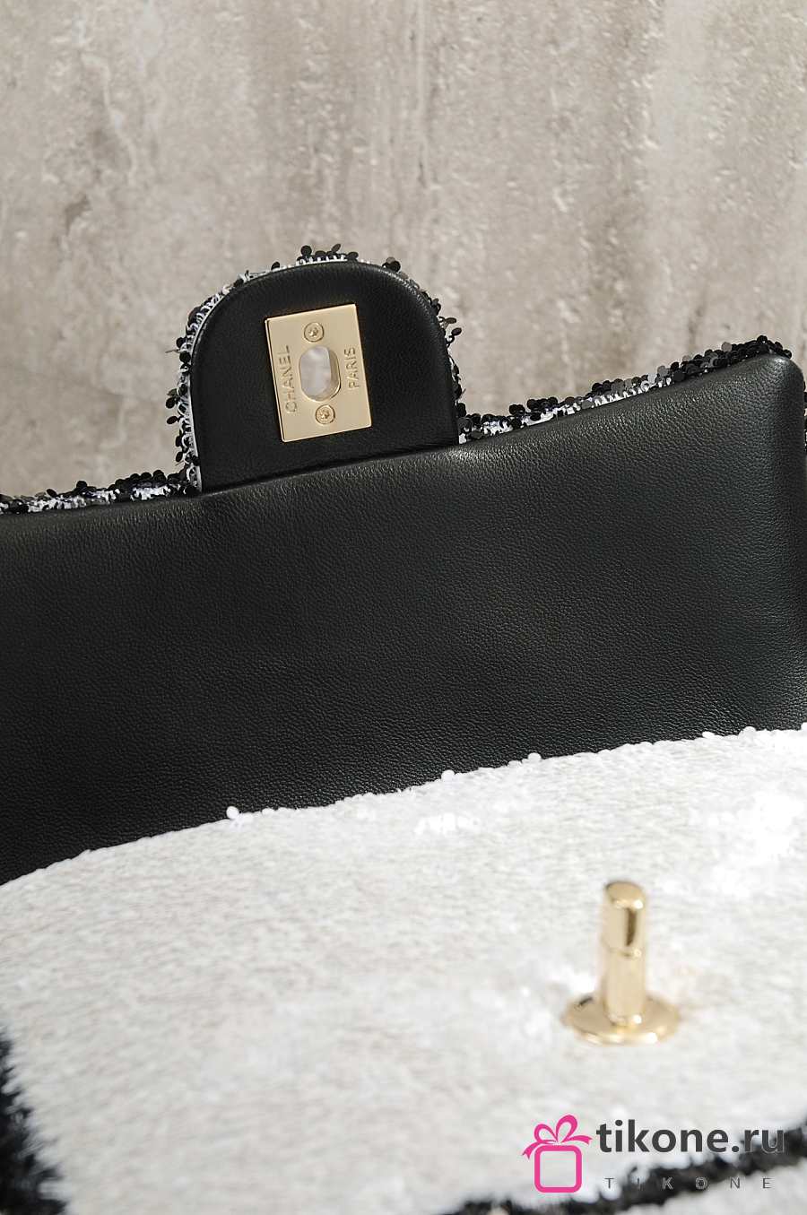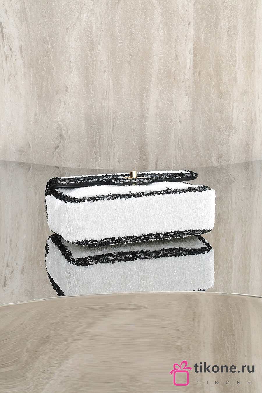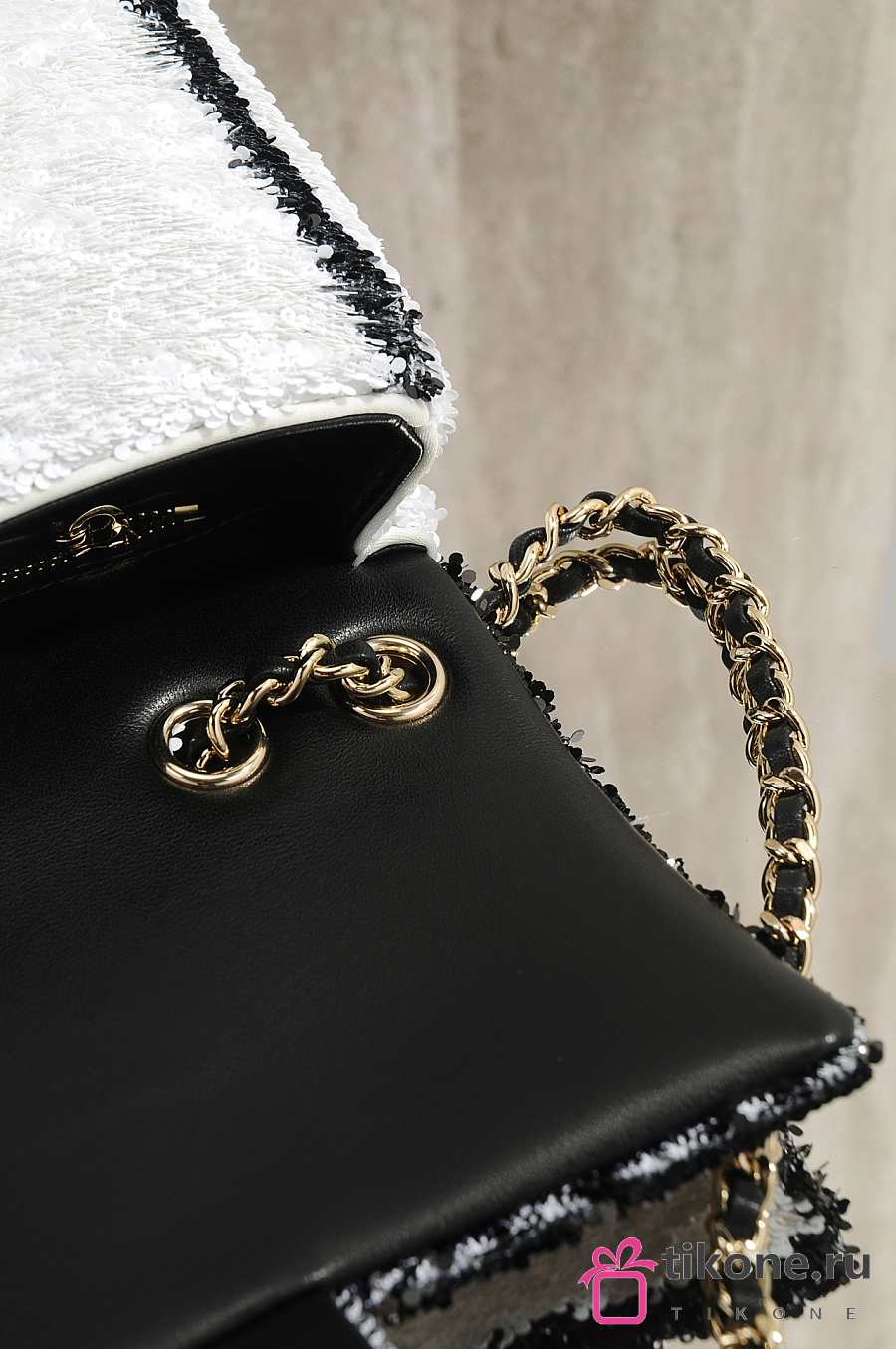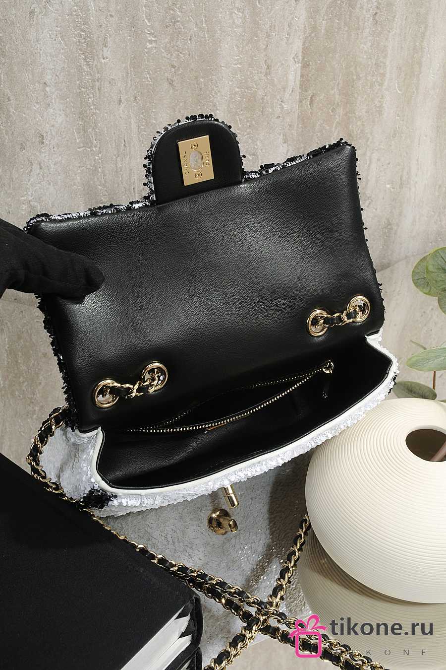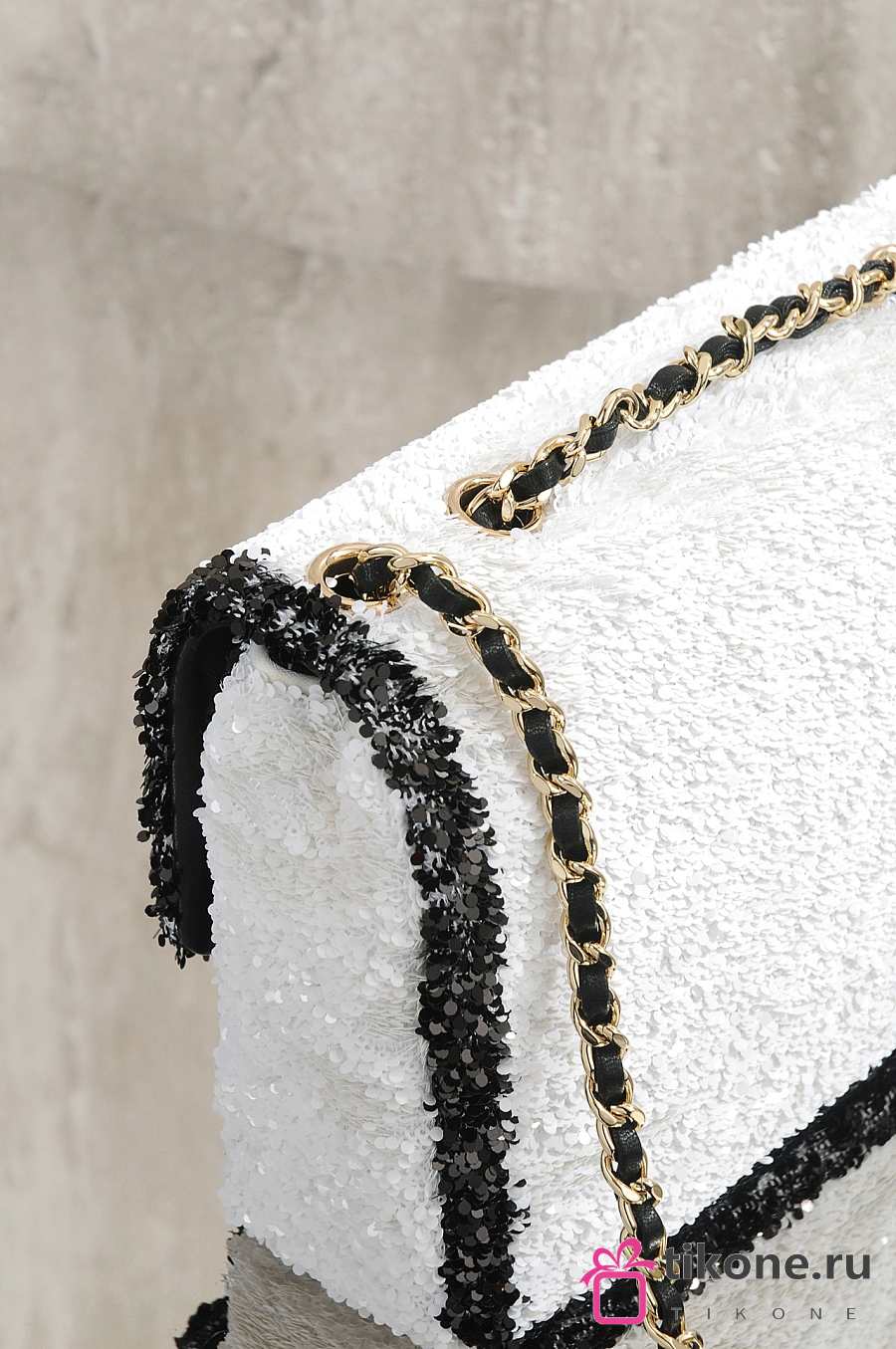Chanel Flap Bag Sequins & Gold Tone Metal White & Black - 21x14x8cm