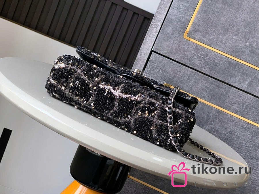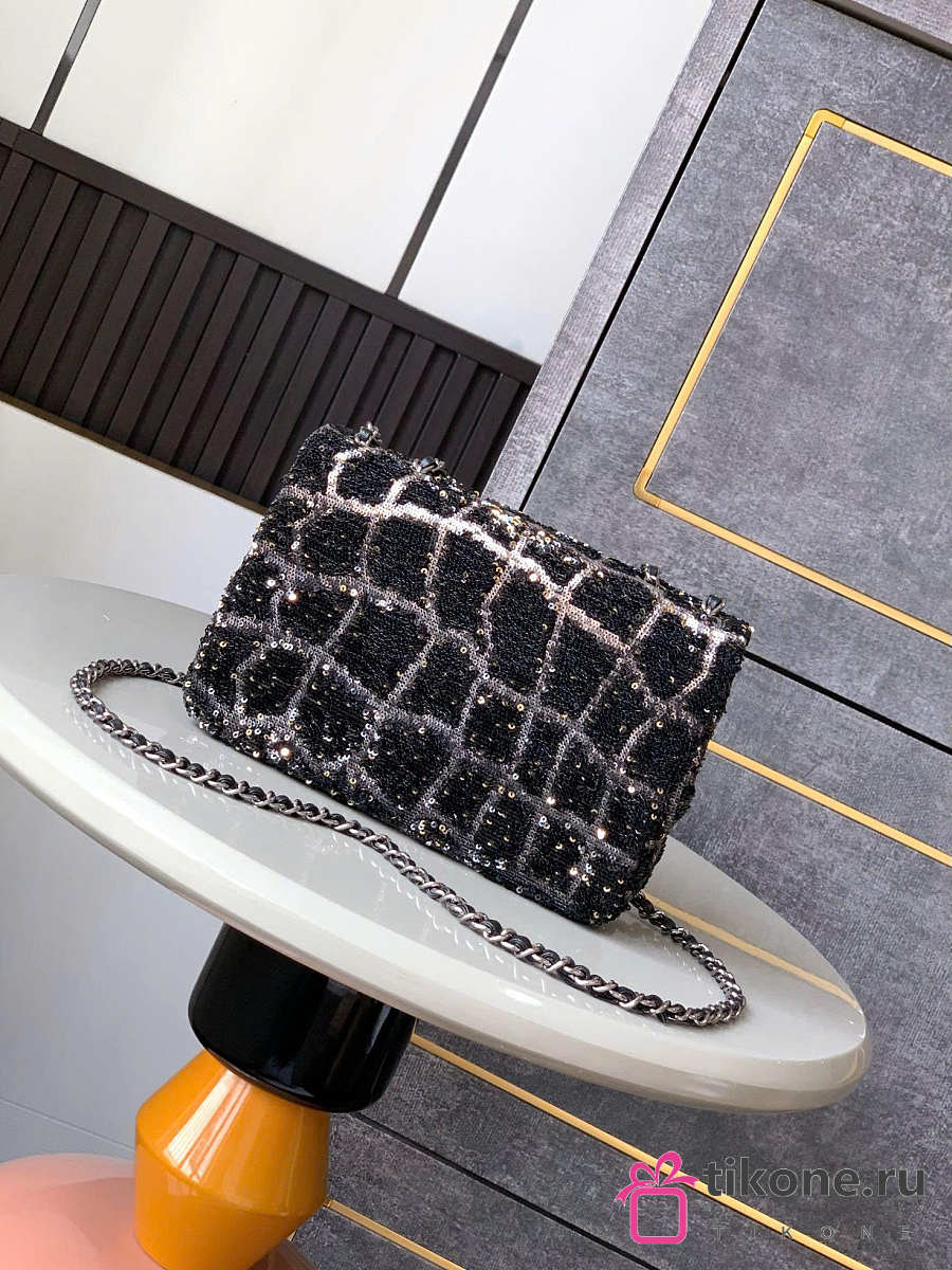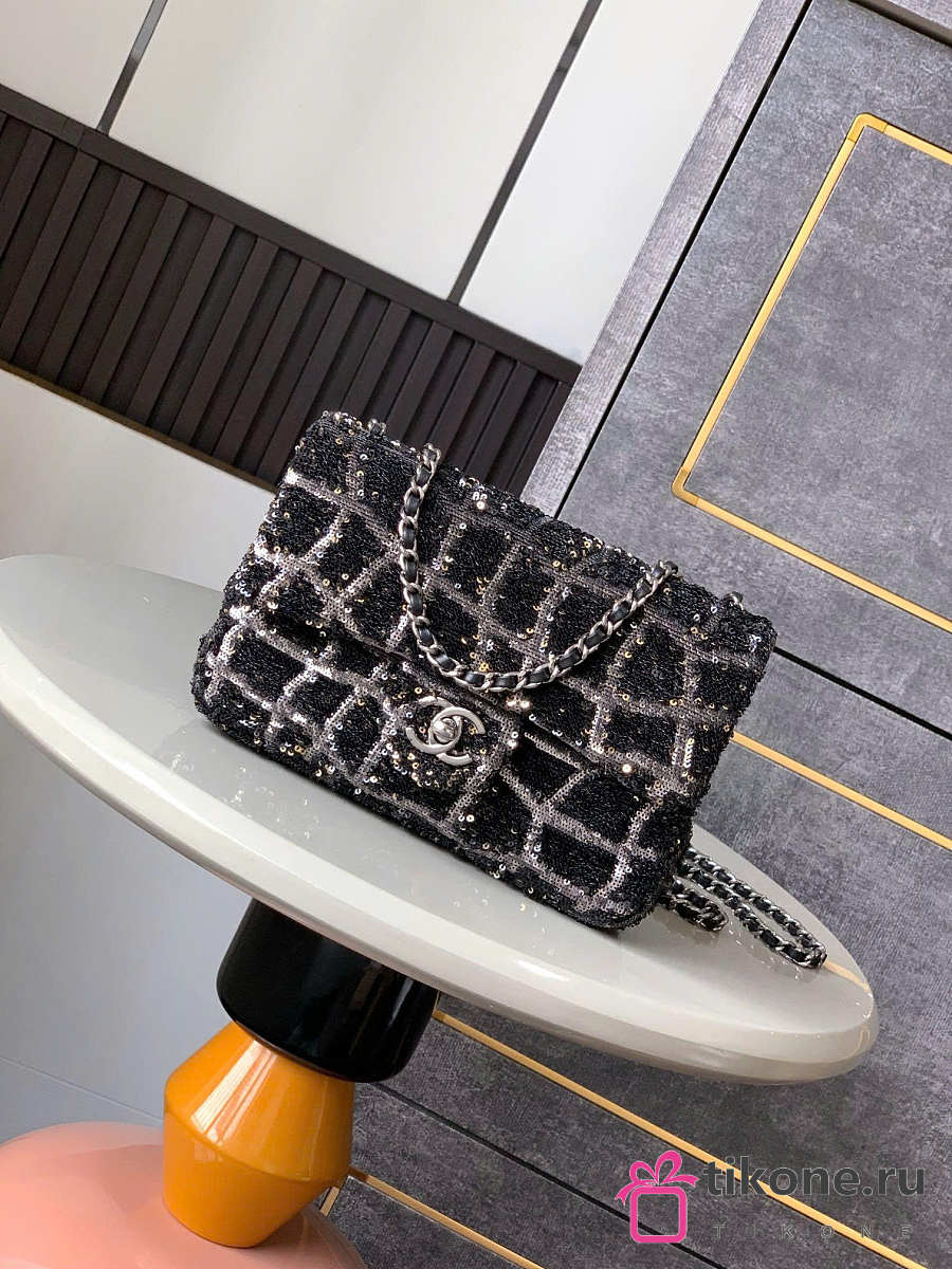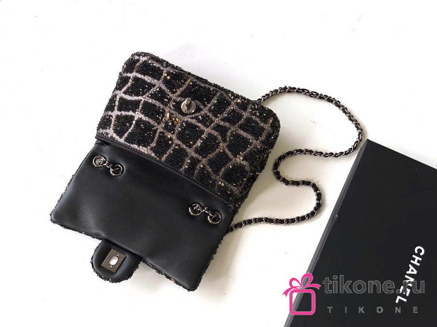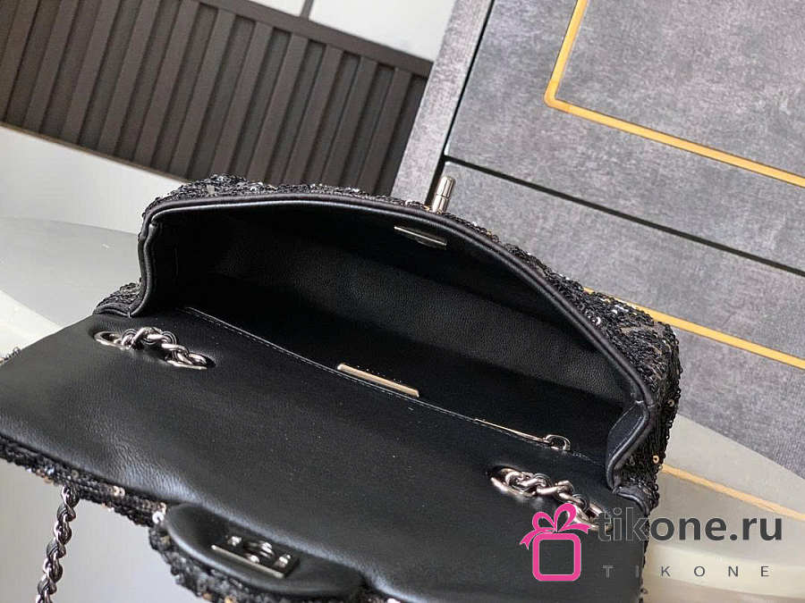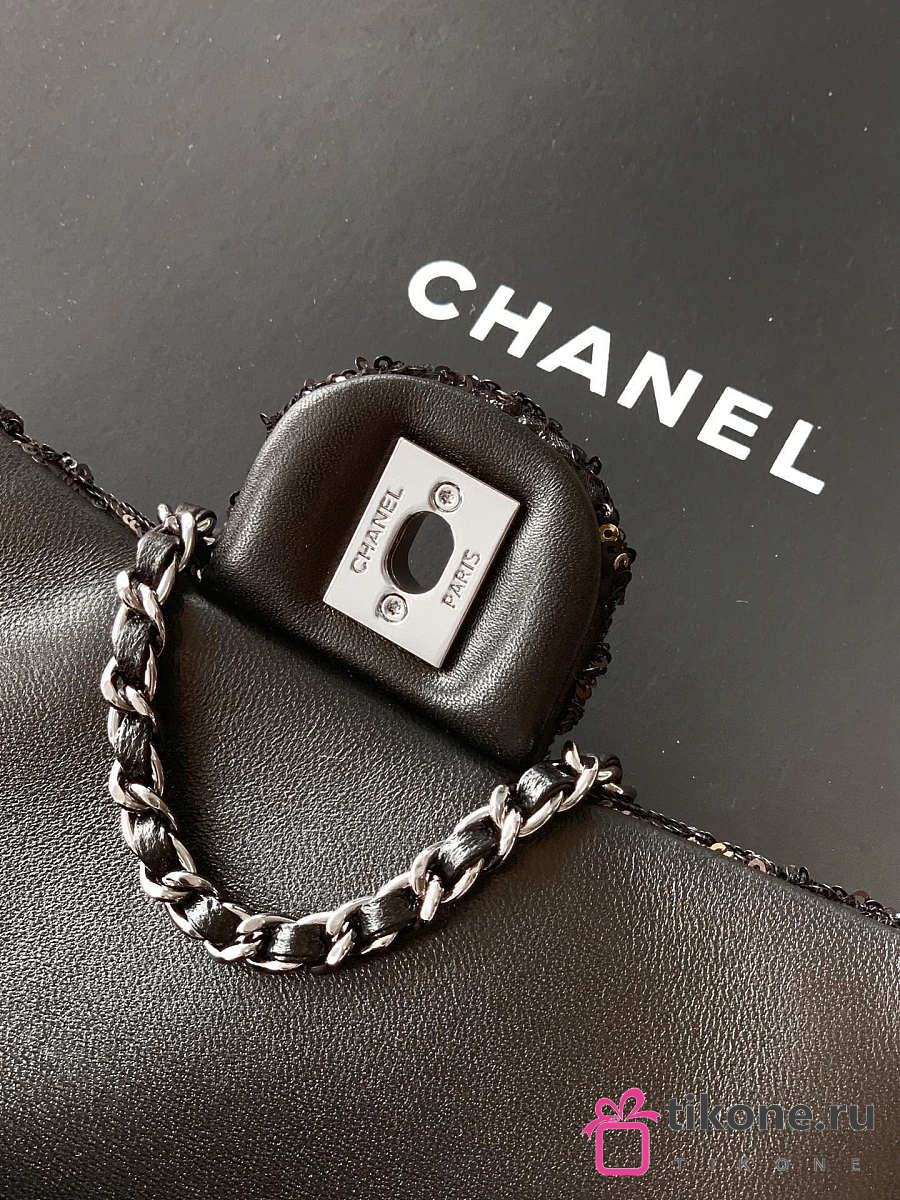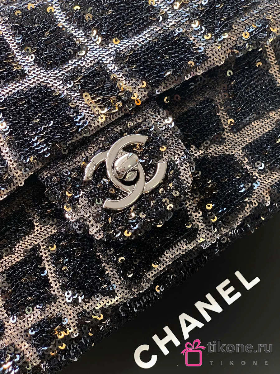 Chanel Flap Bag Sequins & Silver Gold Tone Metal Black - 20x10x7cm