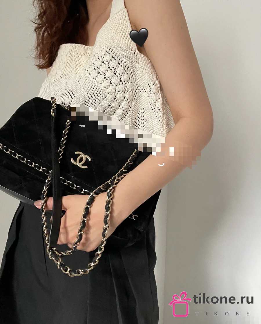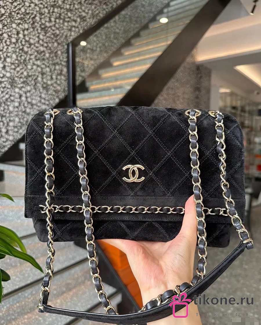 Chanel Flap Bag Stitched Suede Shoulder Bag Black