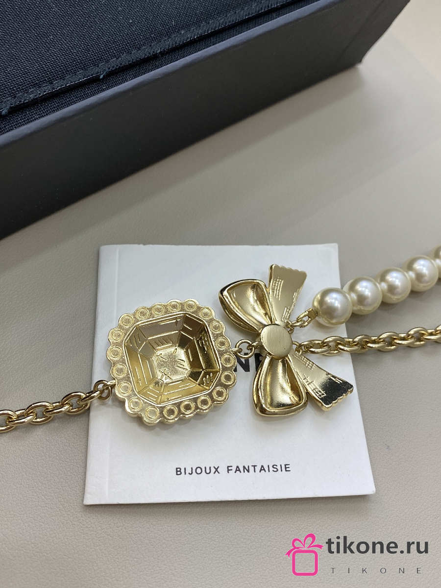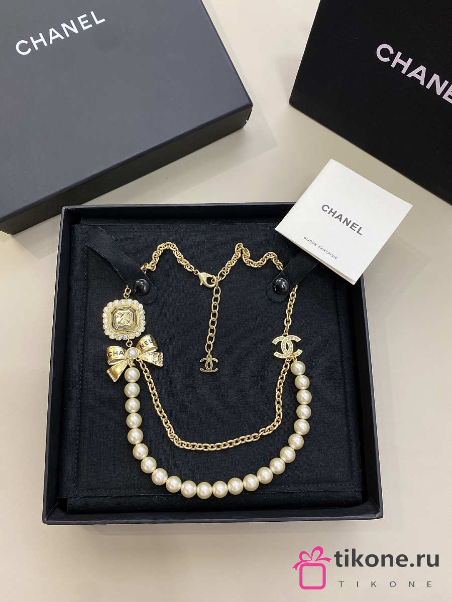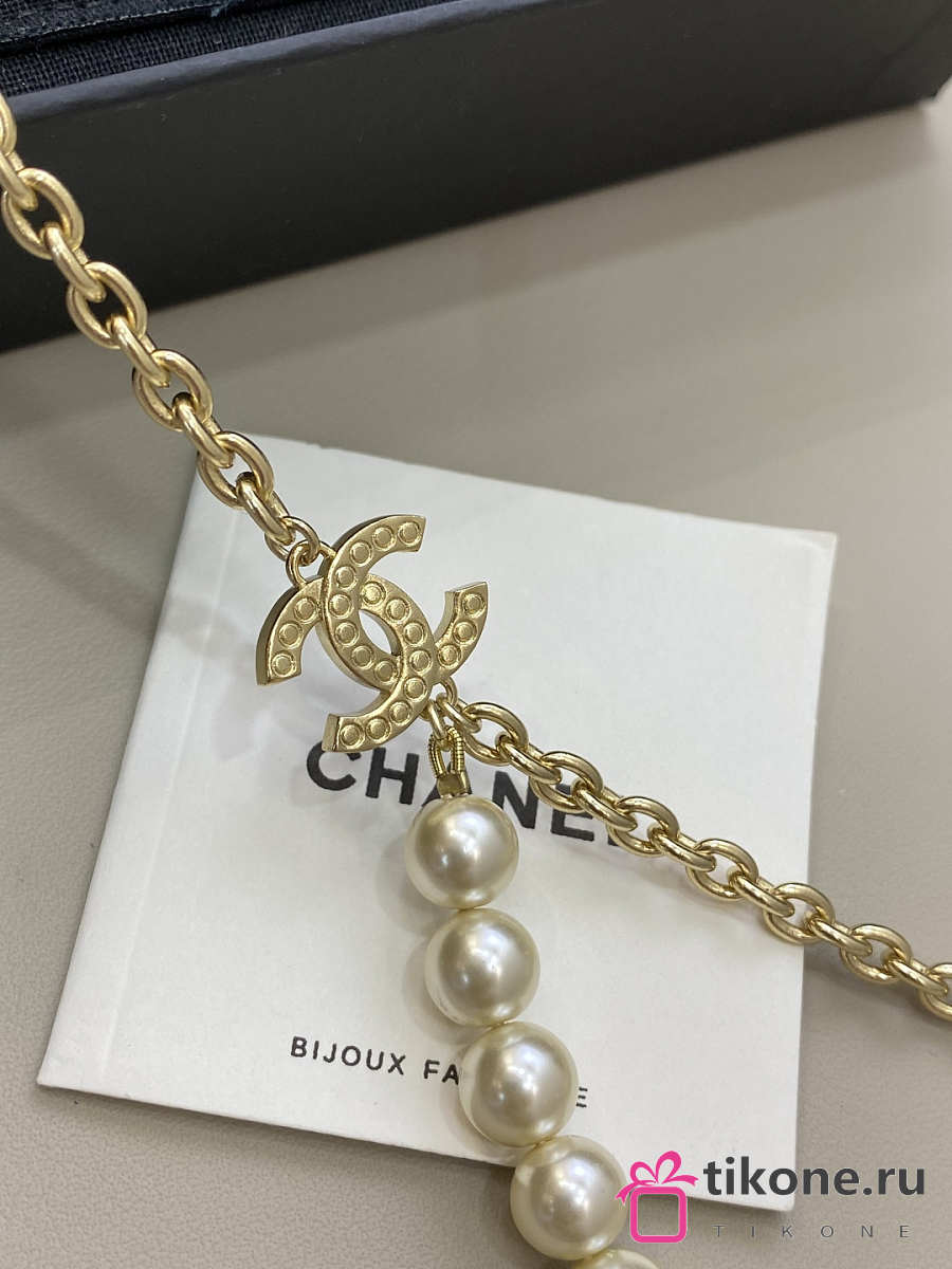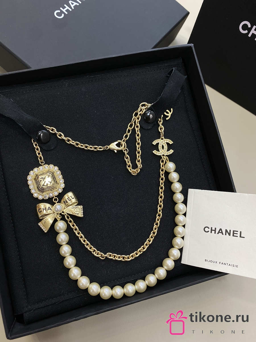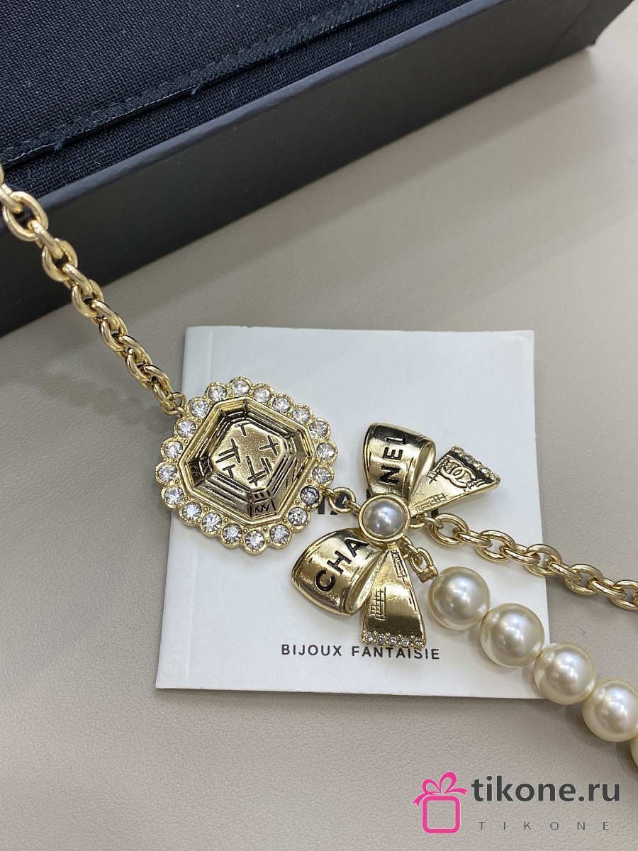 Chanel Gold C-shaped Diamond Necklace Pearl Lace Two Chains