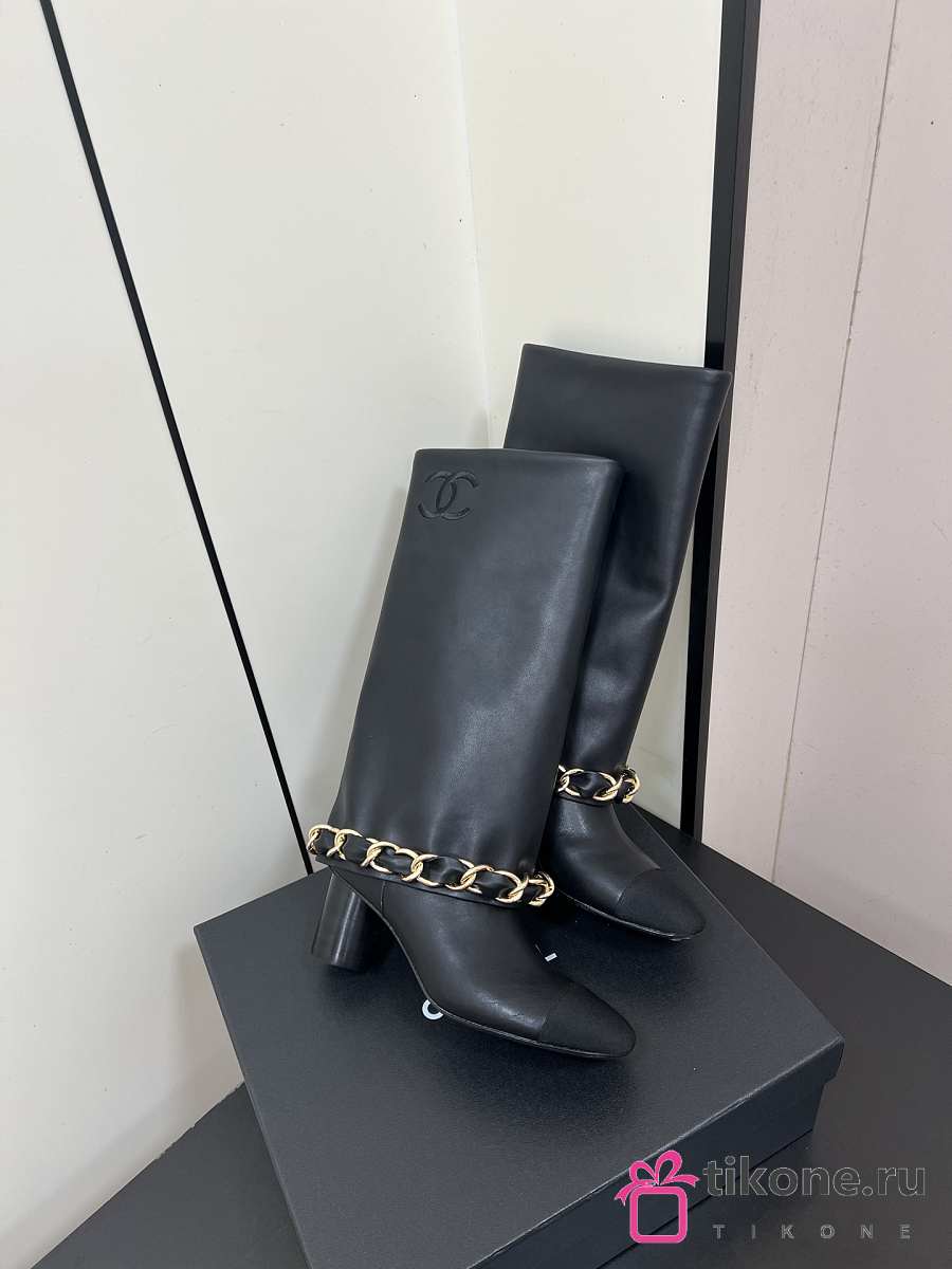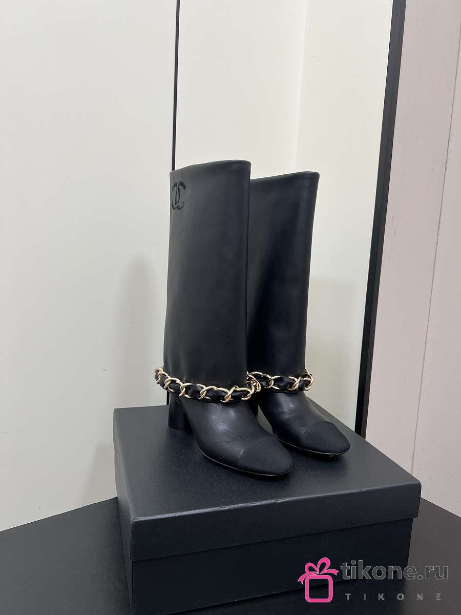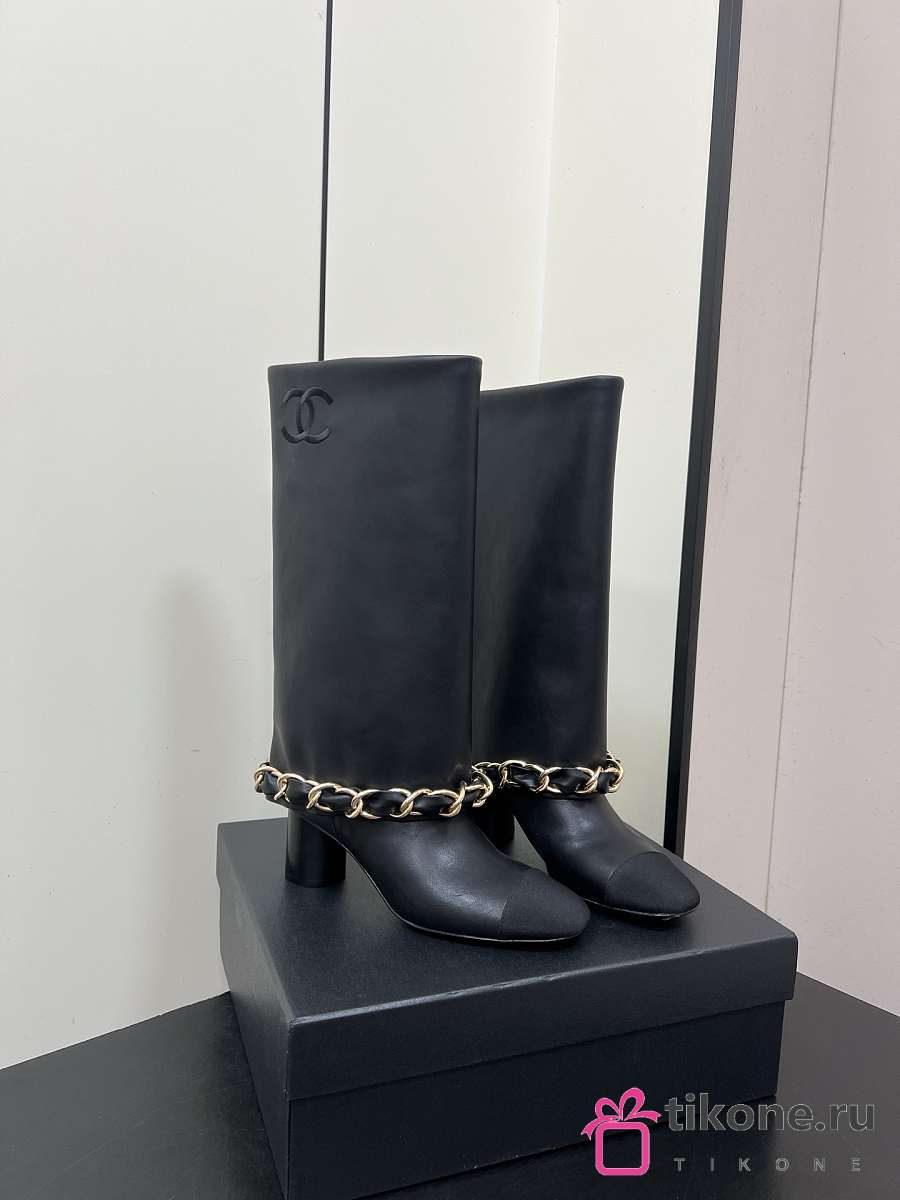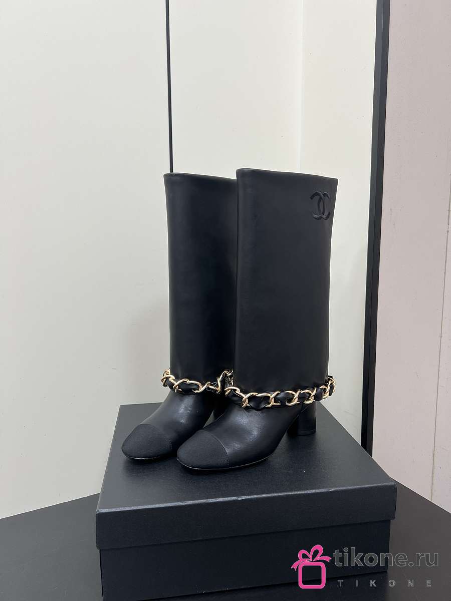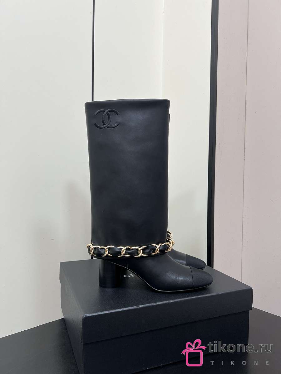 Chanel High Boots Lambskin & Grosgrain Black