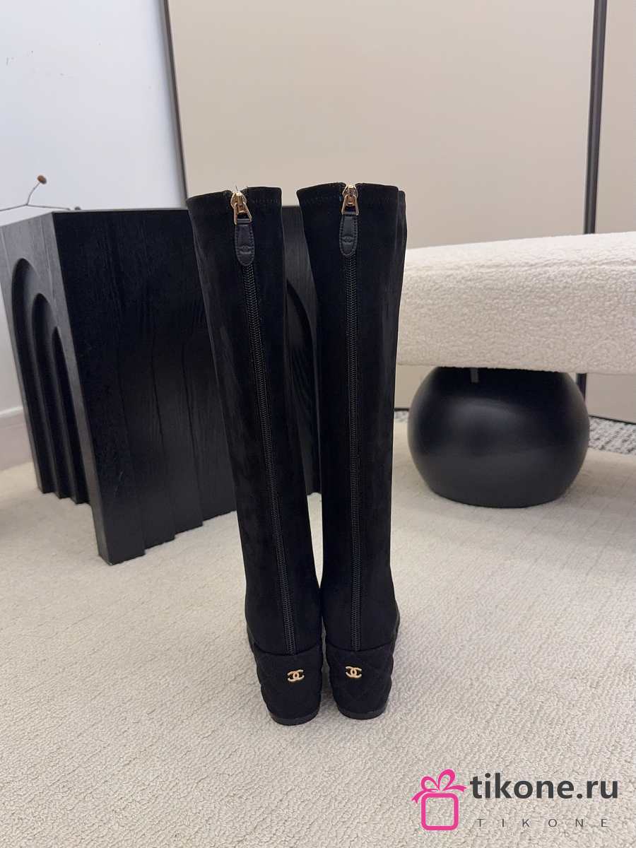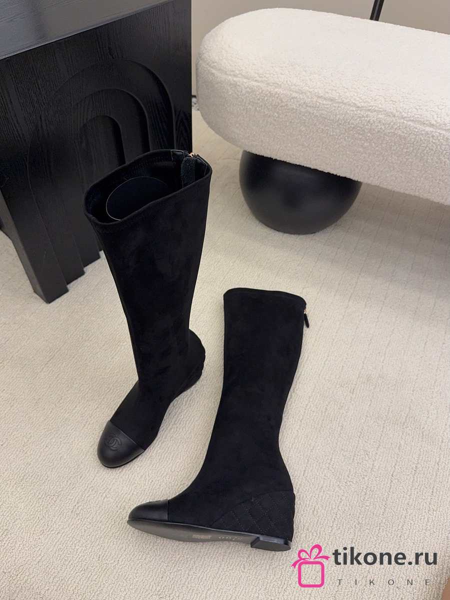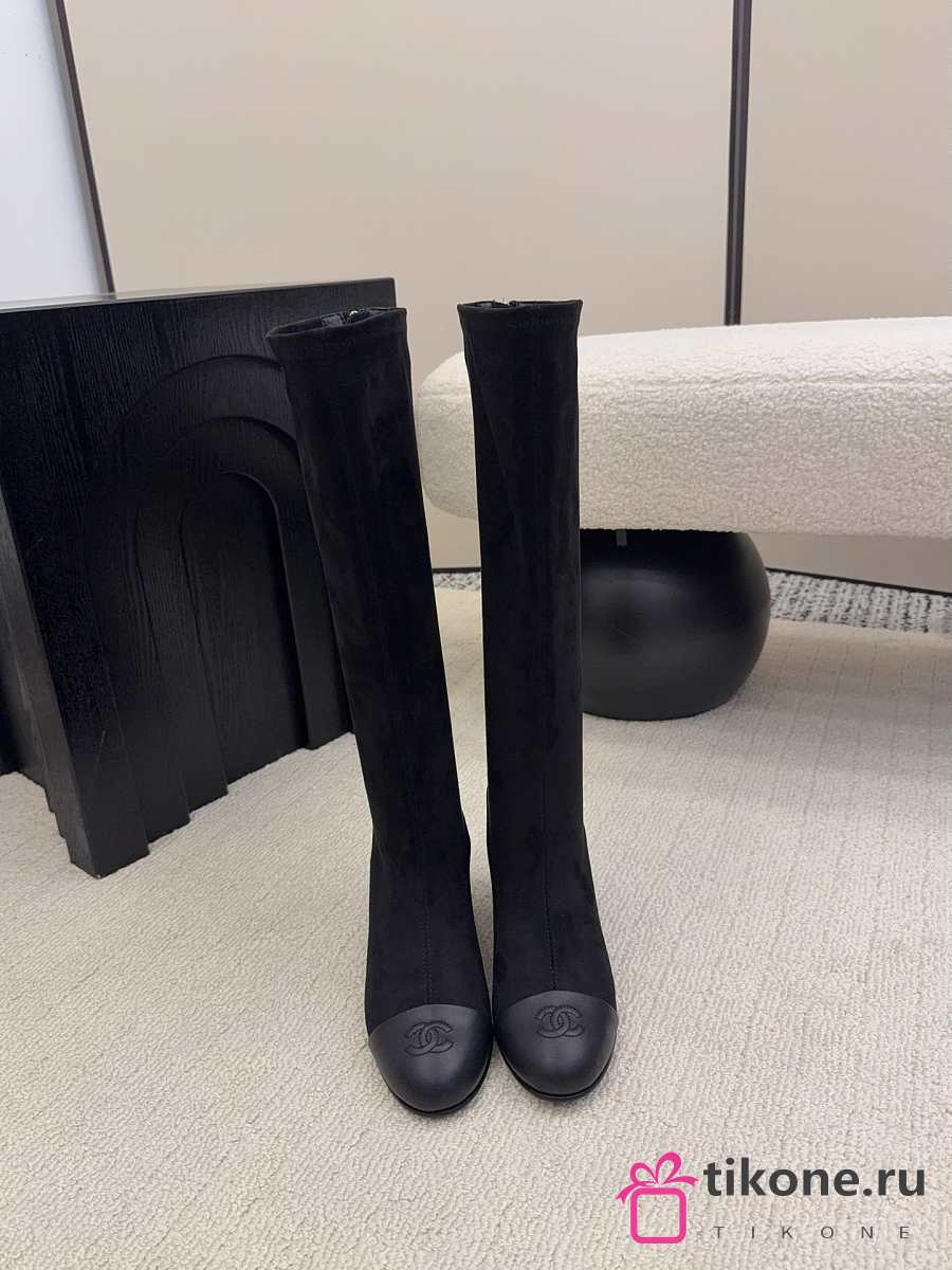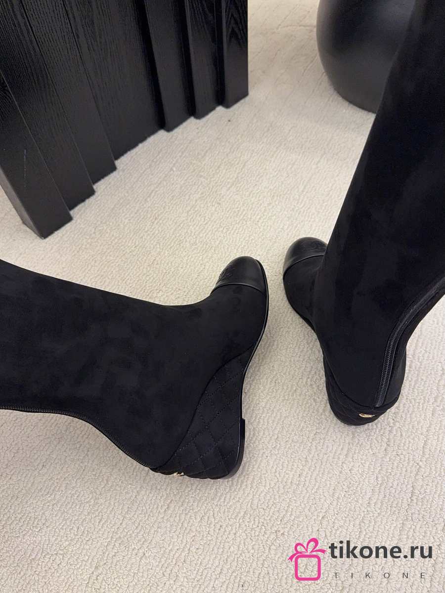 Chanel High Boots Suede & Calfskin Black 6.5cm