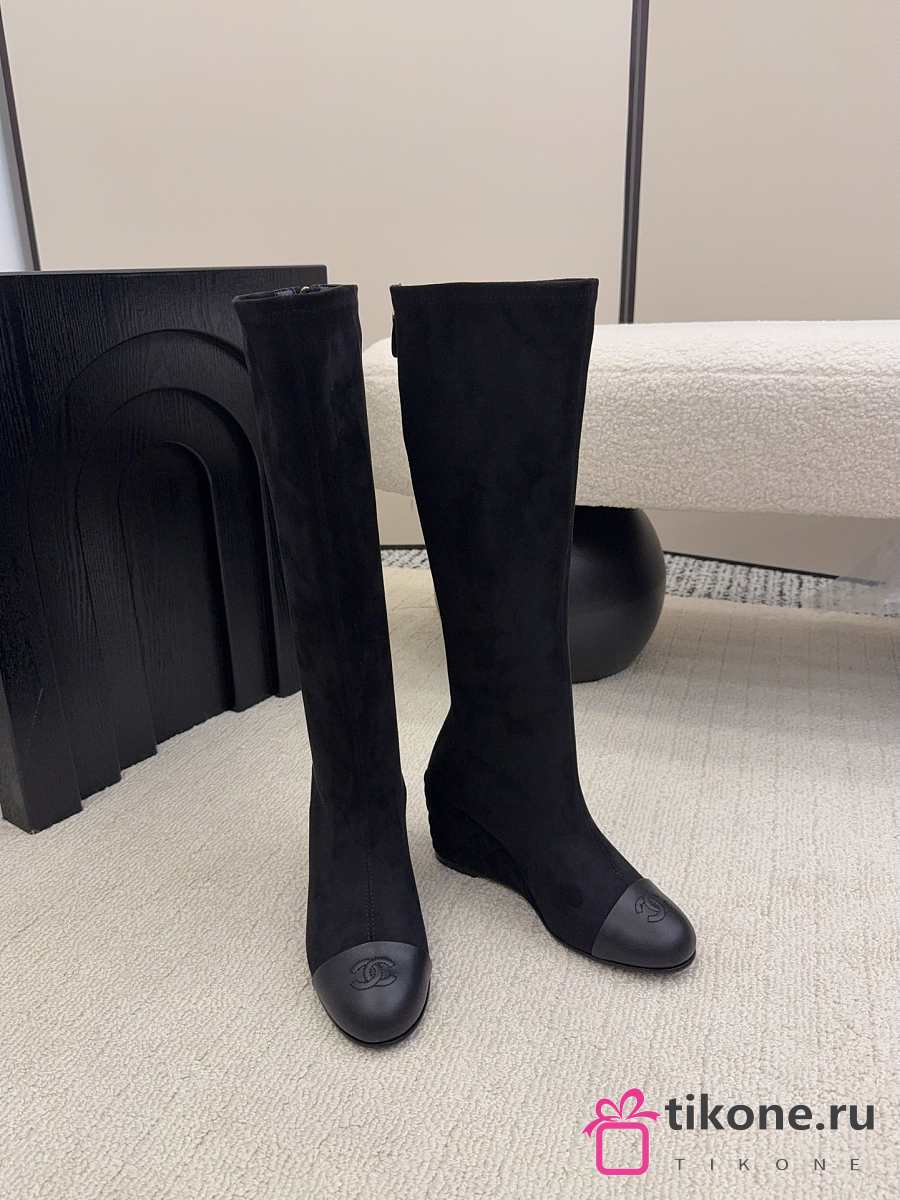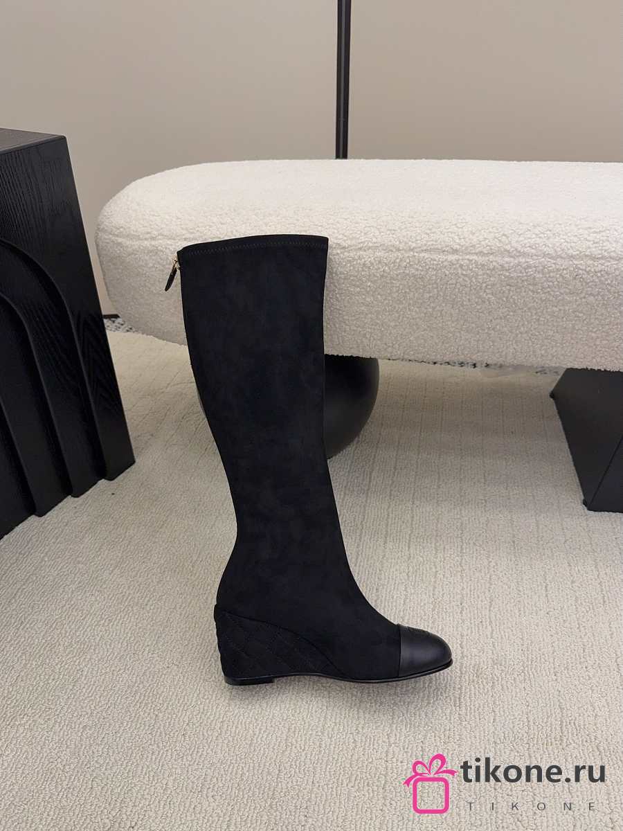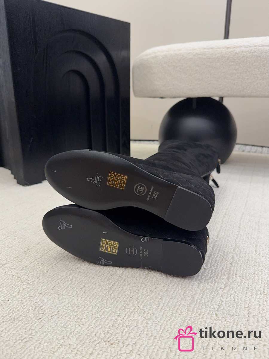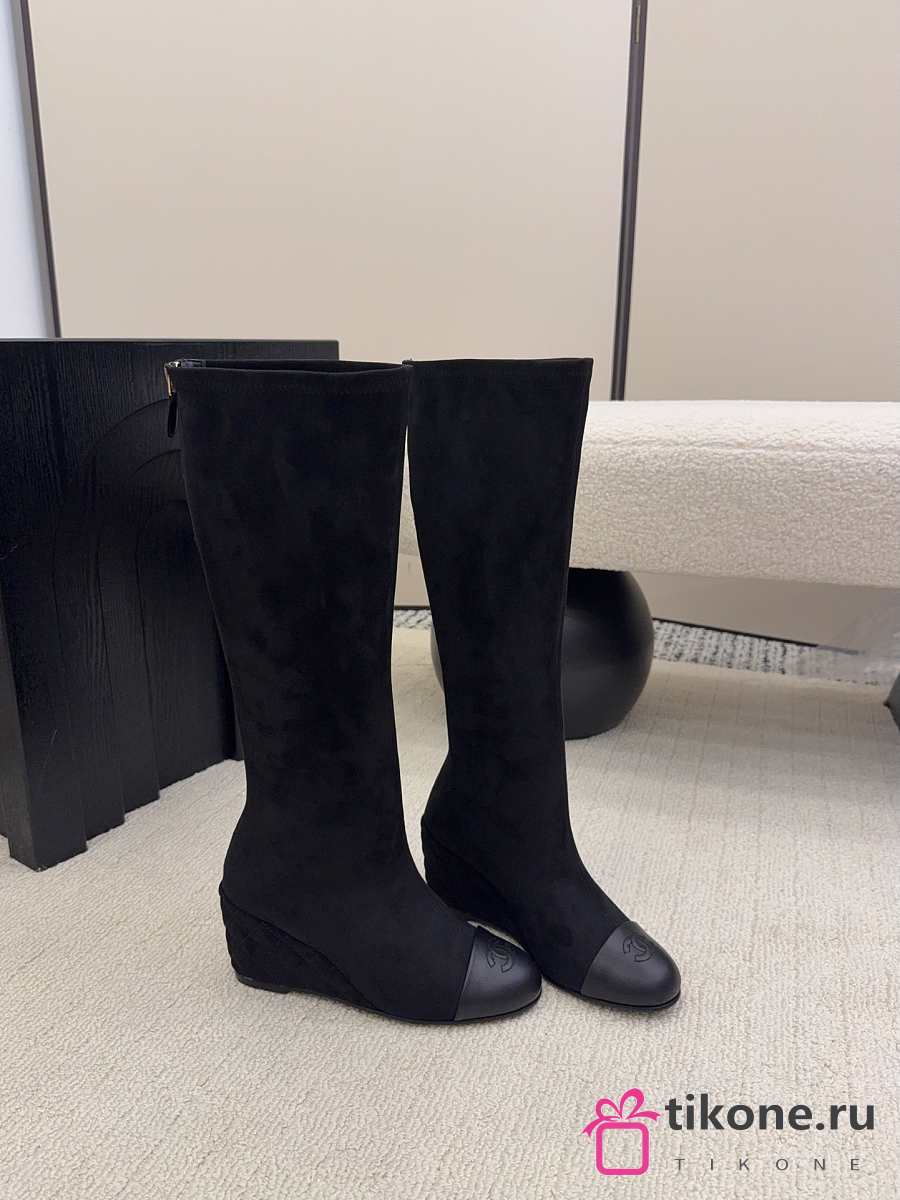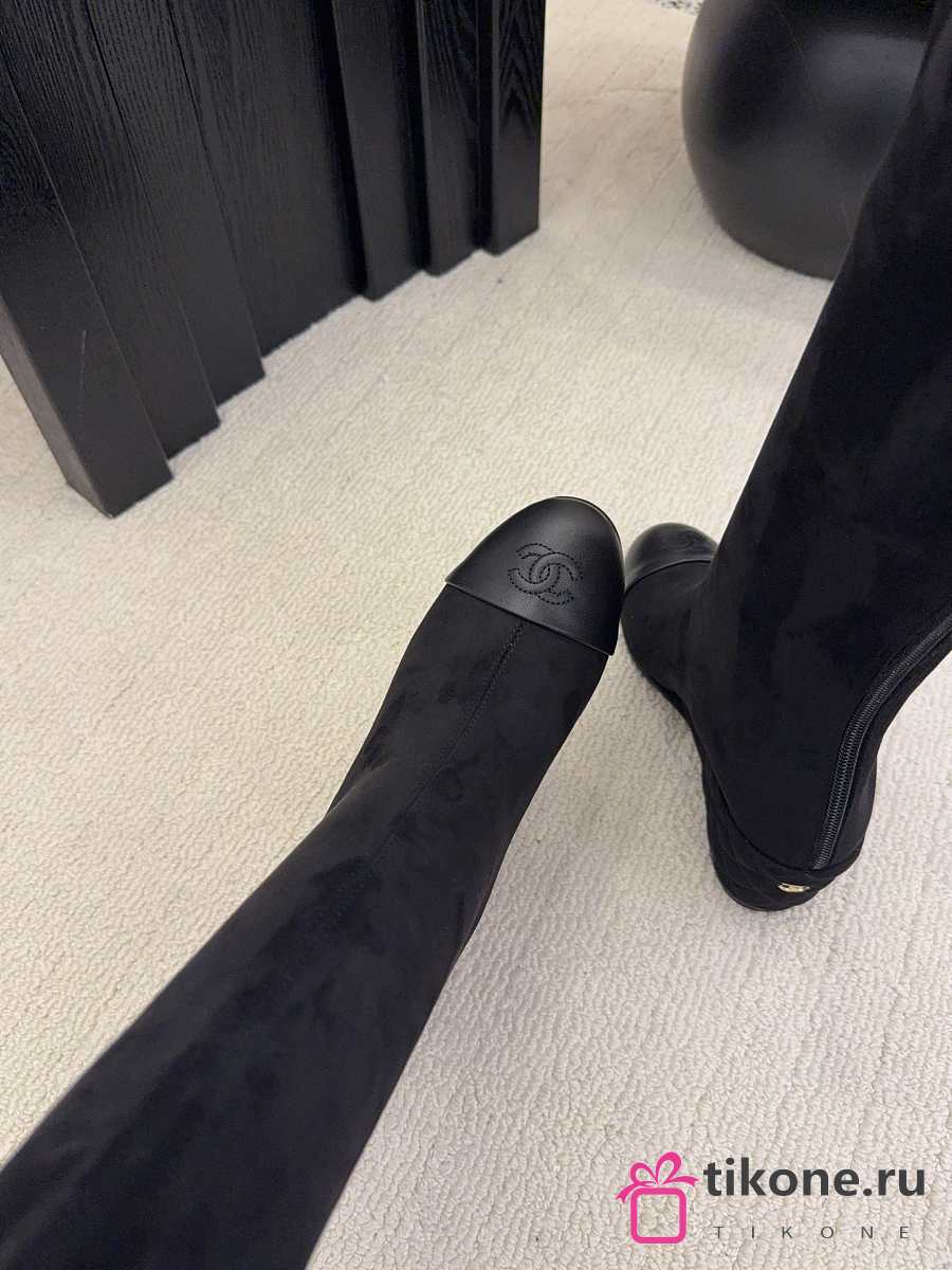 Chanel High Boots Suede & Calfskin Black 6.5cm