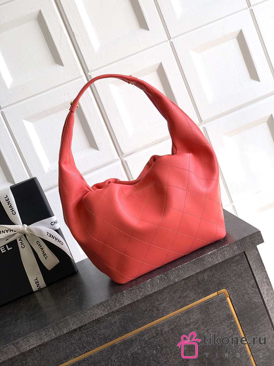 Chanel Hobo Handbag Calfskin & Gold Tone Metal Coral - 32x24x12cm