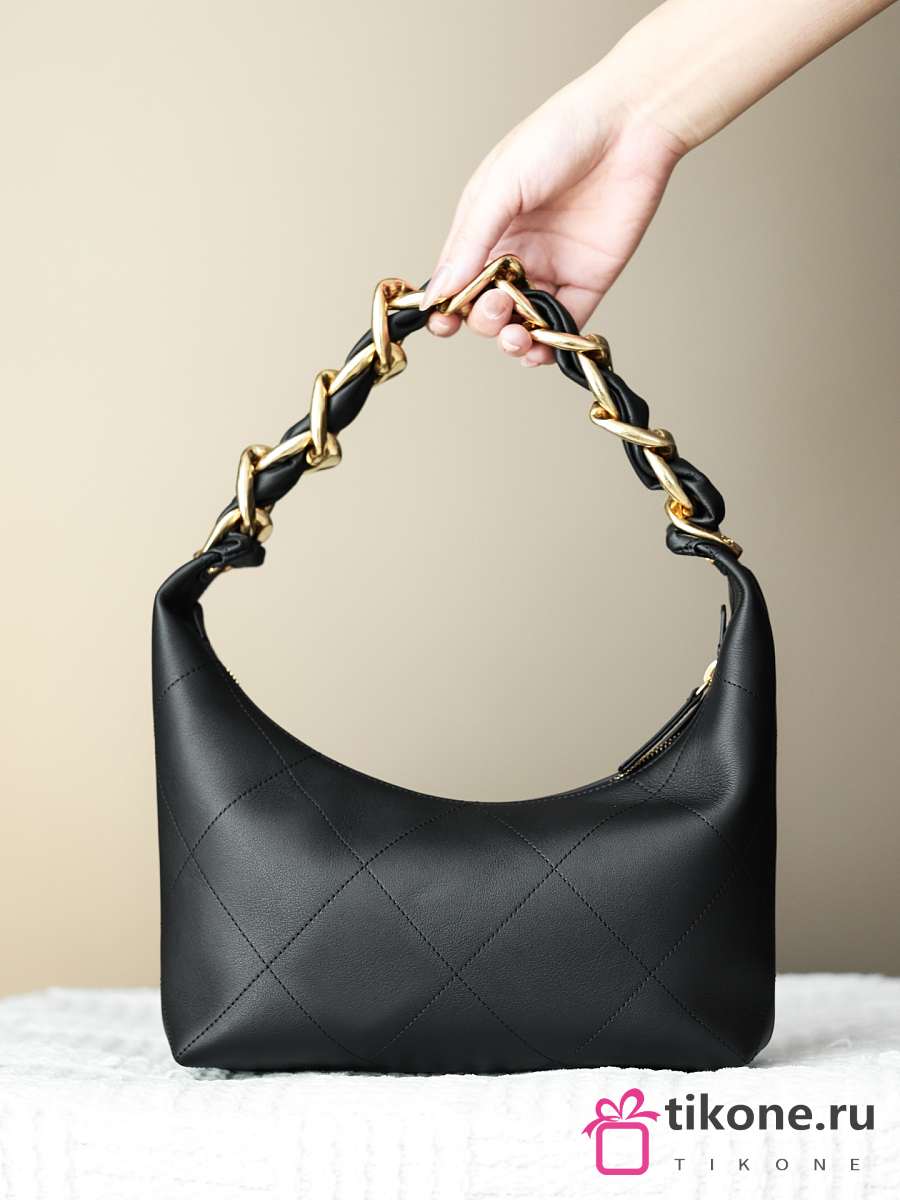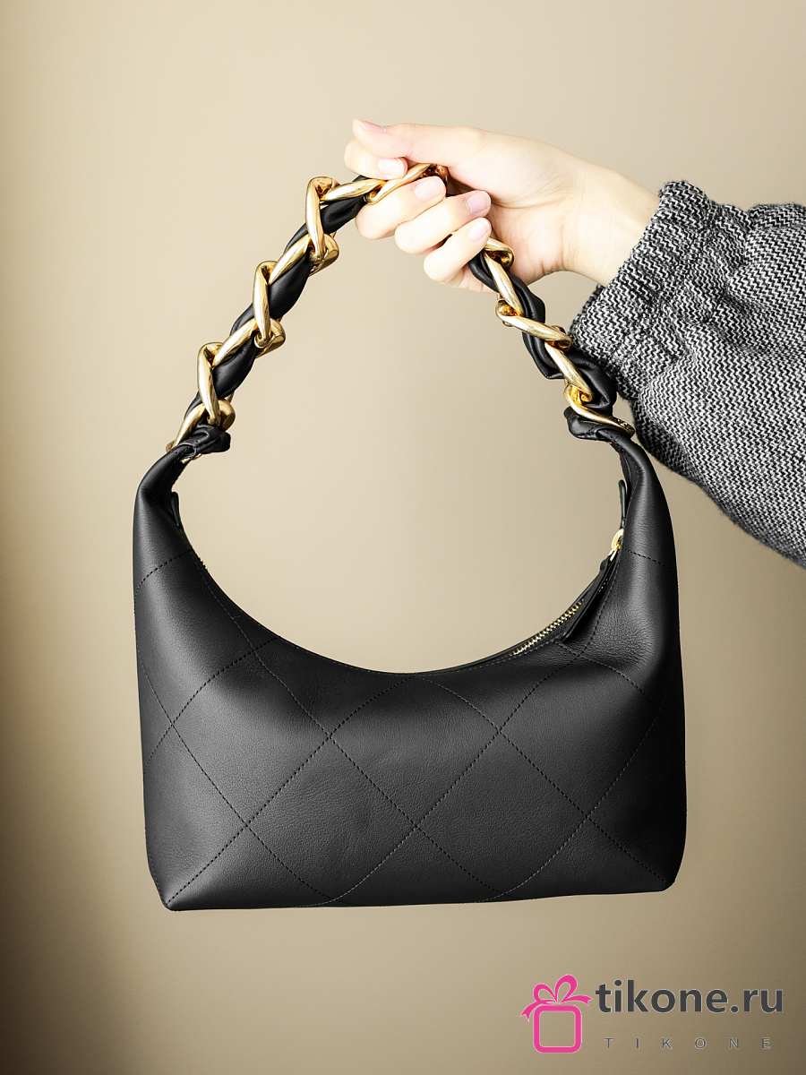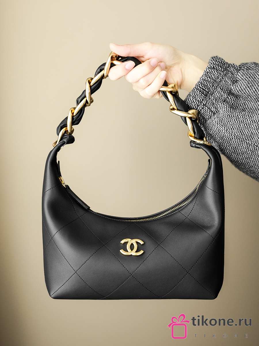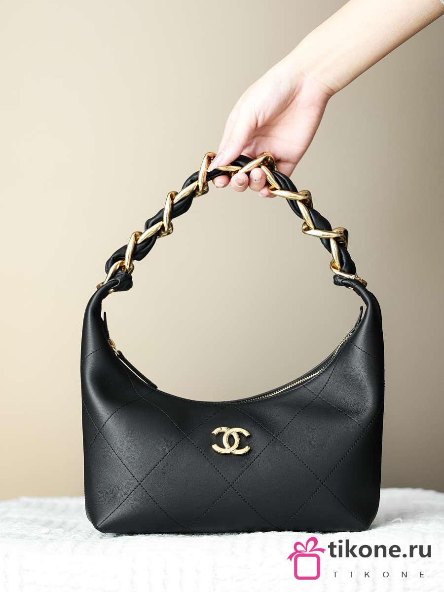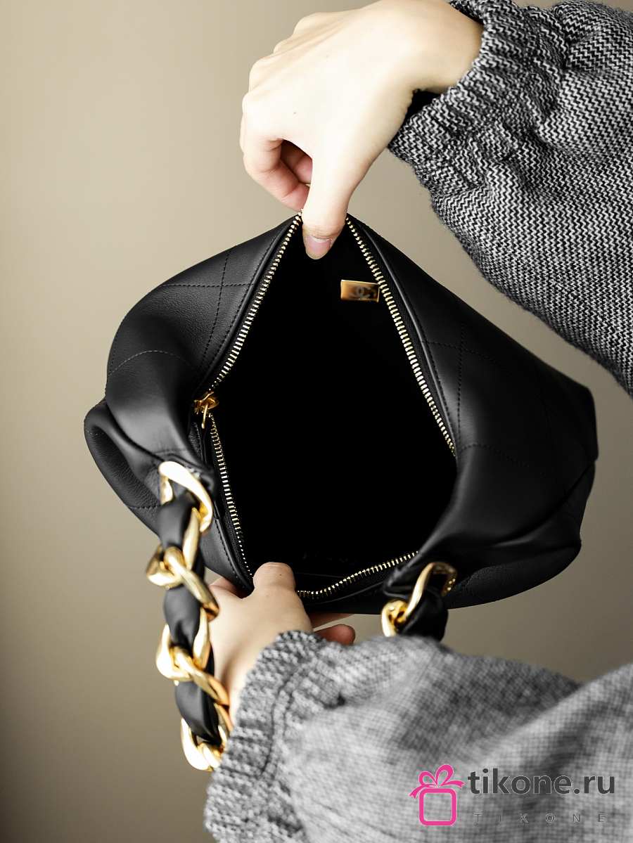 Chanel Hobo Handbag Shiny Calfskin & Gold-Tone Metal Black AS5837 - 28x24x8cm