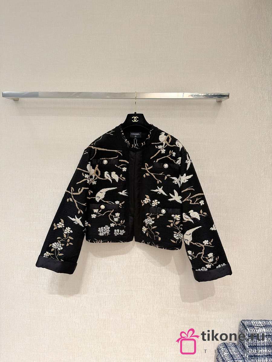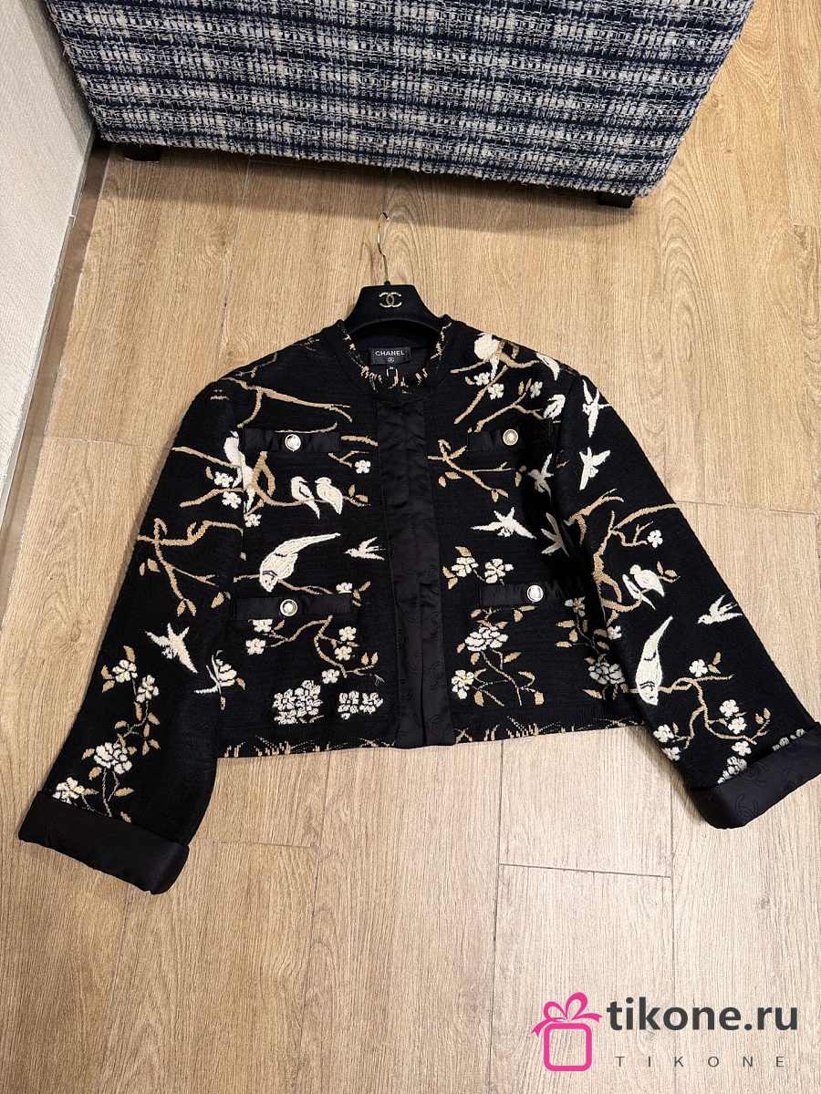Chanel Jacket Wool & Cashmere Black Gold & White