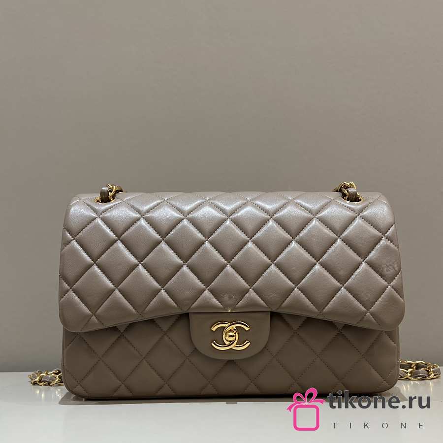 Chanel Jumbo Quilted Lambskin Beige Taupe Gold Hardware - 30x19.5x10cm