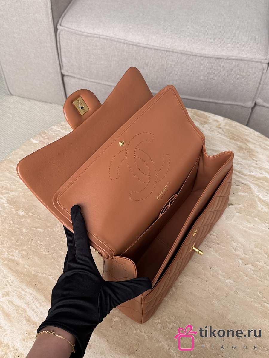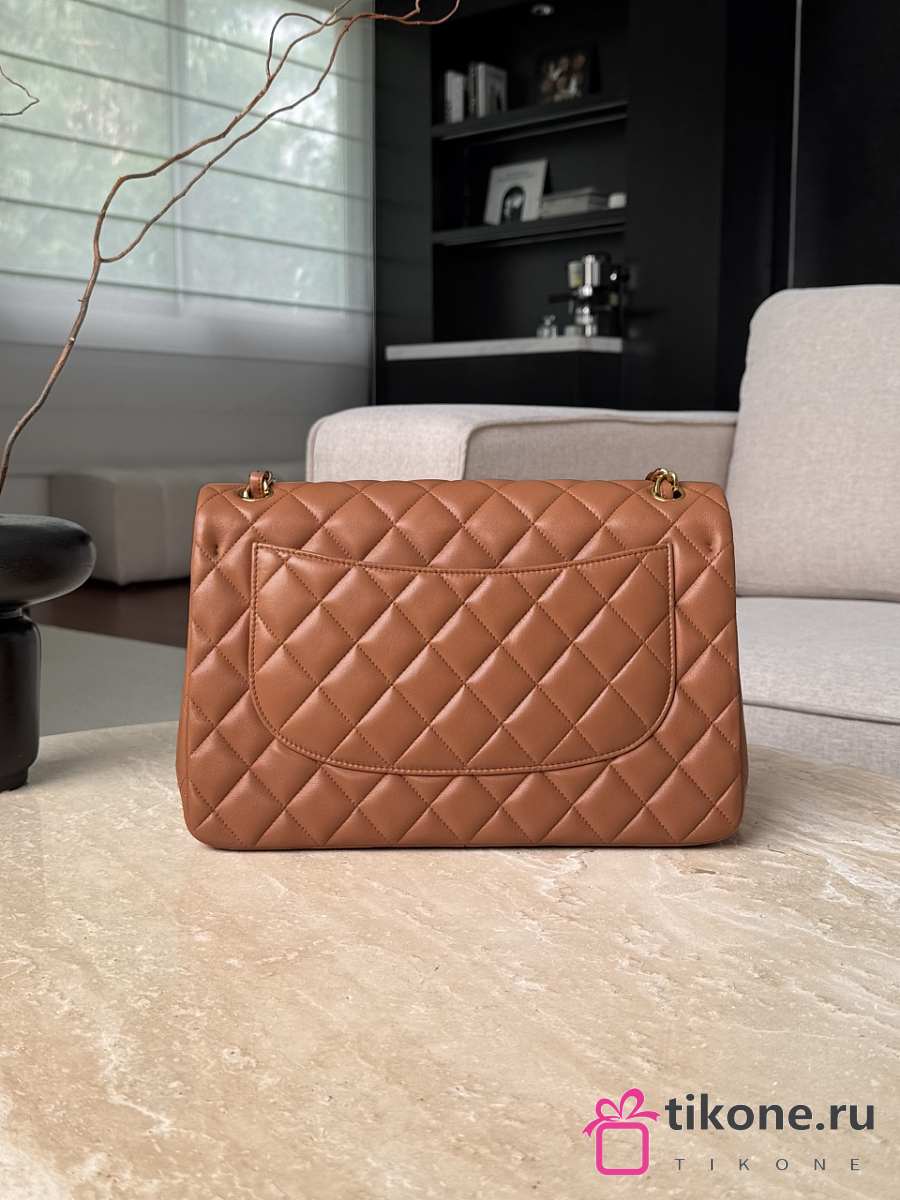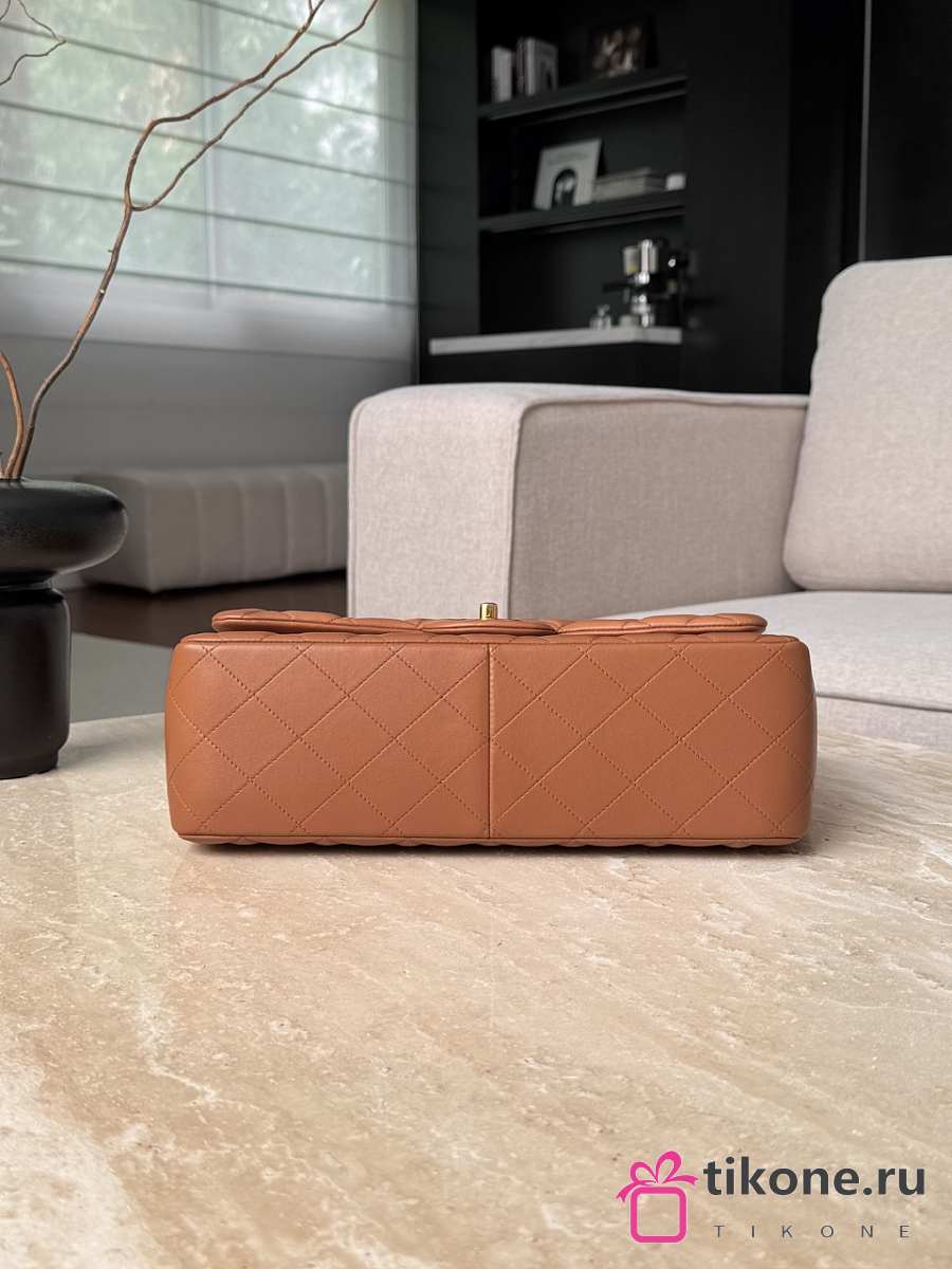 Chanel Jumbo Quilted Lambskin Brown Gold Hardware - 30x19.5x10cm