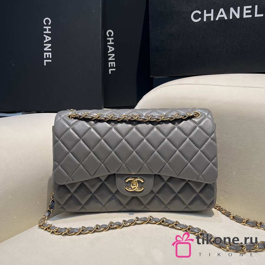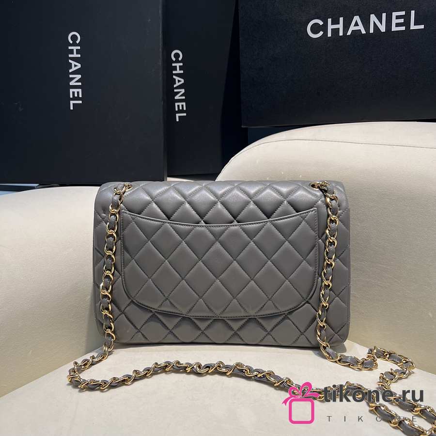 Chanel Jumbo Quilted Lambskin Gray Gold Hardware - 30x19.5x10cm