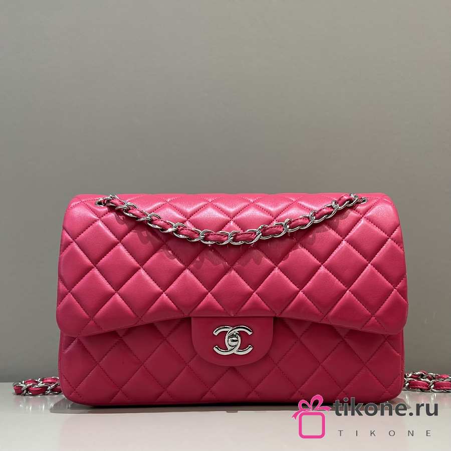 Chanel Jumbo Quilted Lambskin Hot Pink Silver Hardware - 30x19.5x10cm