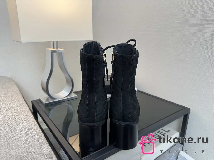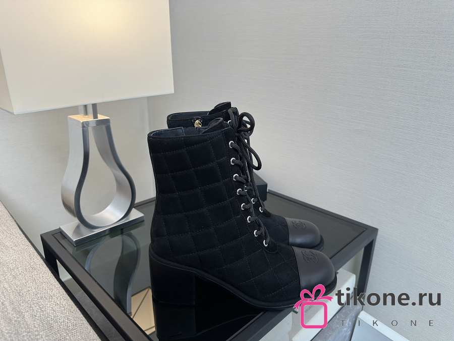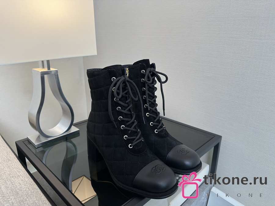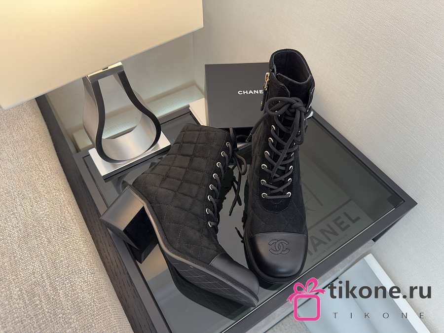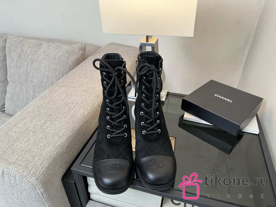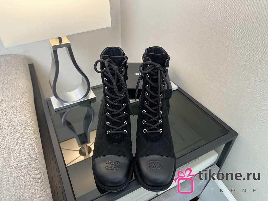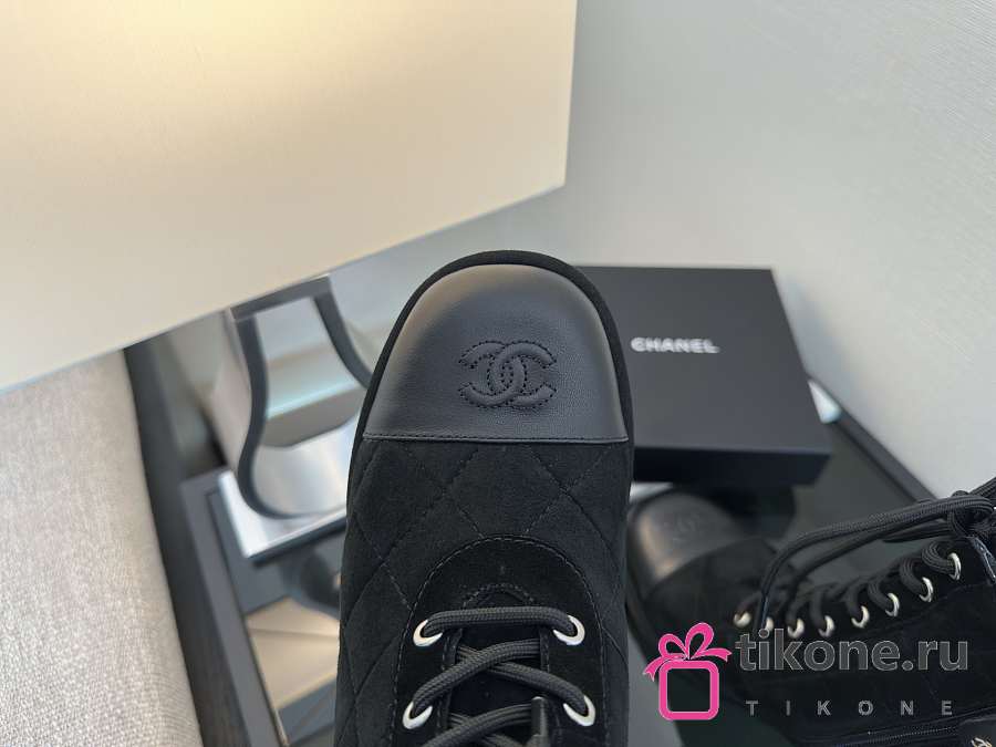 Chanel Lace-Up Shoes Suede Calfskin & Calfskin Black 70mm