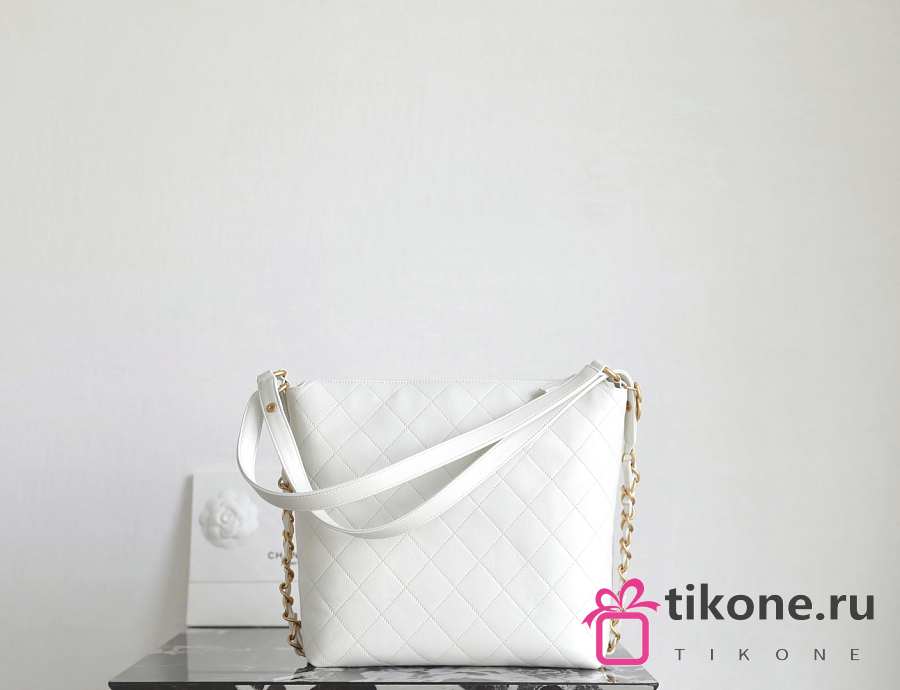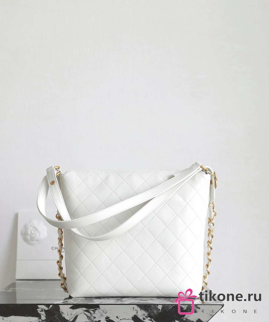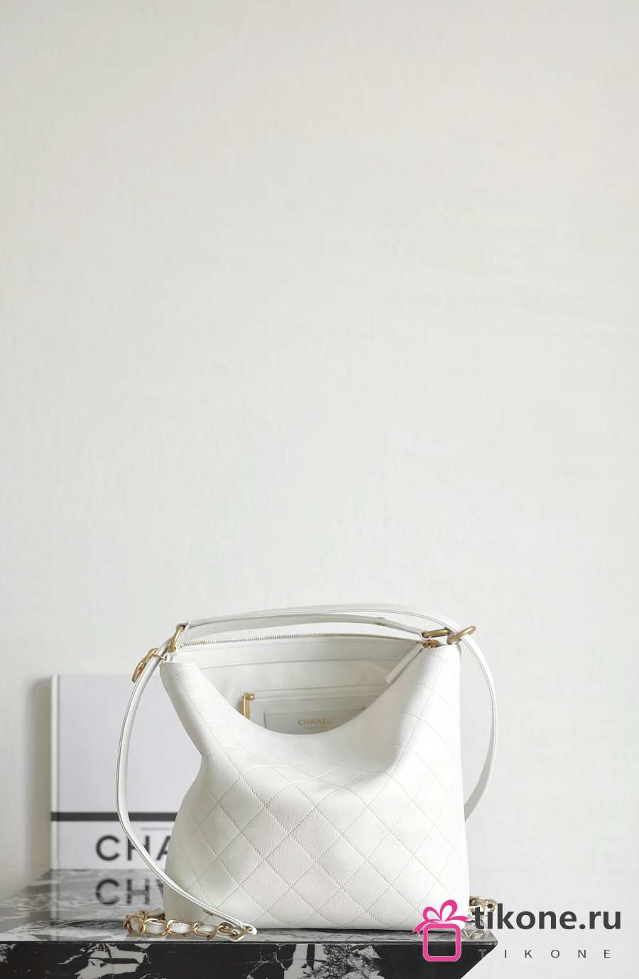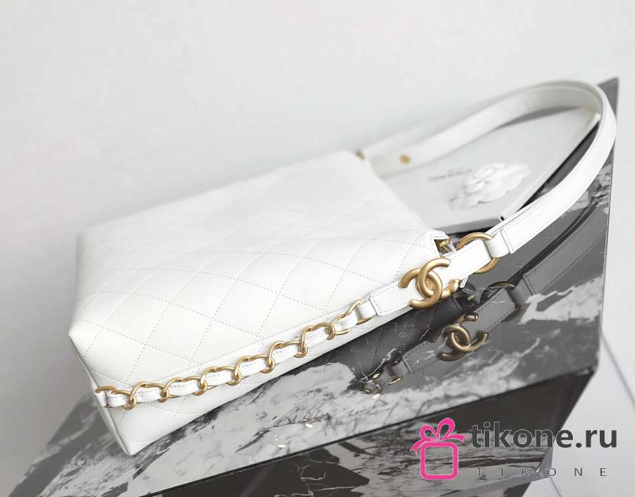 Chanel Large Backpack Calfskin Gold Tone Metal White - 33.5x28x10.5cm