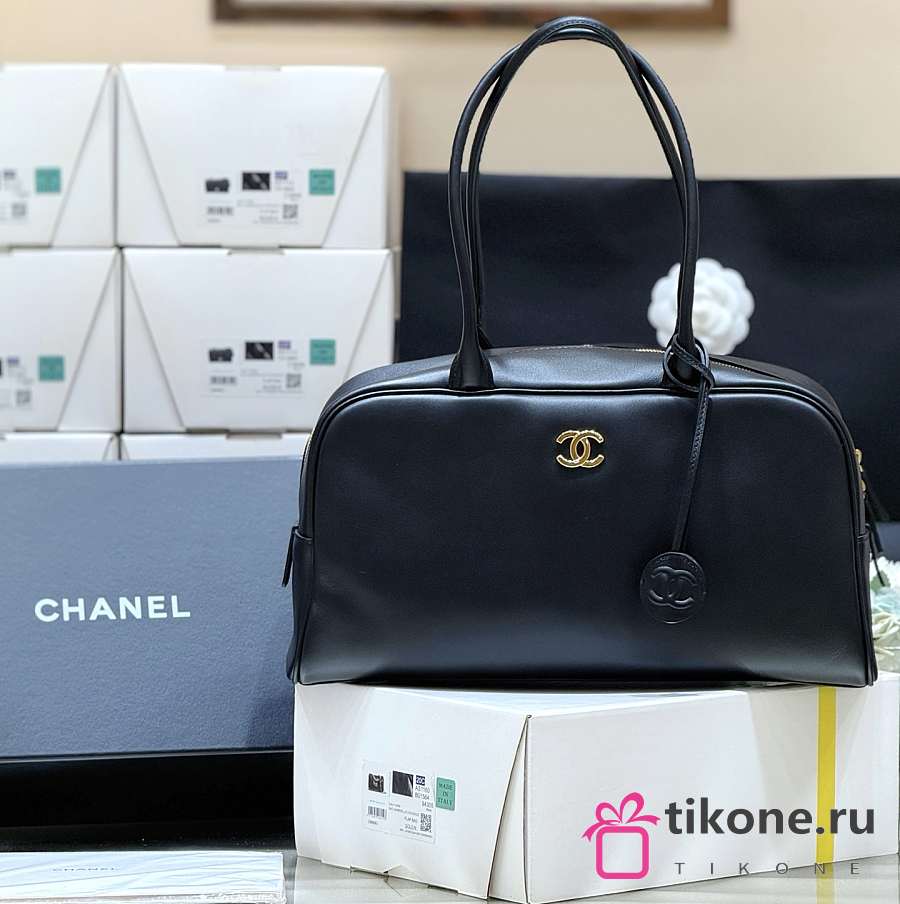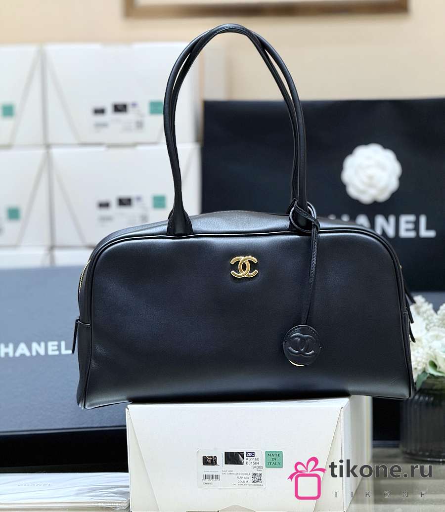 Chanel Large Bowling Bag Calfskin & Gold-Tone Metal Black - 35.5x19x12.5cm