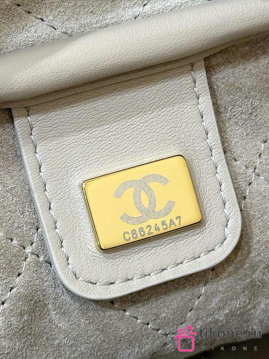 Chanel Maxi Flapbag Grained Calfskin & Silver Metal Light Brown - 38.5x26x11cm