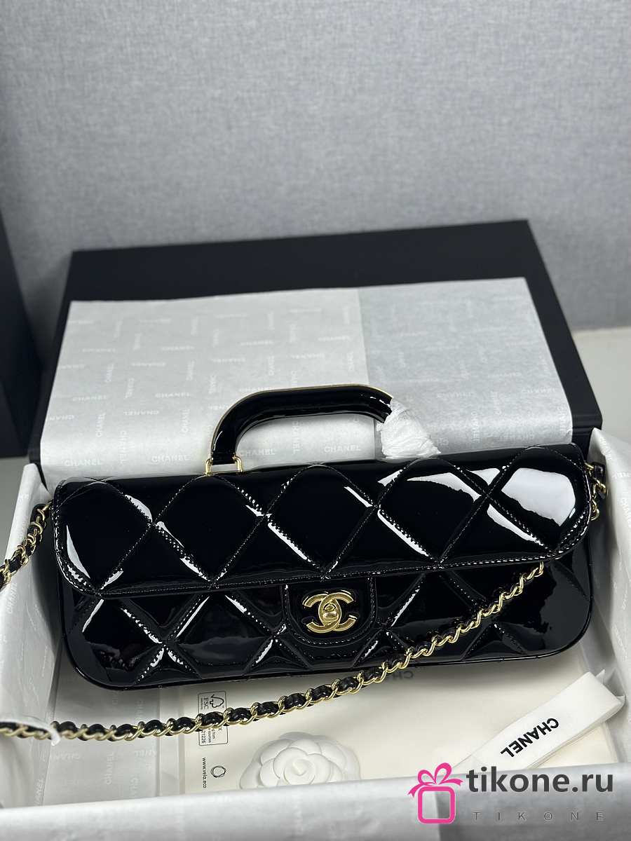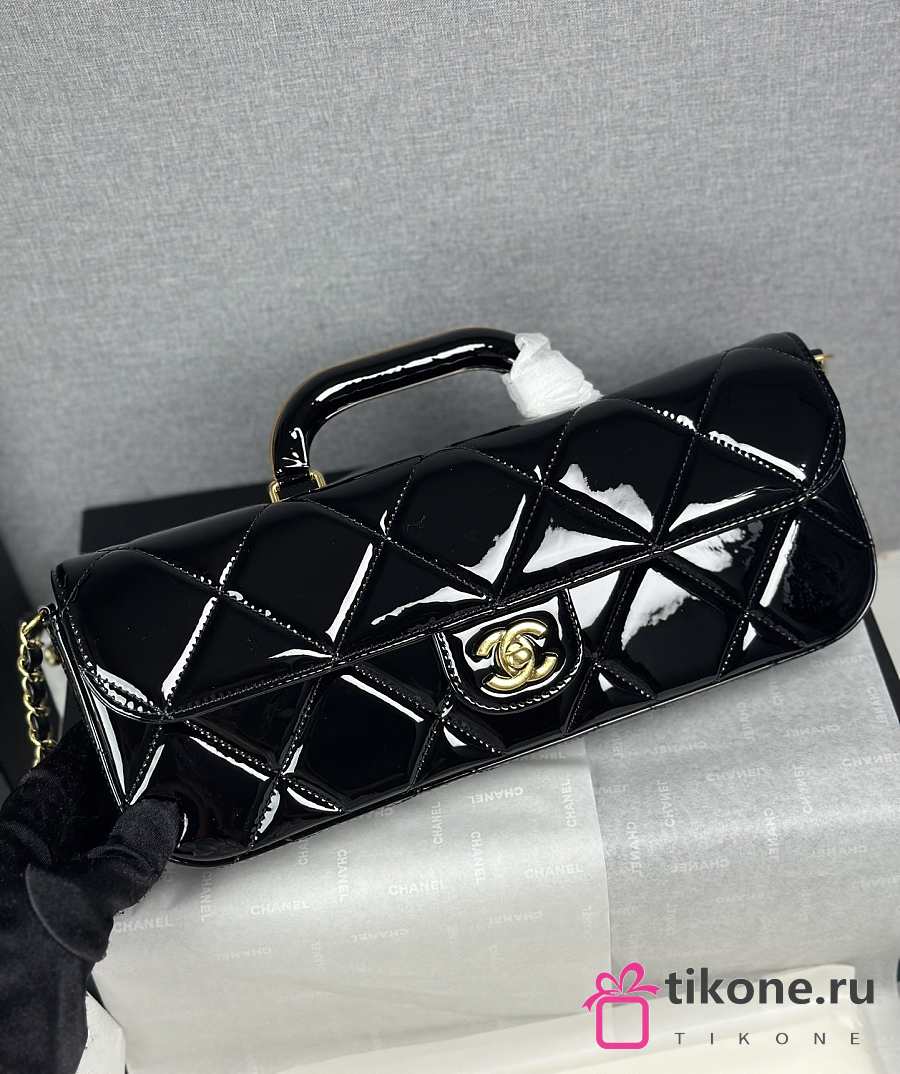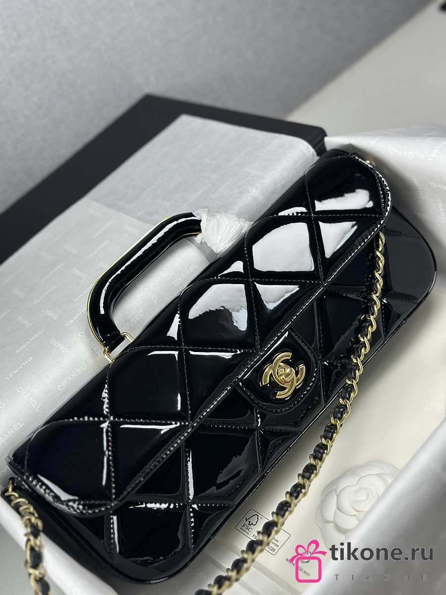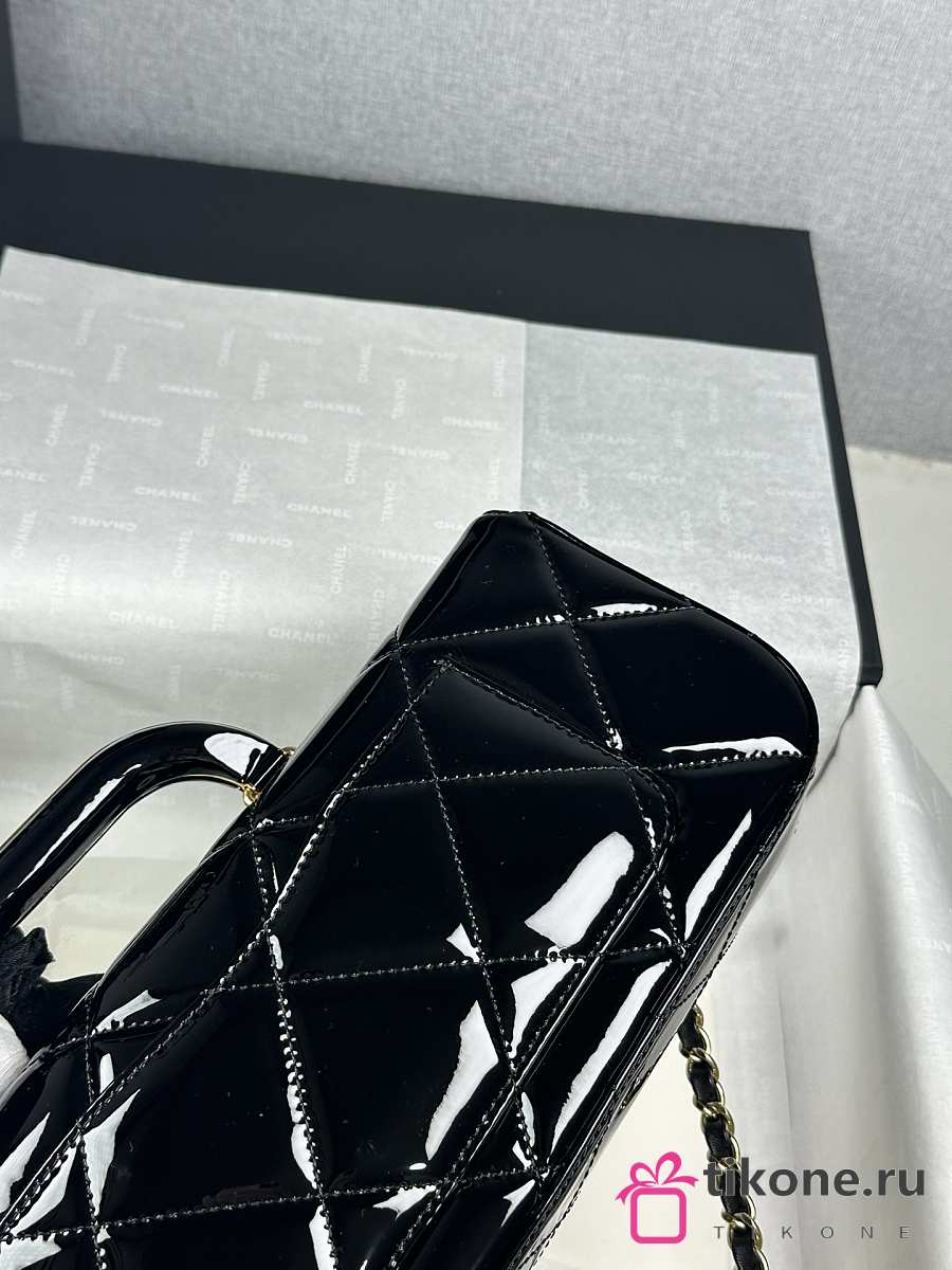 Chanel Large Flap Bag With Top Handle Metallic Mirror Calfskin & Gold Tone Metal Black - 30x12.5x5cm