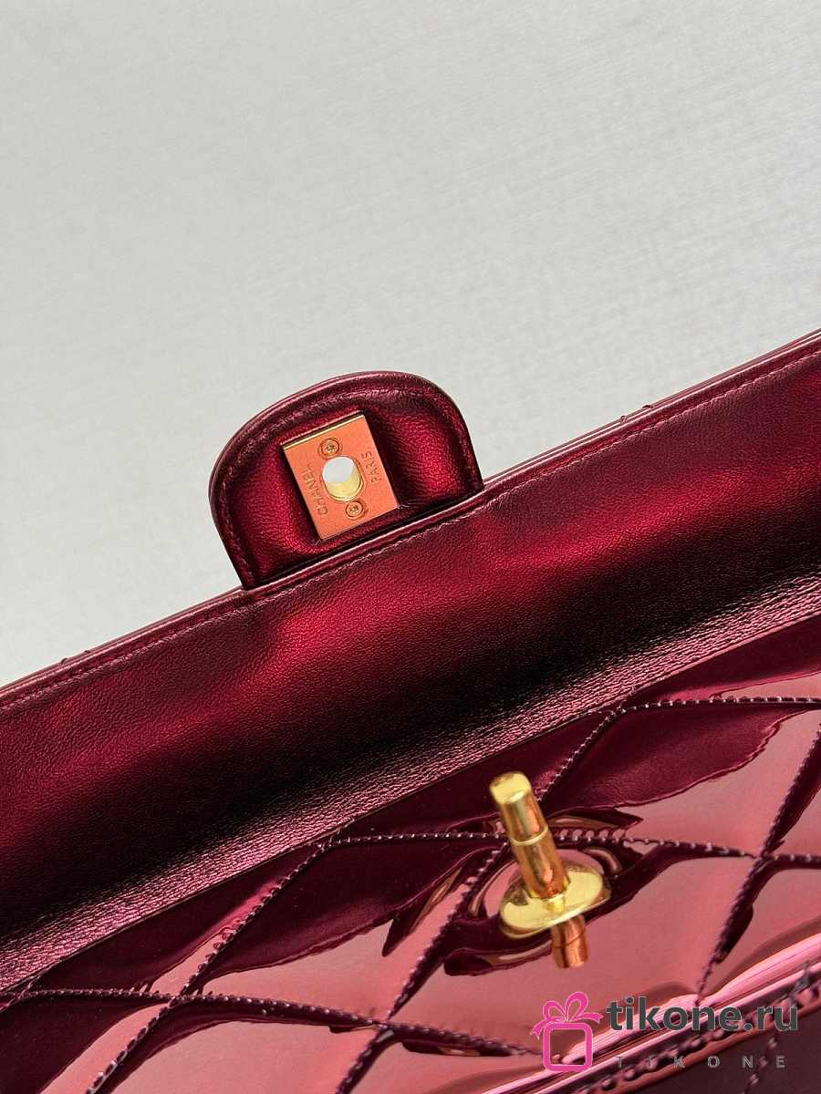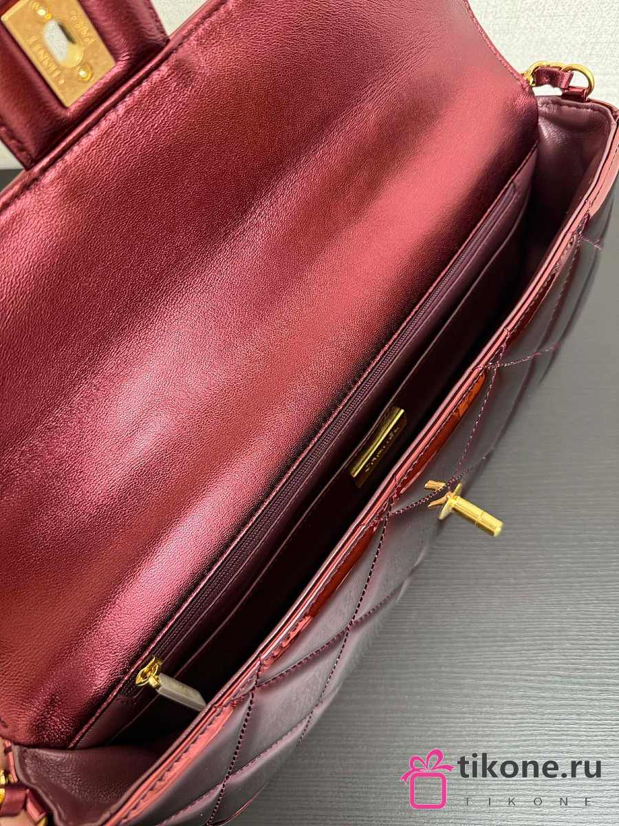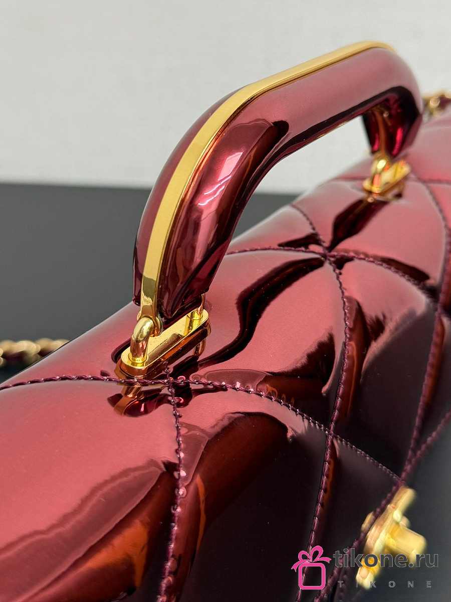 Chanel Large Flap Bag With Top Handle Metallic Mirror Calfskin & Gold Tone Metal Burgundy - 30x12.5x5cm