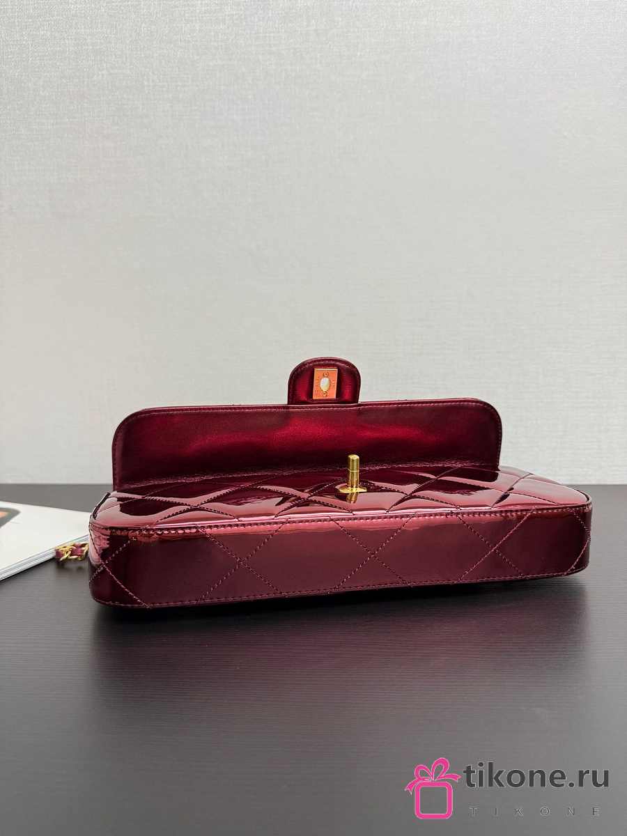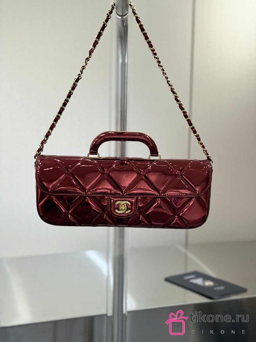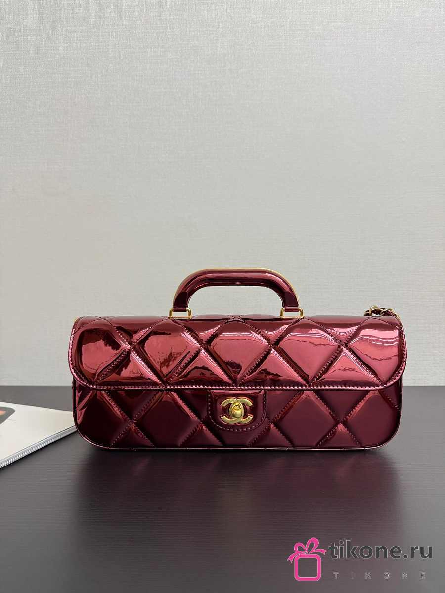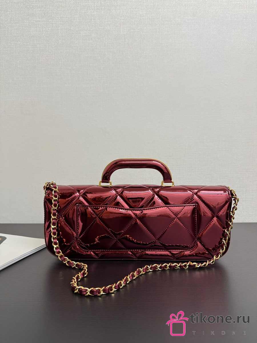 Chanel Large Flap Bag With Top Handle Metallic Mirror Calfskin & Gold Tone Metal Burgundy - 30x12.5x5cm