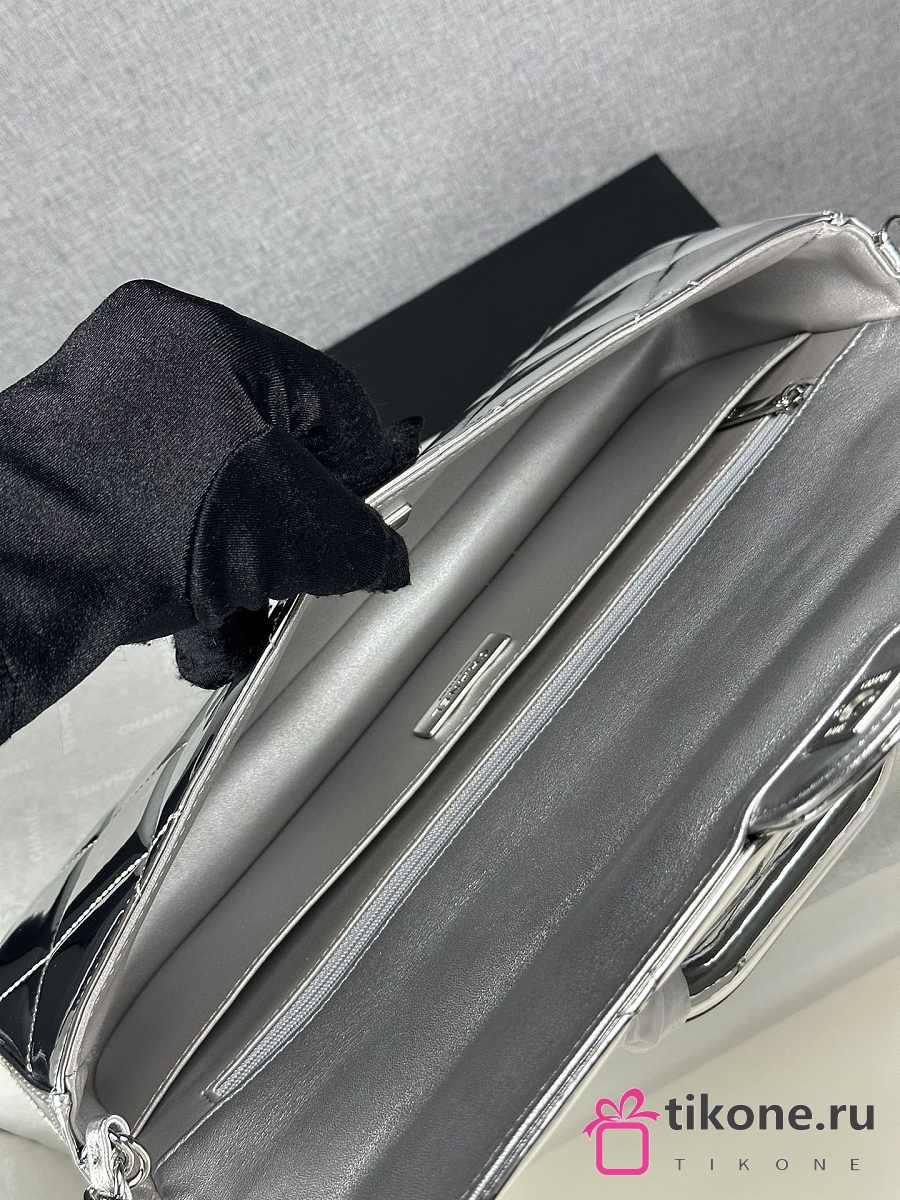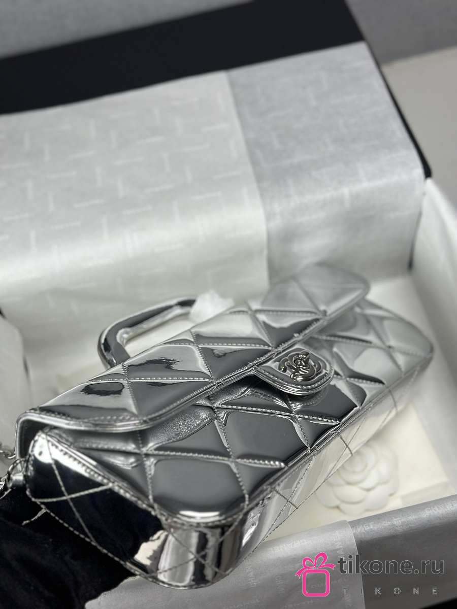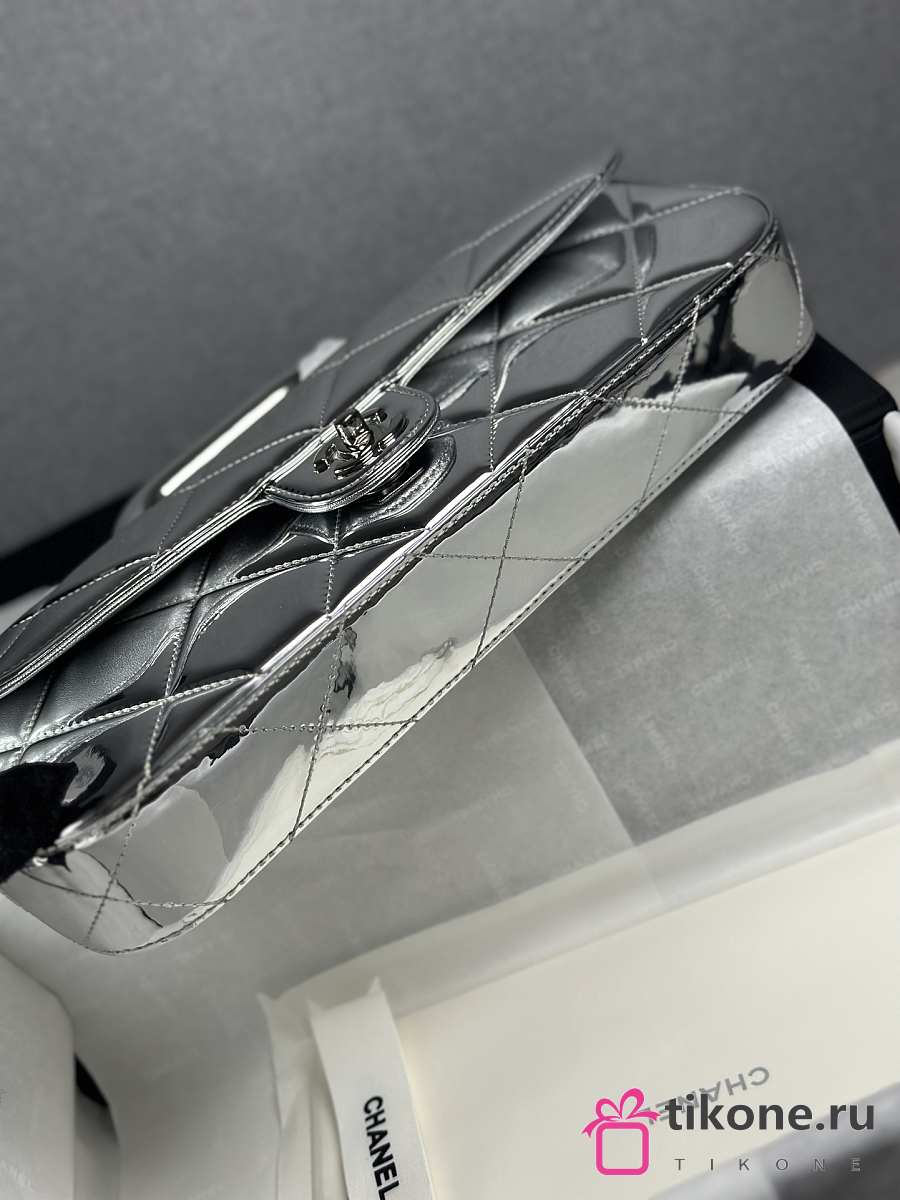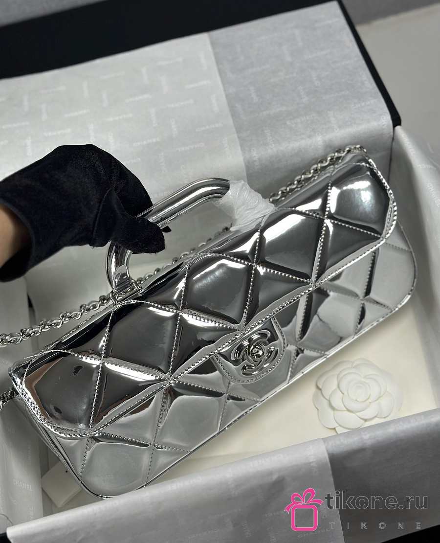 Chanel Large Flap Bag With Top Handle Metallic Mirror Calfskin & Silver Tone Metal Silver - 30x12.5x5cm