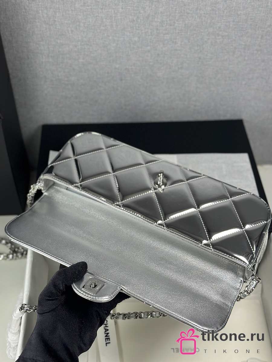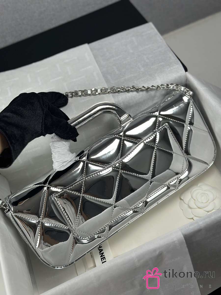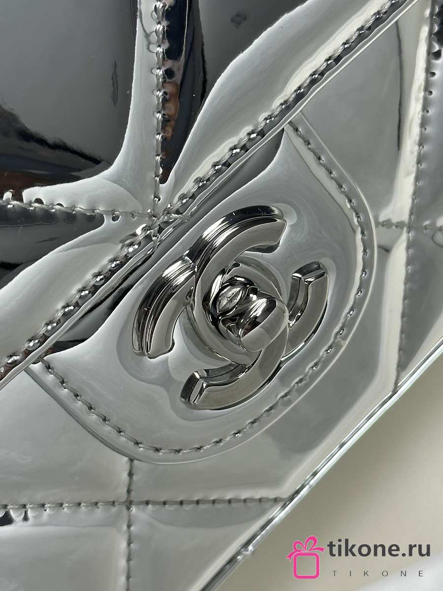 Chanel Large Flap Bag With Top Handle Metallic Mirror Calfskin & Silver Tone Metal Silver - 30x12.5x5cm