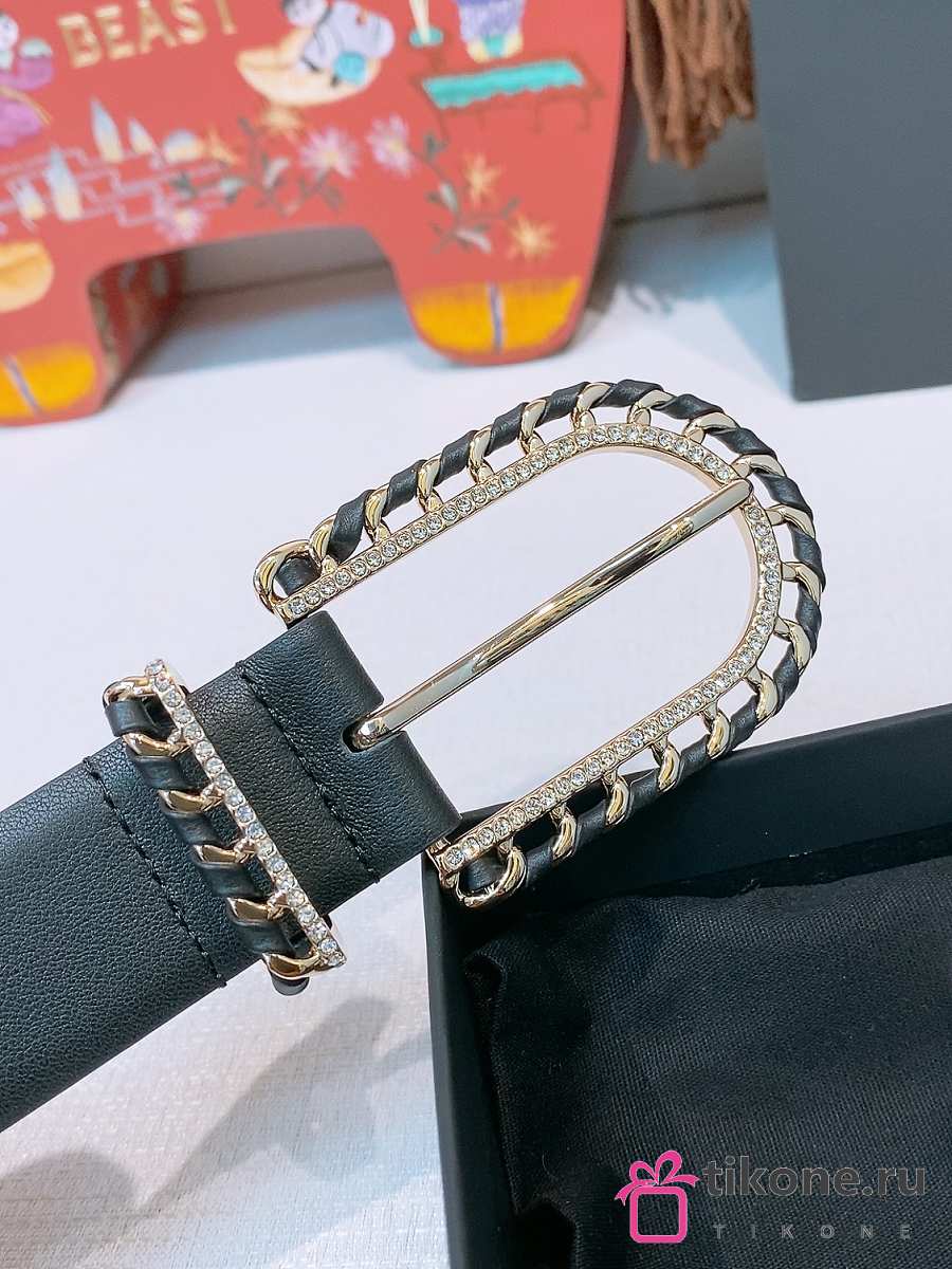 Chanel Leather Belt Calfskin & Metal Black & Gold 25475