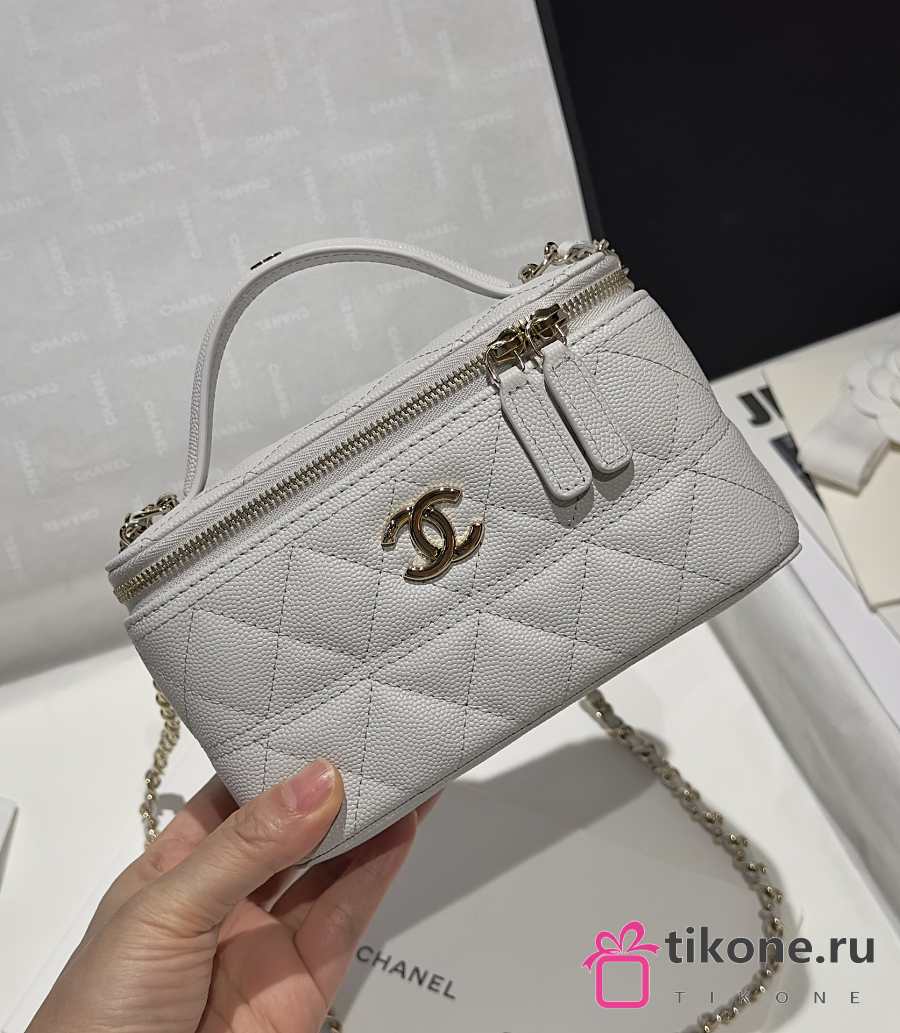 Chanel Long Vanity With Chain Grained Calfskin & Gold-Tone Metal Gray - 17x9.5x8cm