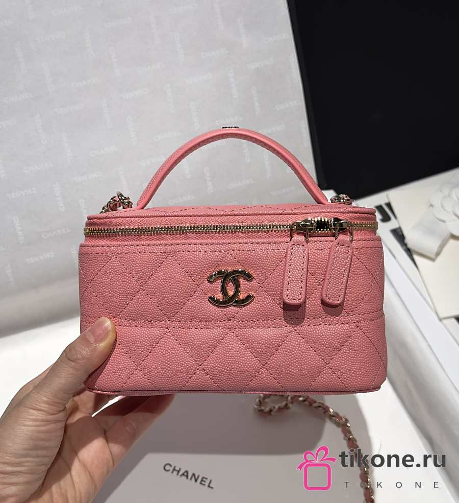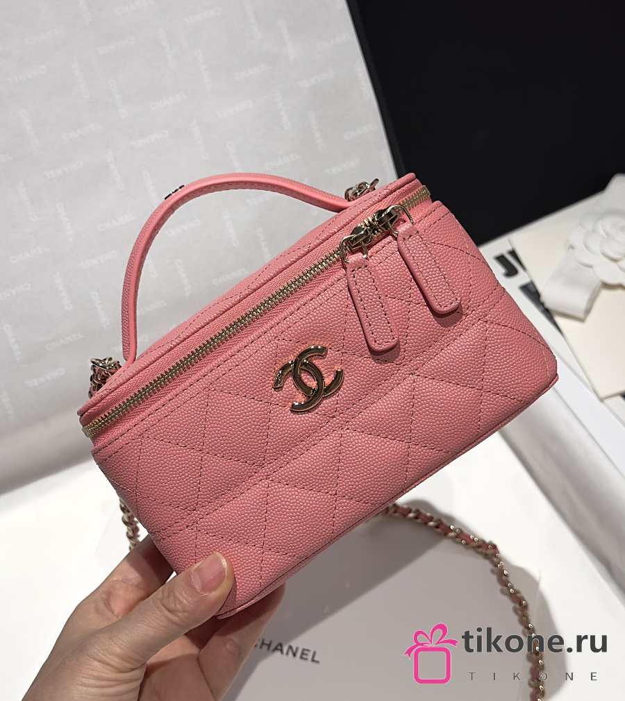 Chanel Long Vanity With Chain Grained Calfskin & Gold-Tone Metal Pink - 17x9.5x8cm