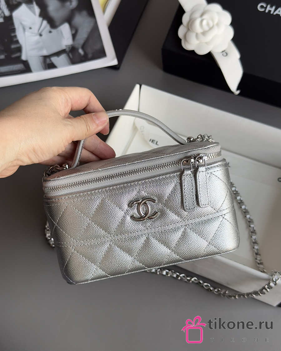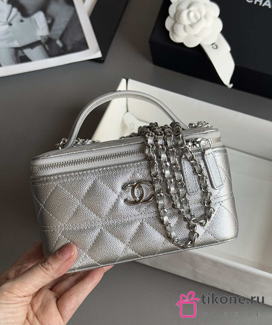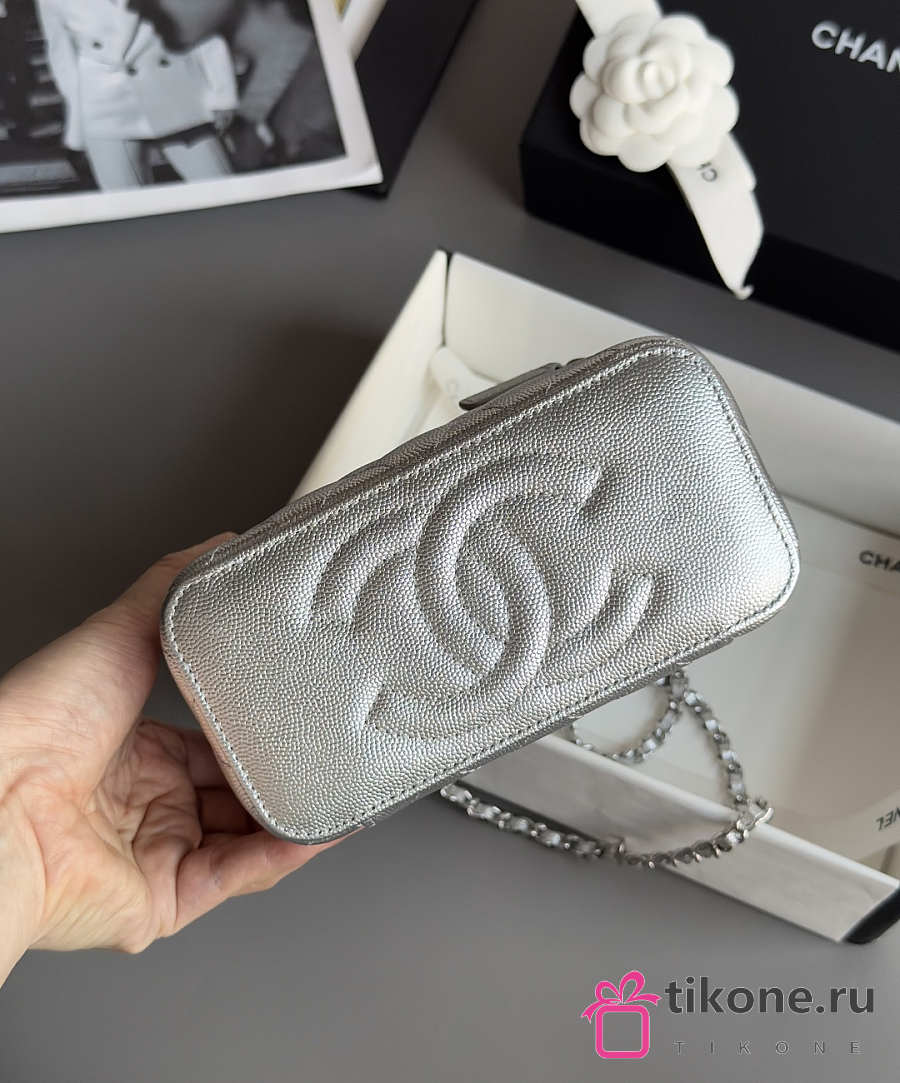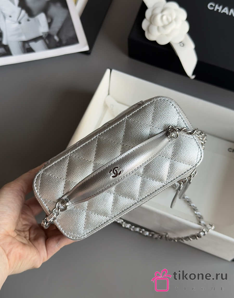 Chanel Long Vanity With Chain Grained Calfskin & Silver-Tone Metal Silver - 17x9.5x8cm
