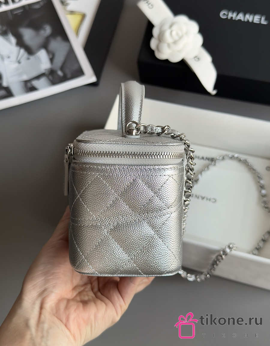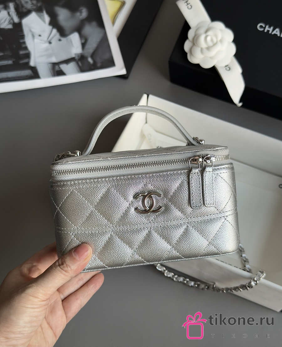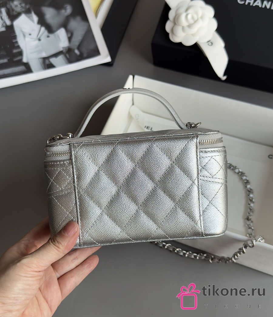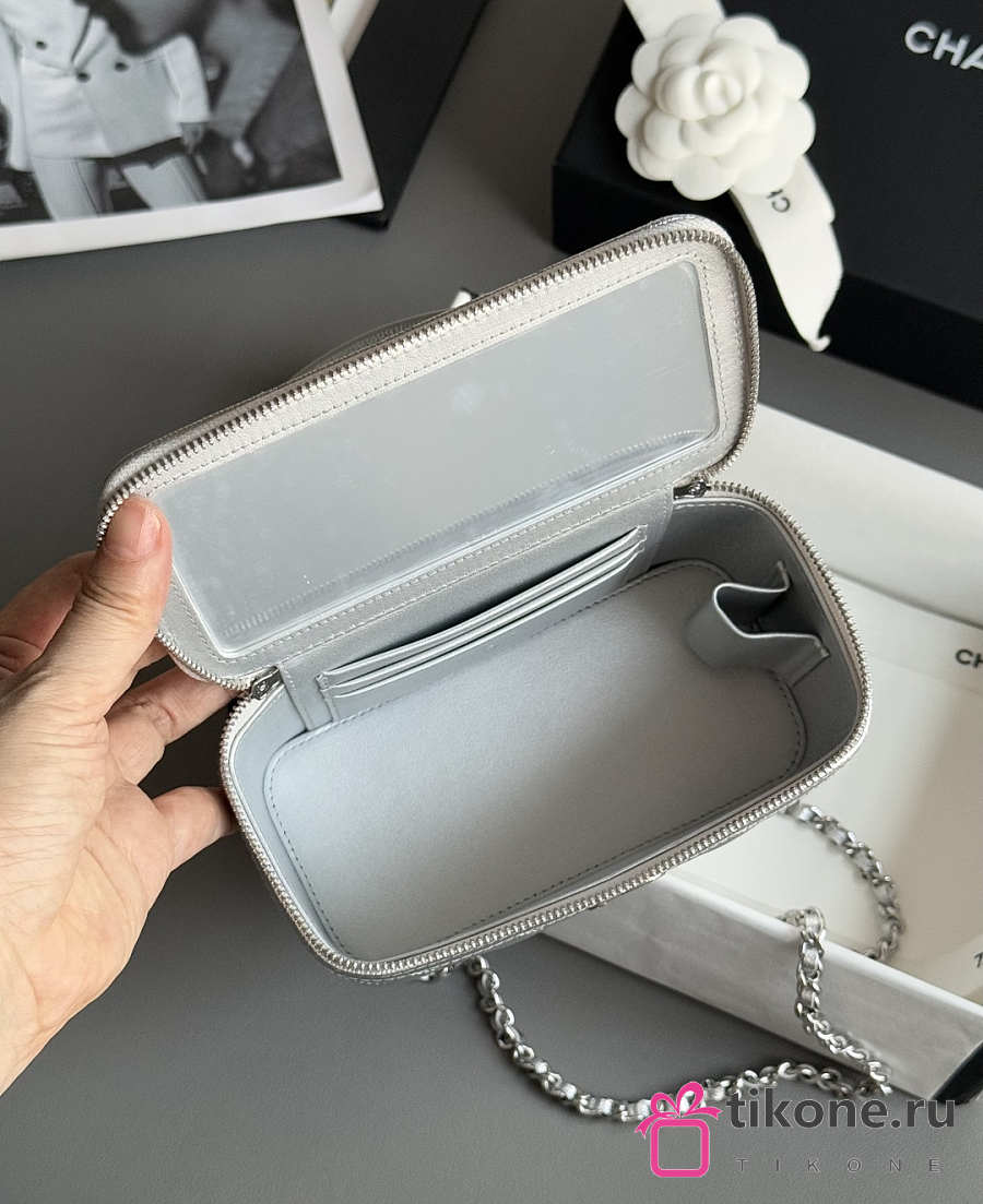 Chanel Long Vanity With Chain Grained Calfskin & Silver-Tone Metal Silver - 17x9.5x8cm