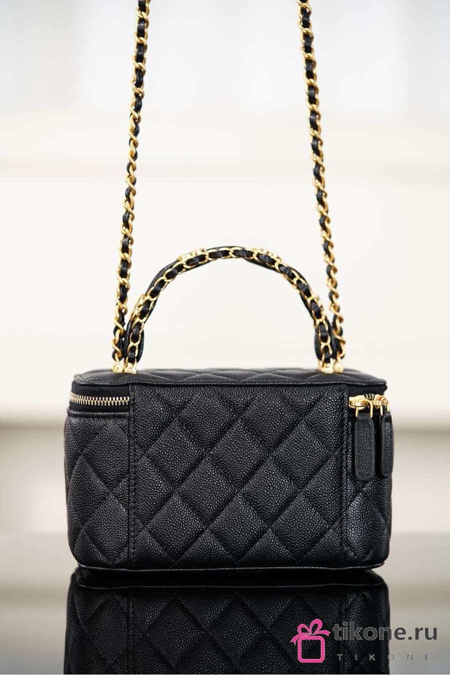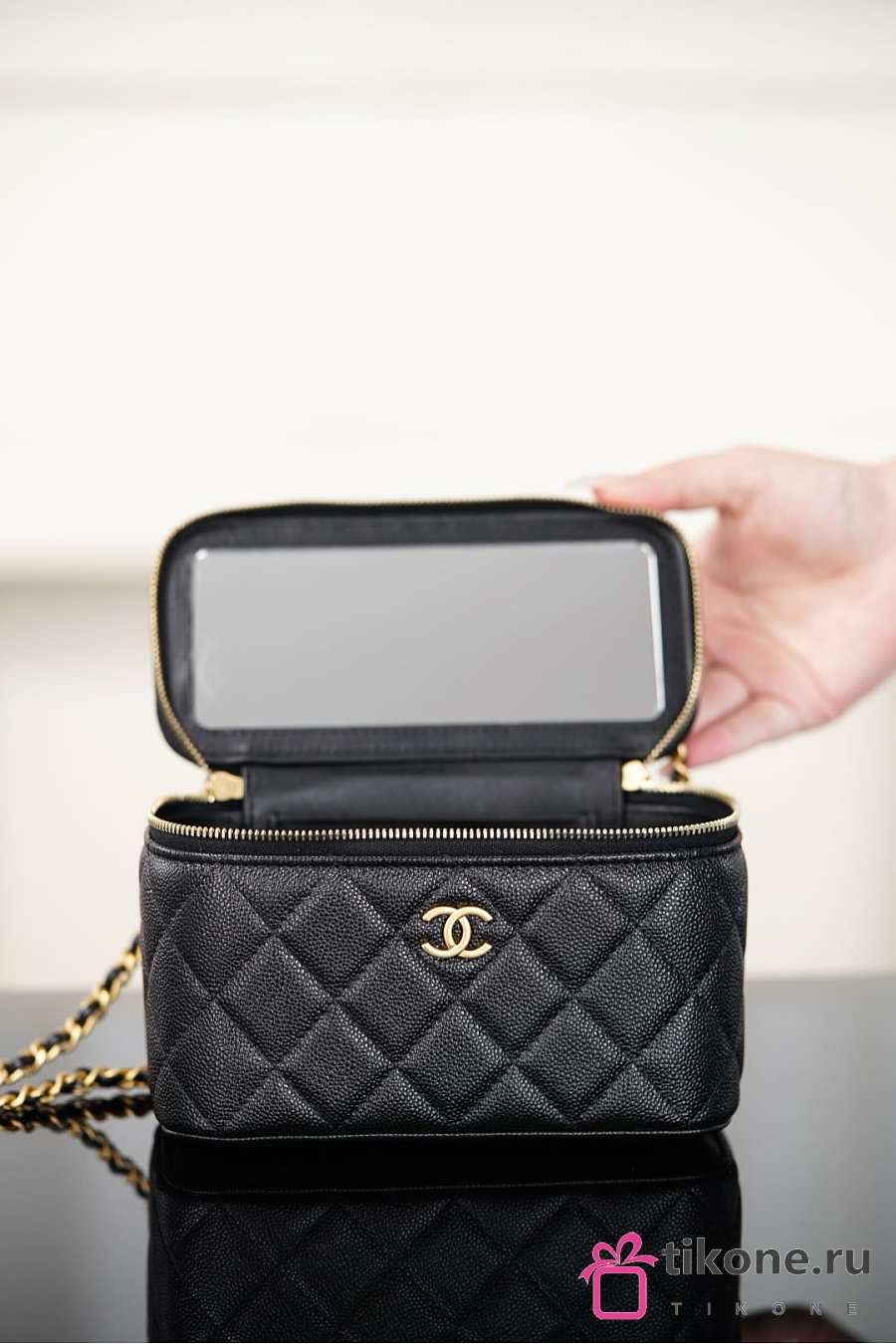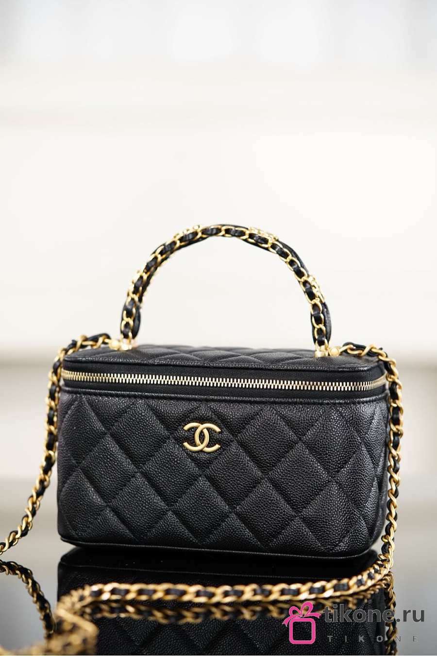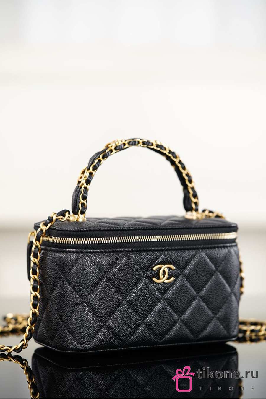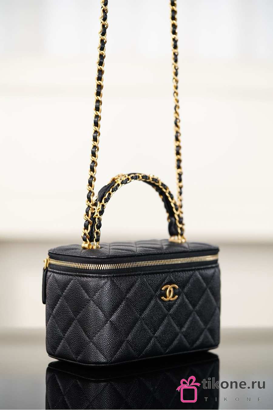 Chanel Long Vanity With Chain Grained Shiny Calfskin & Gold-Tone Metal Black - 19.5x12x6.5cm