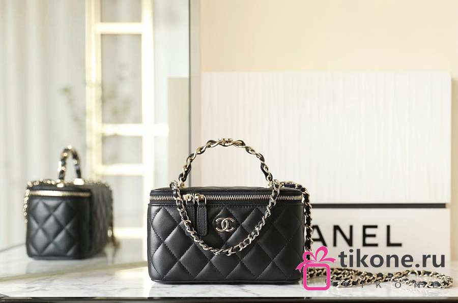 Chanel Long Vanity With Chain Lamskin & Gold Tone Metal Black - 19.5x12x6.5cm