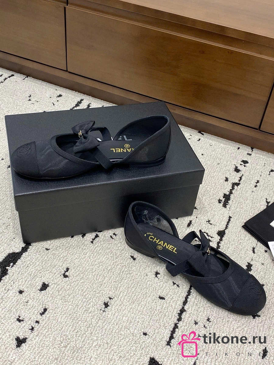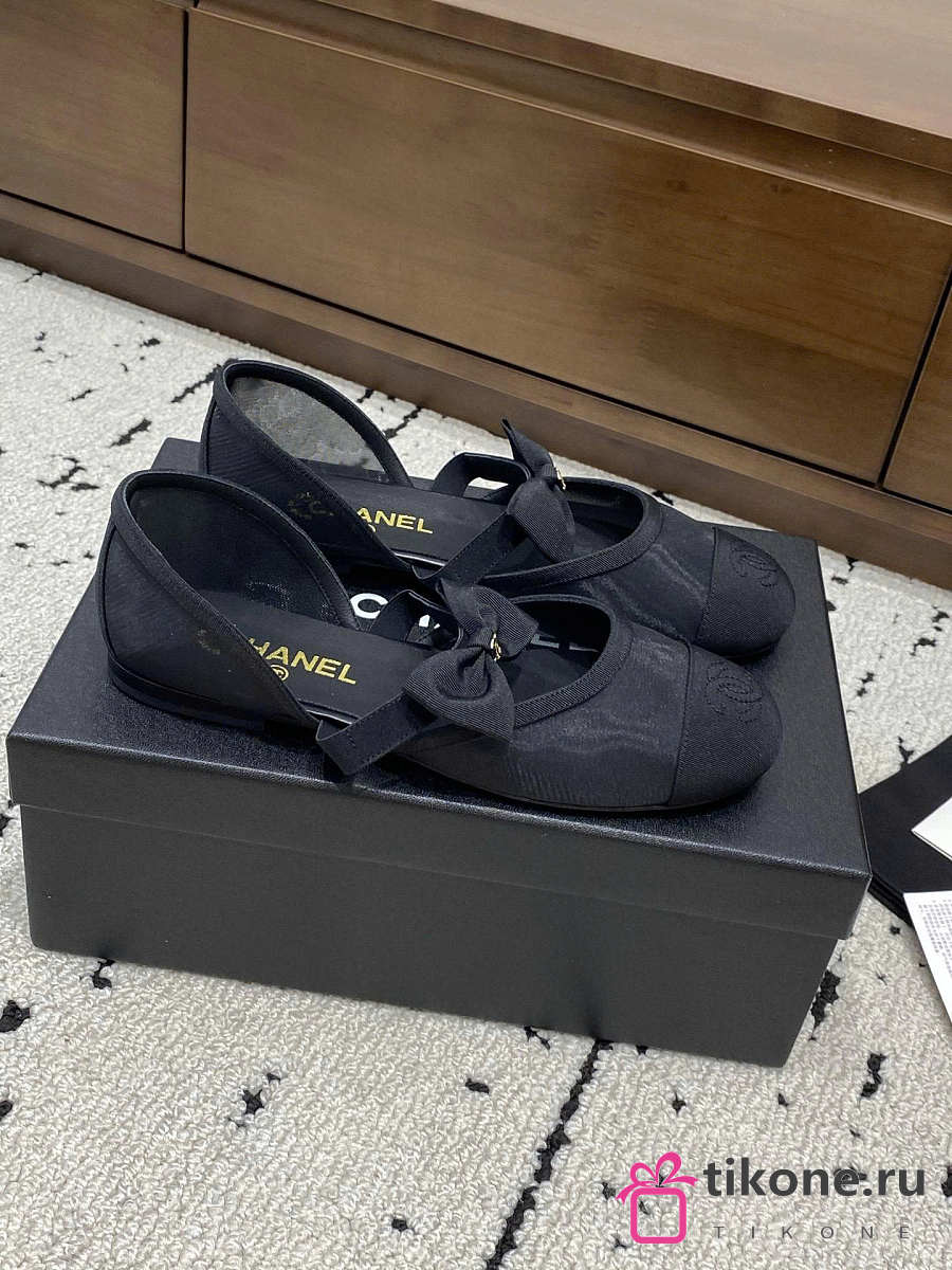 Chanel Mary Janes Mesh & Grosgrain Black
