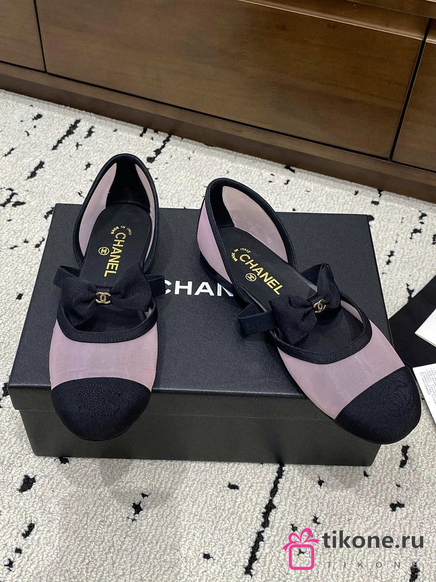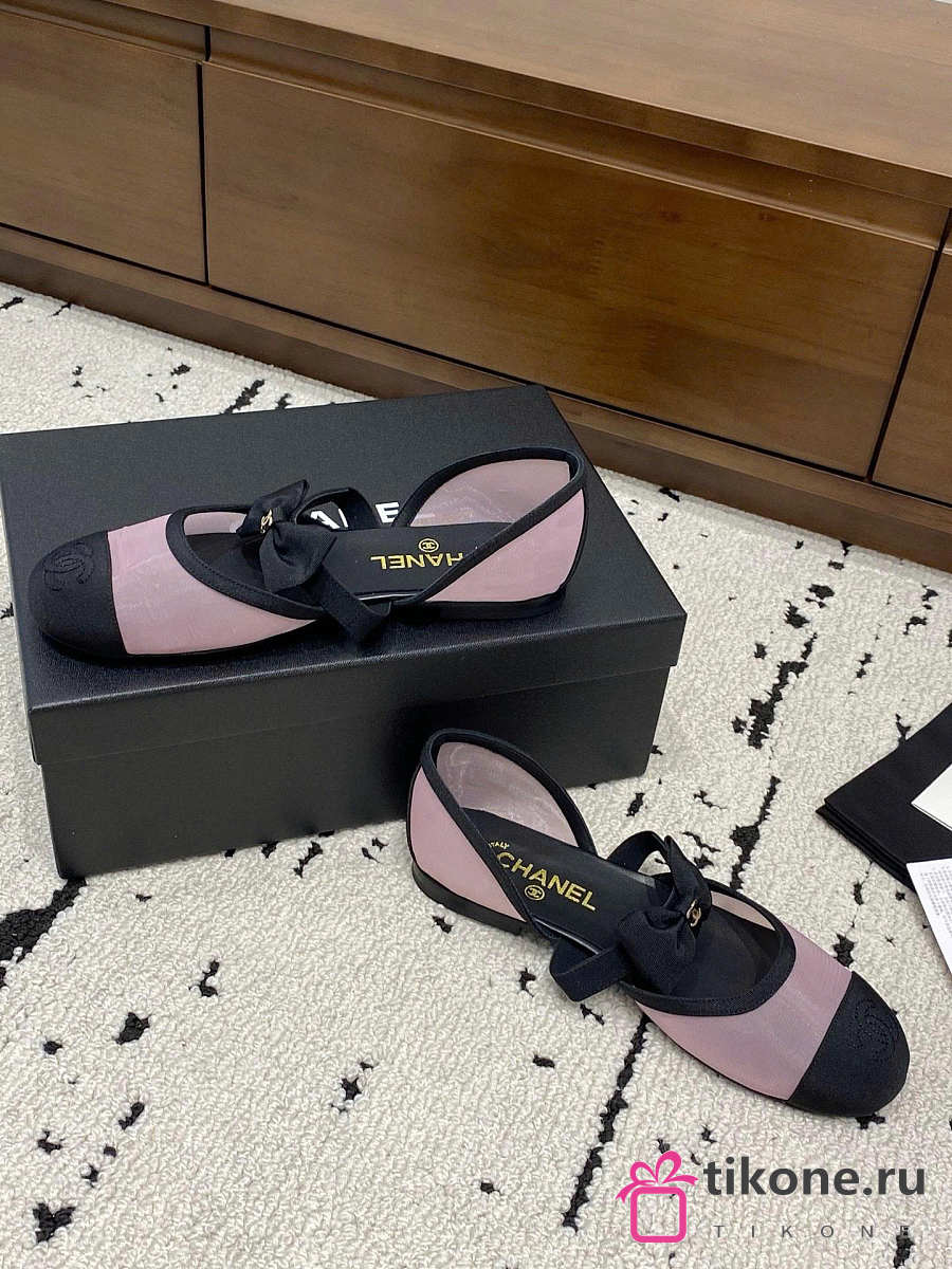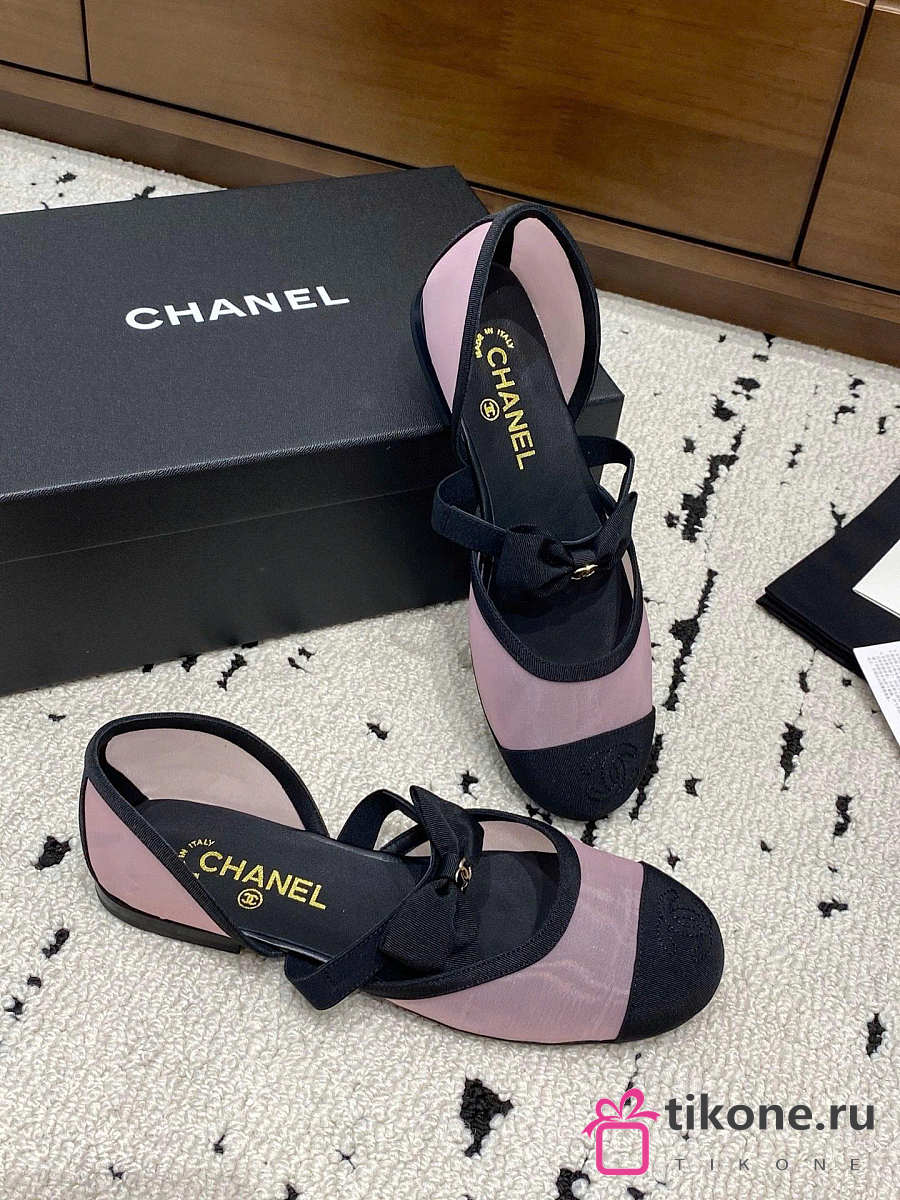 Chanel Mary Janes Mesh & Grosgrain Light Pink & Black