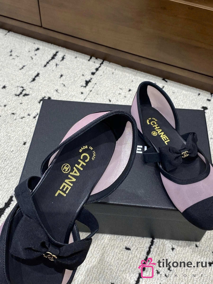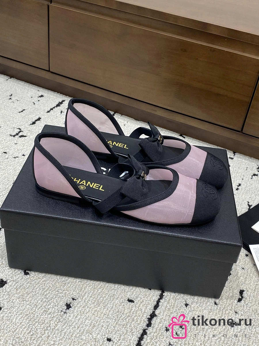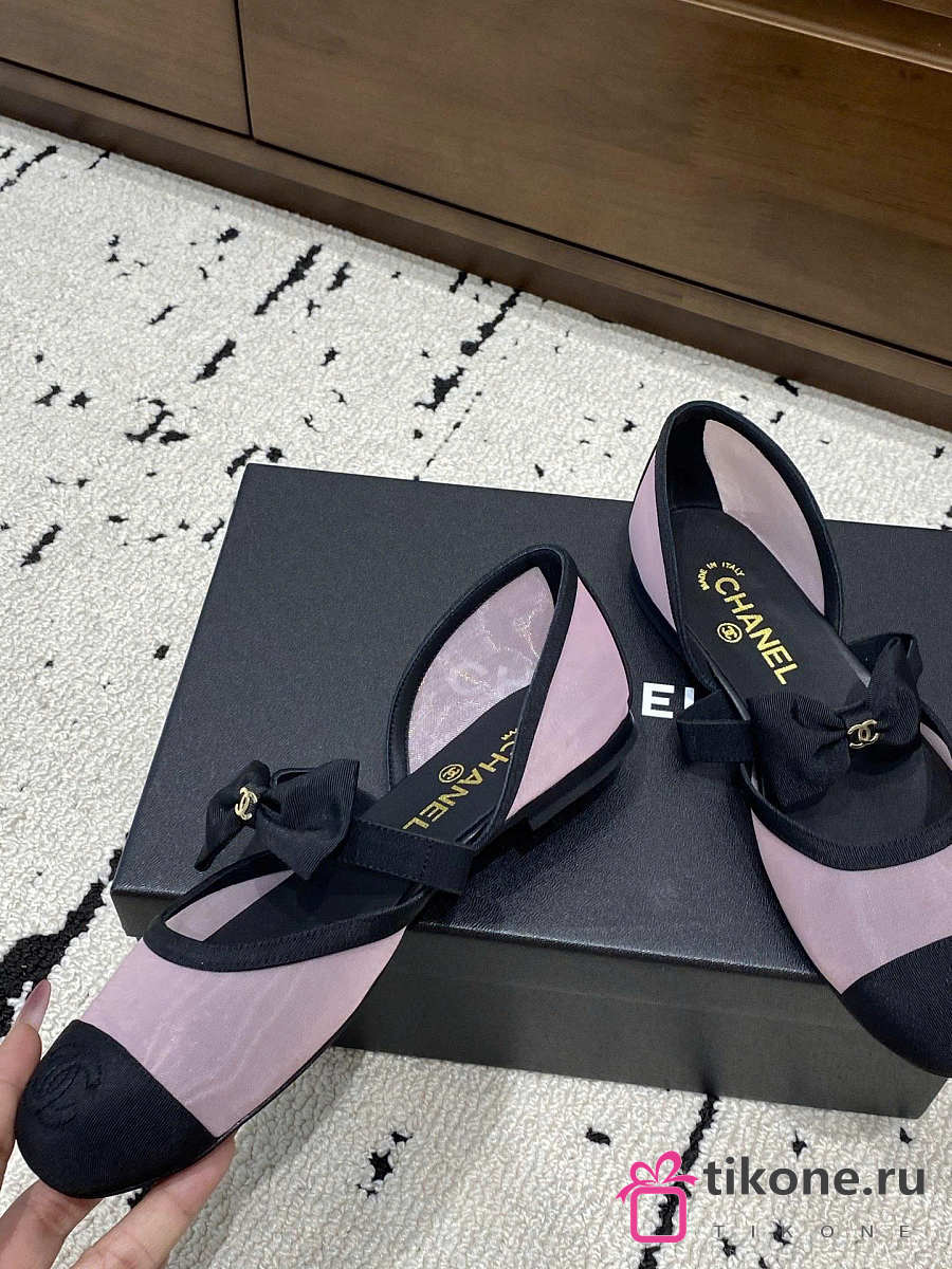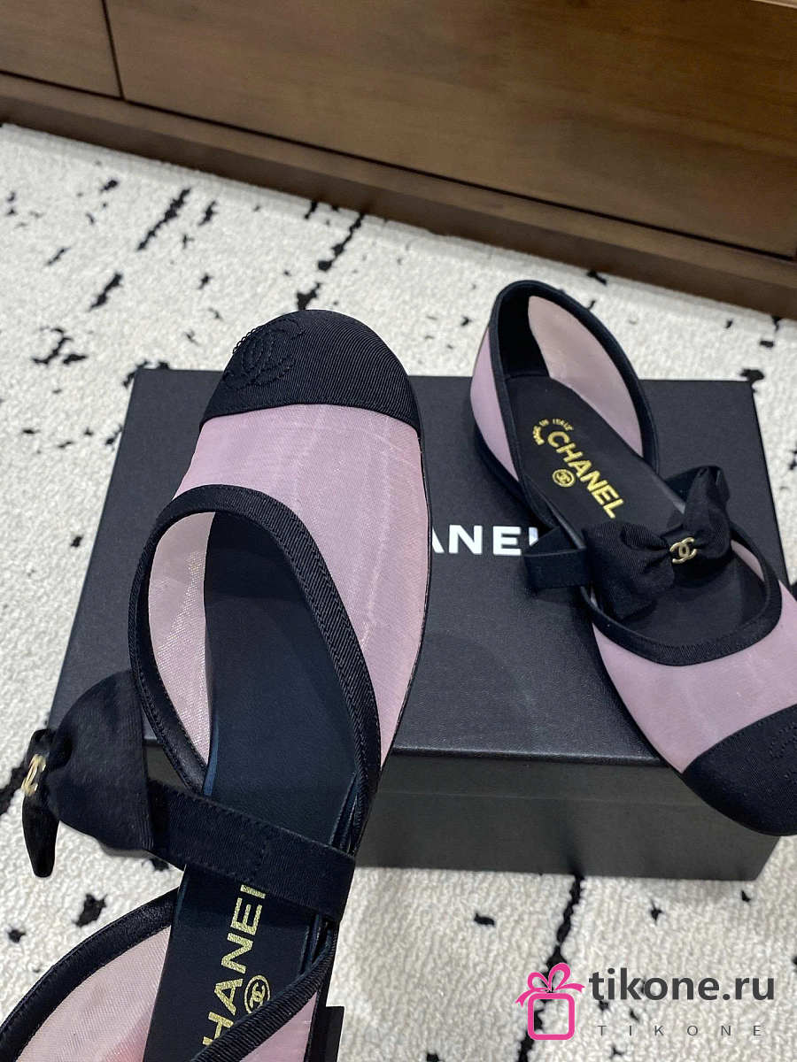 Chanel Mary Janes Mesh & Grosgrain Light Pink & Black