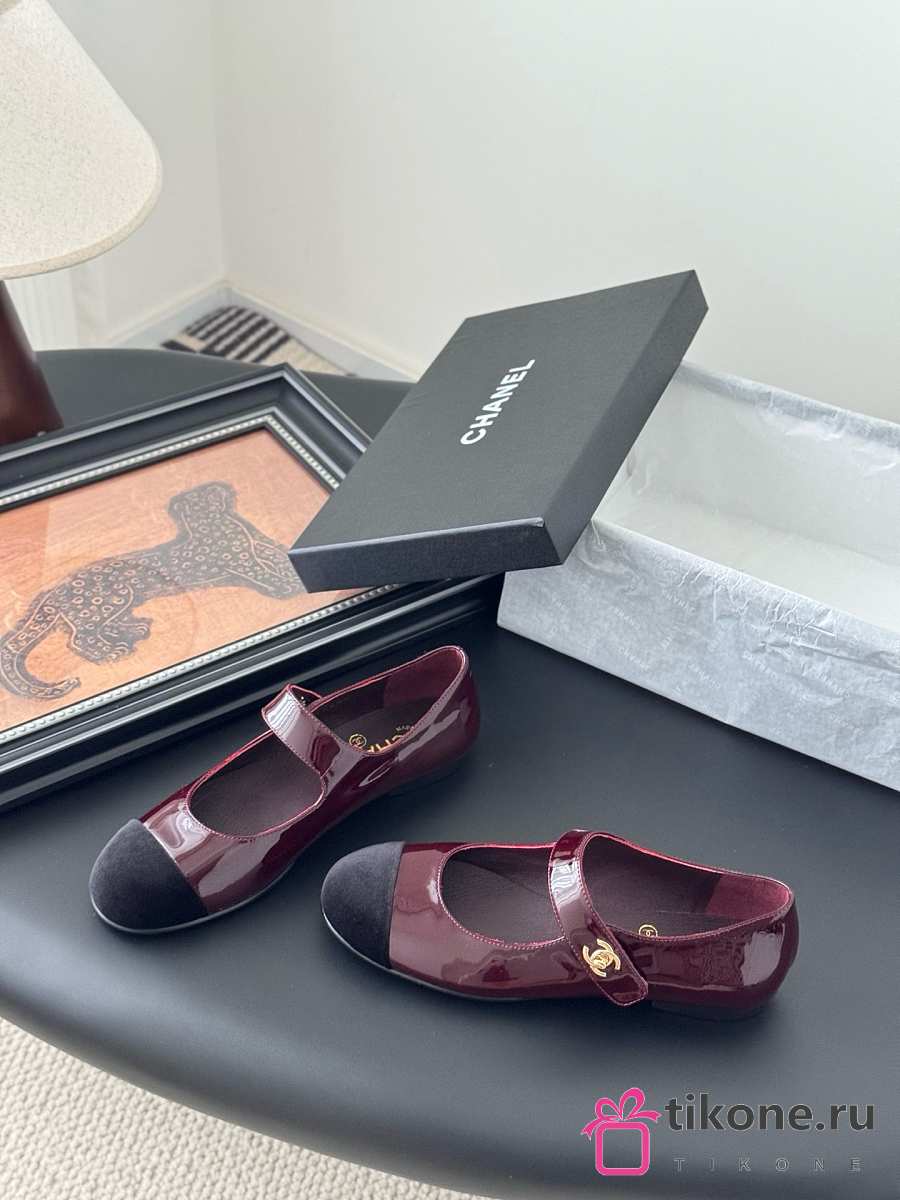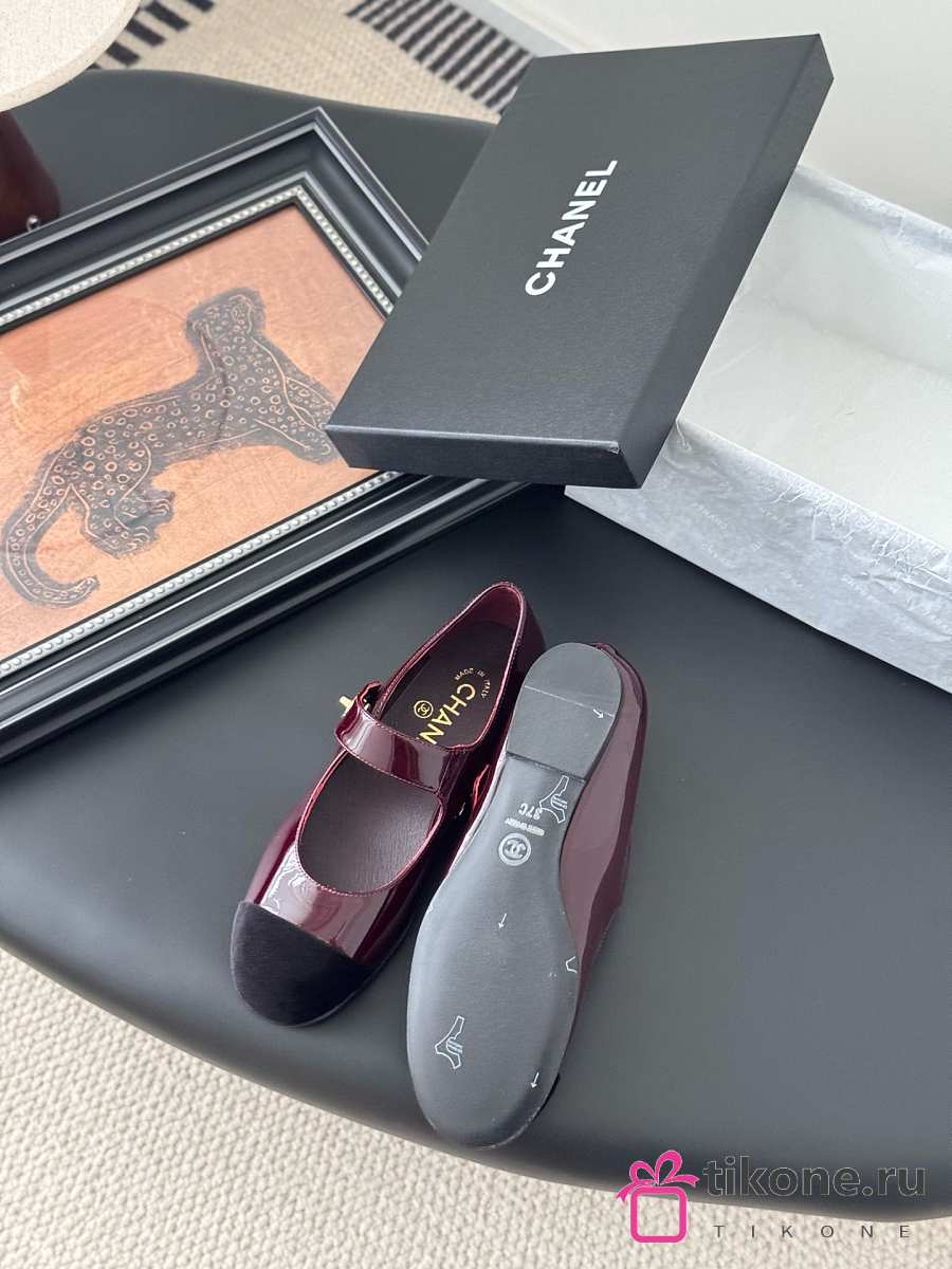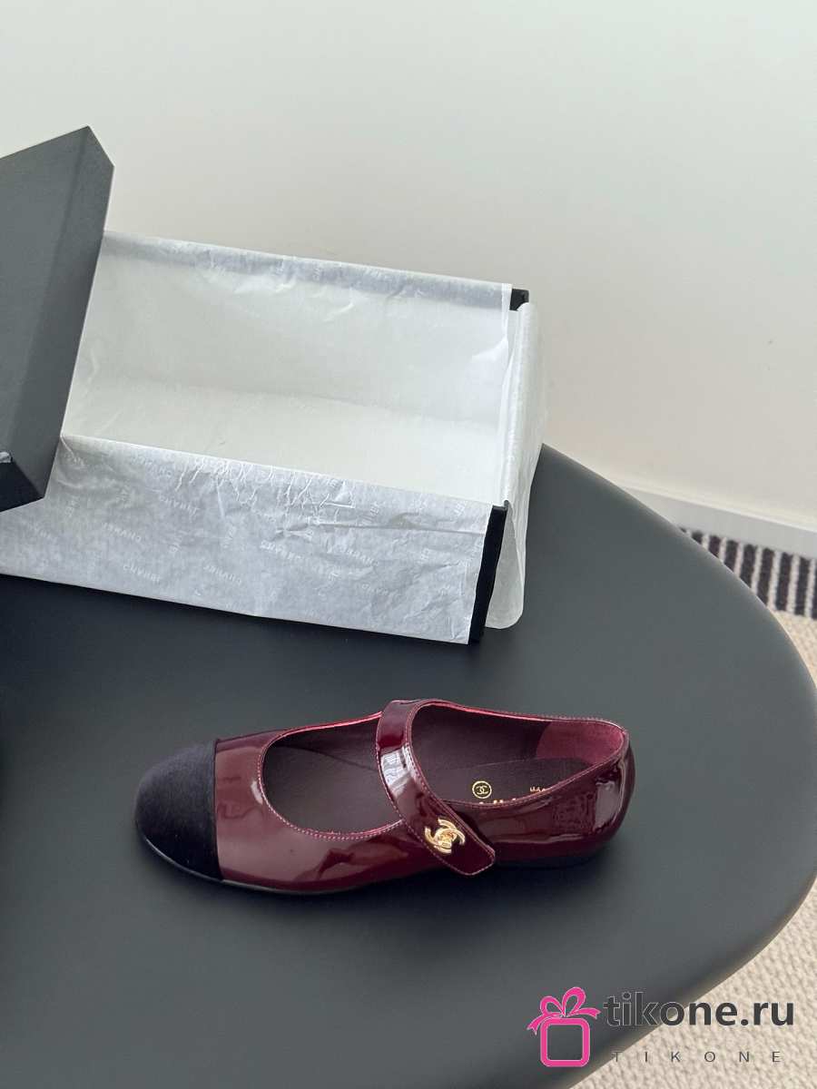 Chanel Mary Janes Pantent & Velvet Burgundy Black