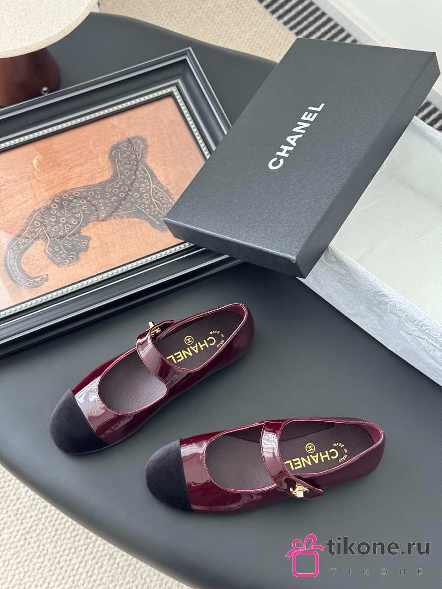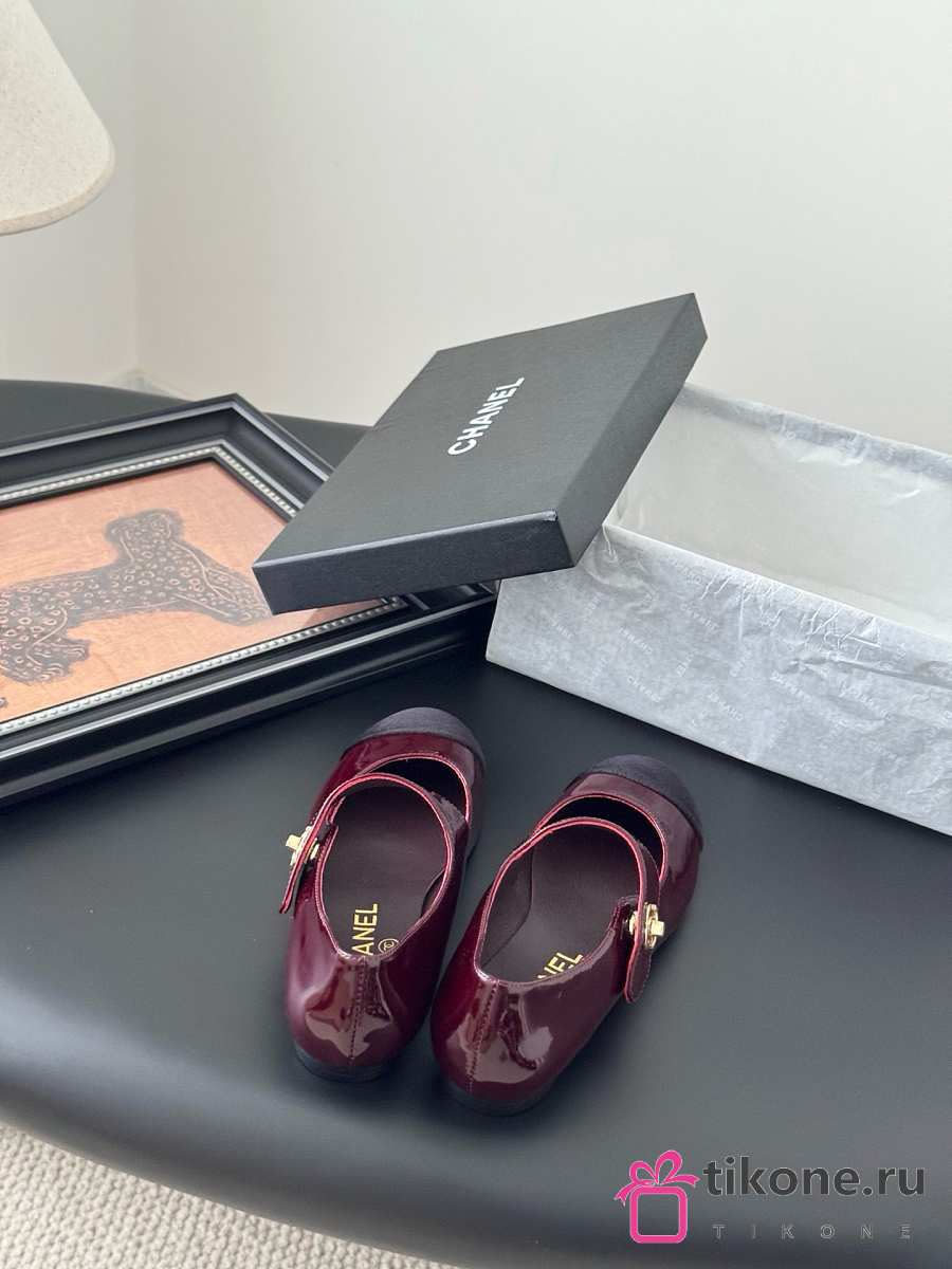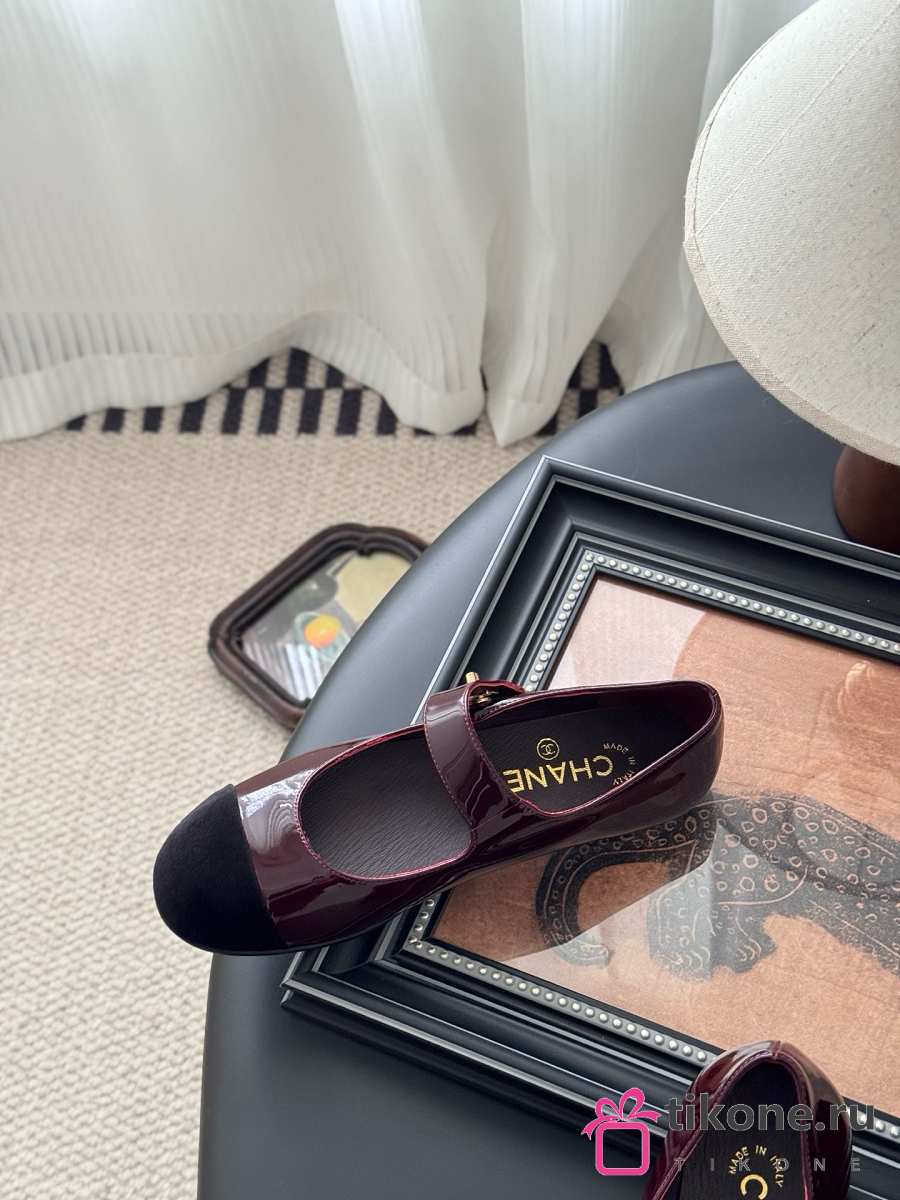 Chanel Mary Janes Pantent & Velvet Burgundy Black