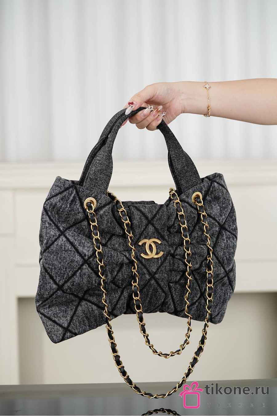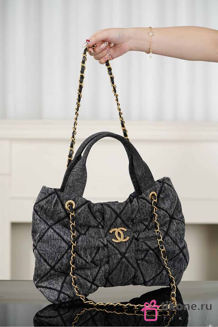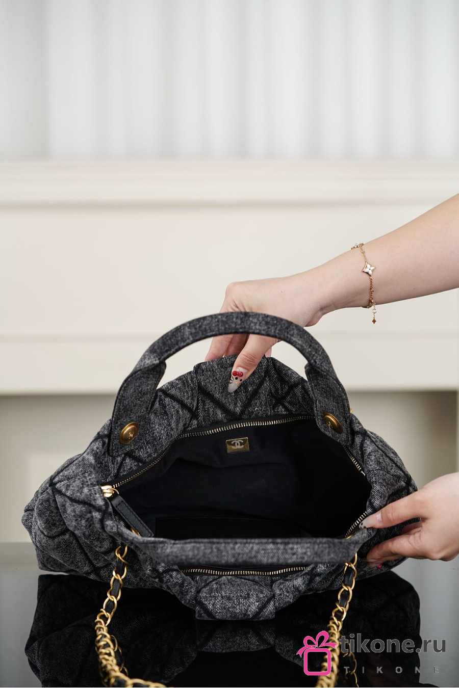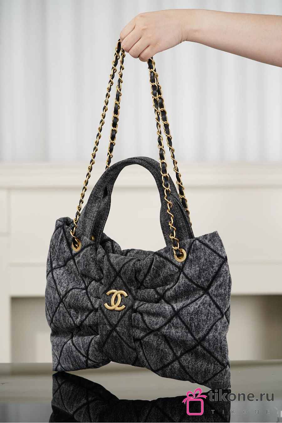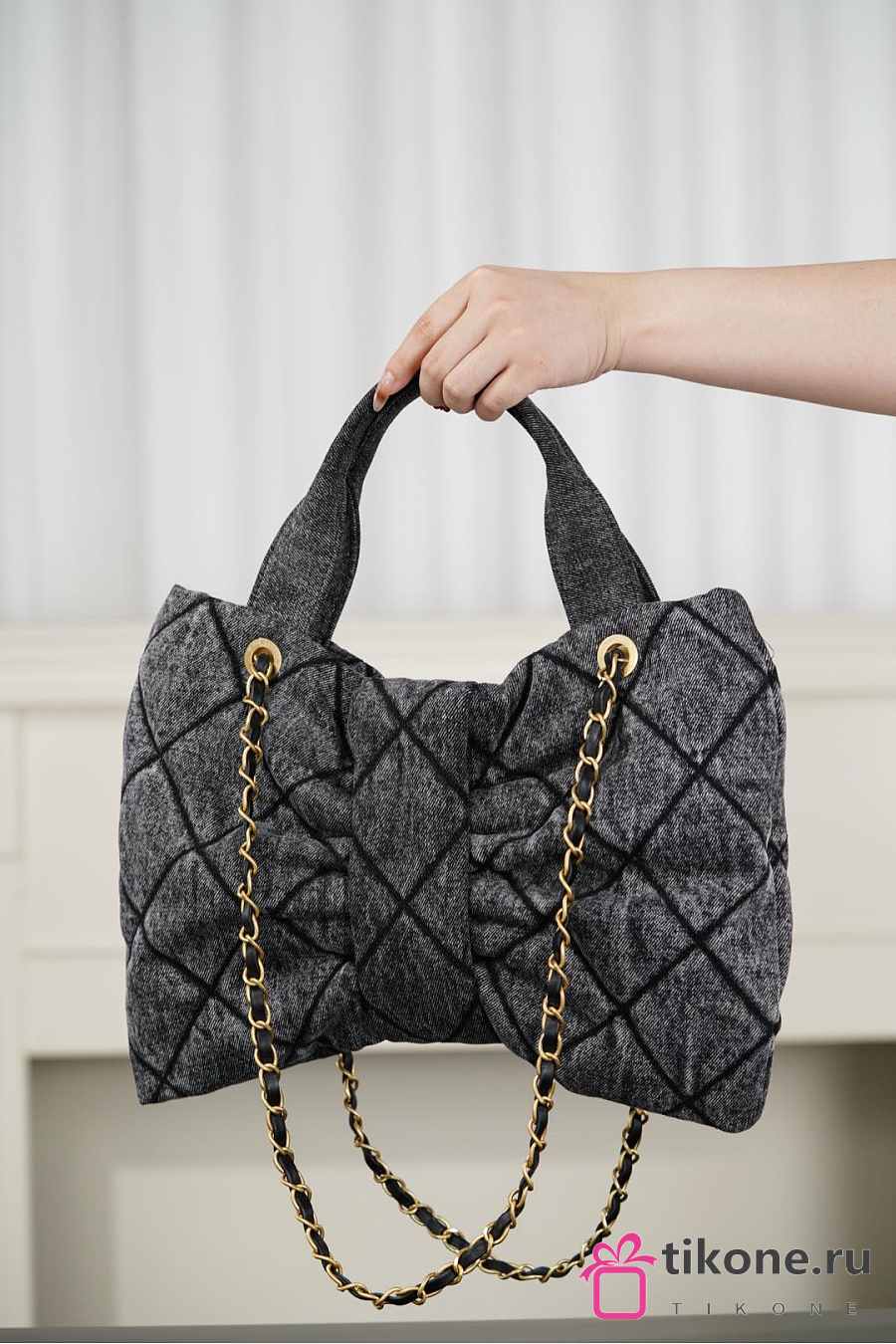 Chanel Maxi Bow Bag Washed Denim & Gold Tone Metal Black - 38x29x5cm