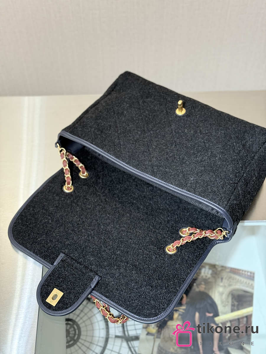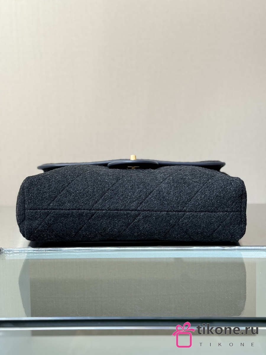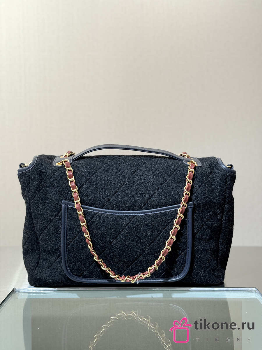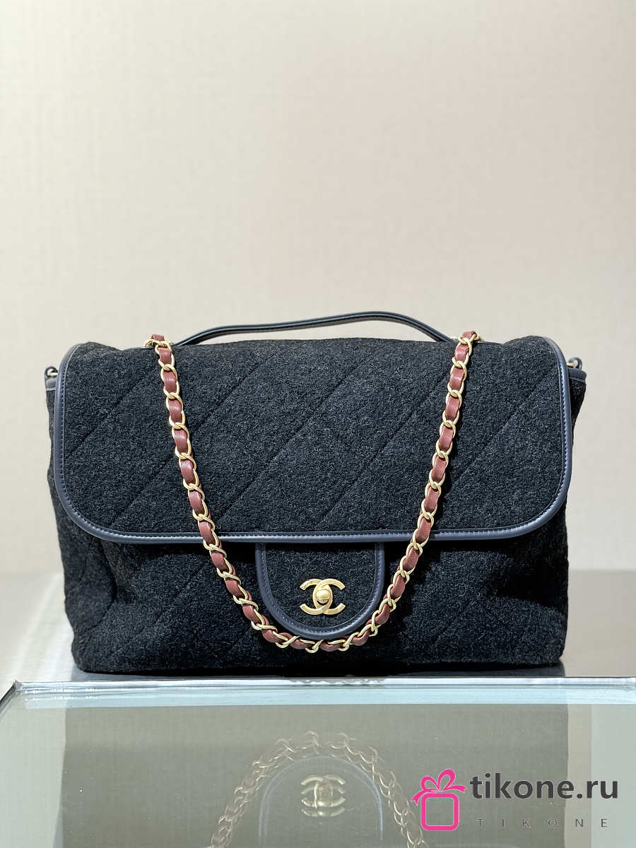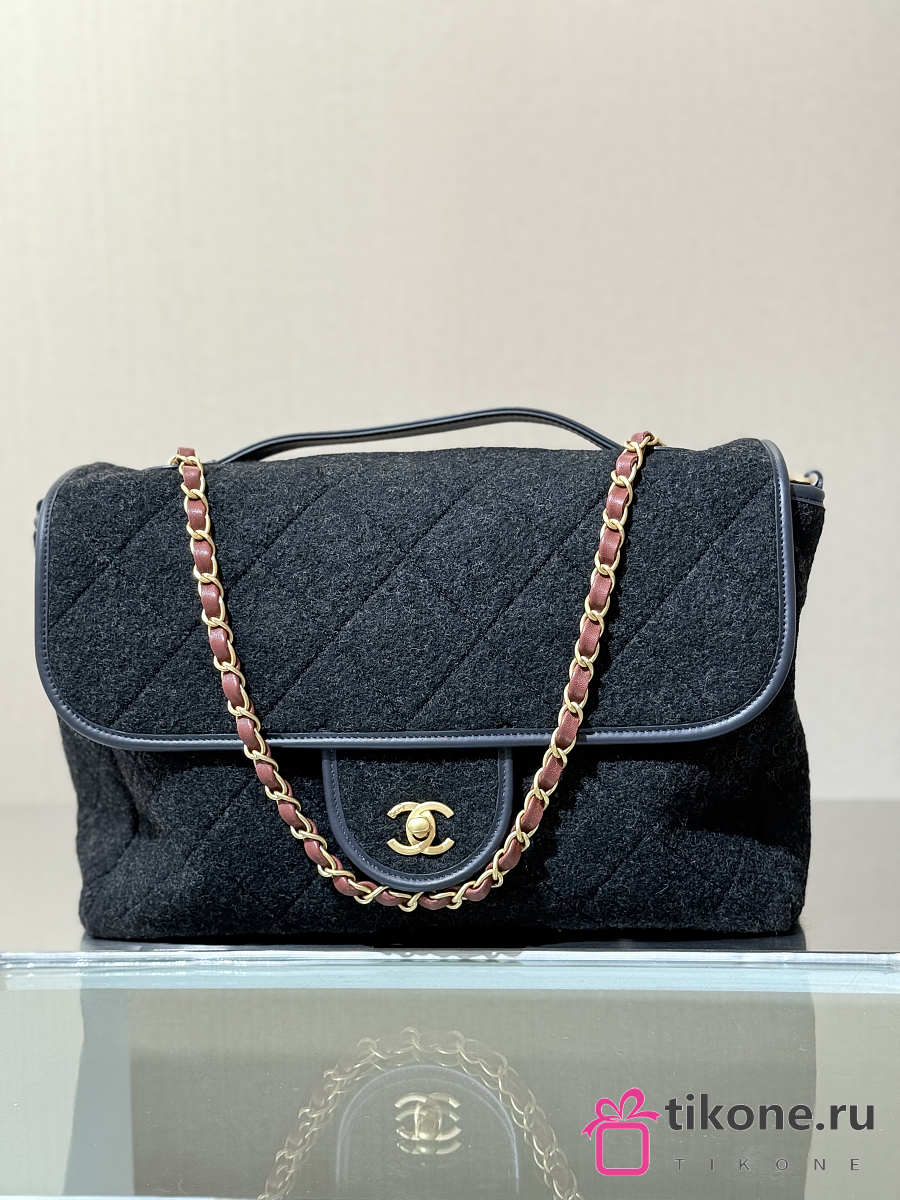 Chanel Maxi Flap Bag With Top Handle Wool & Gold Tone Metal Dark Grey - 56x33x7cm