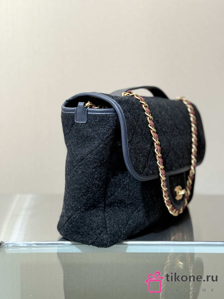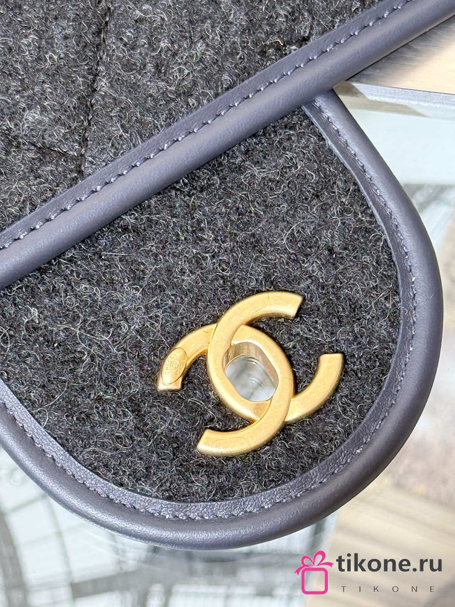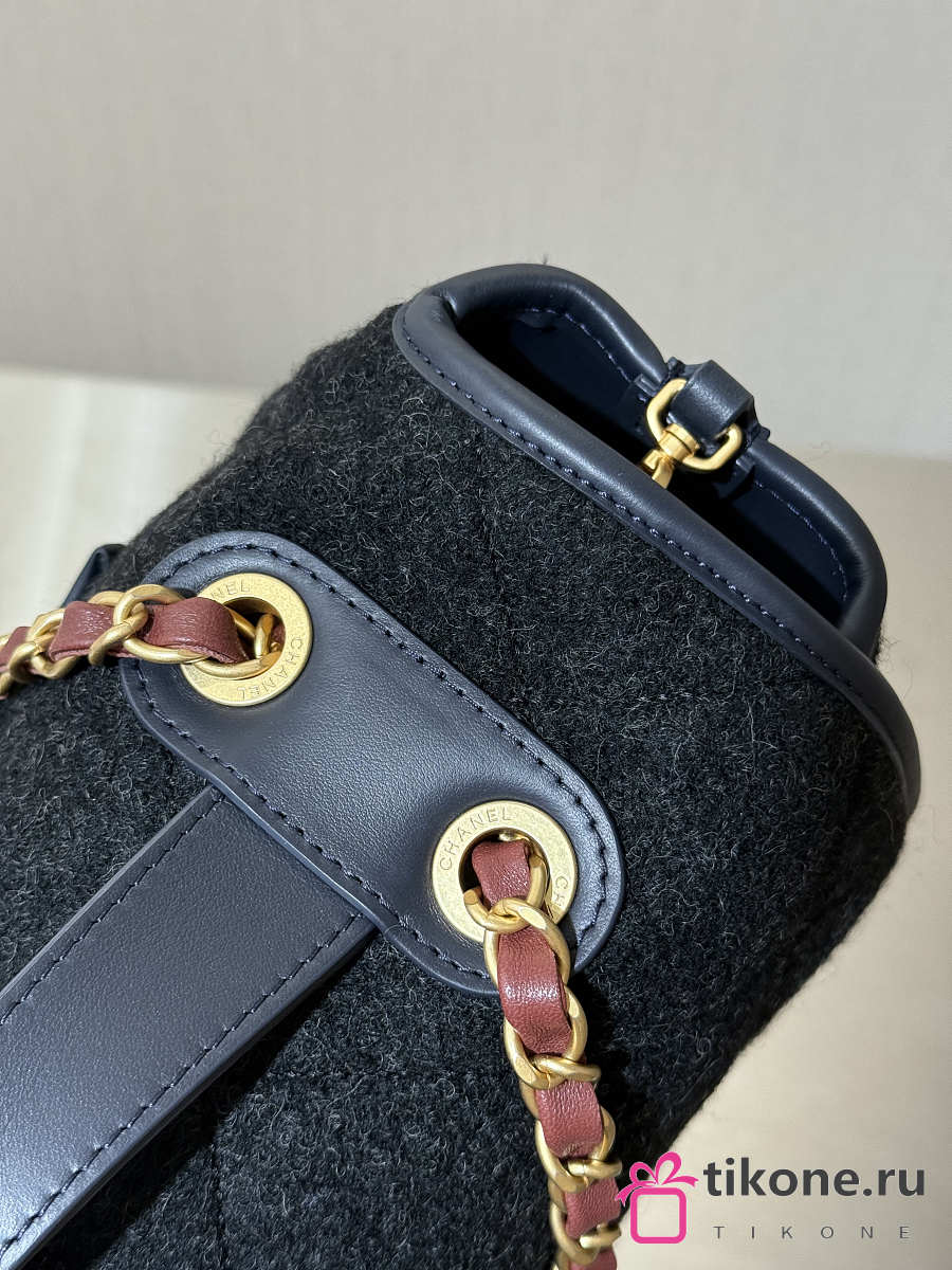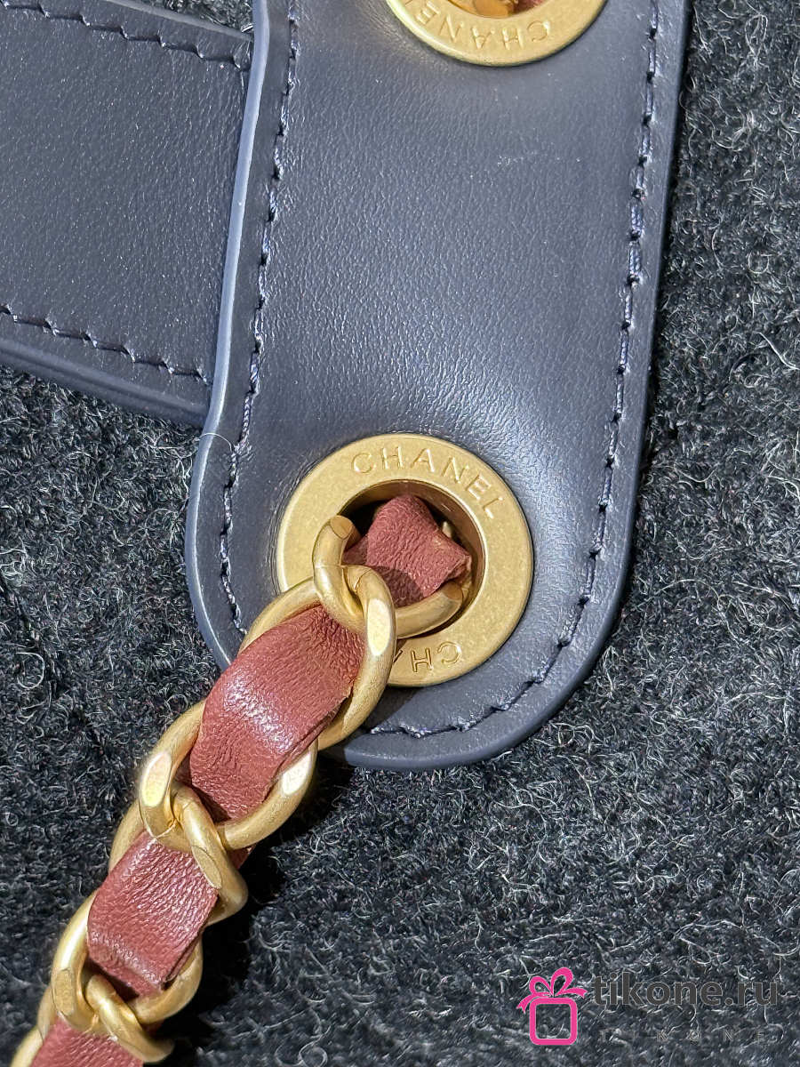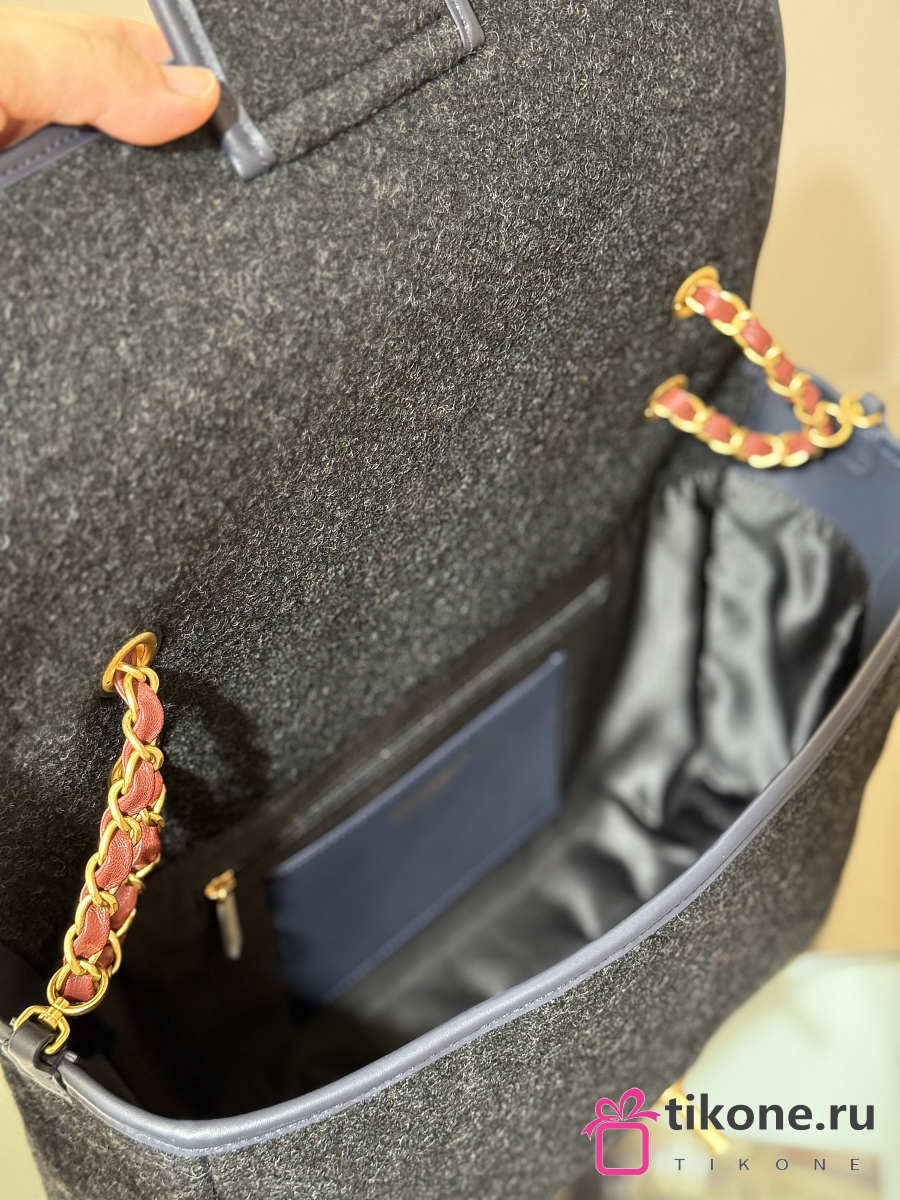 Chanel Maxi Flap Bag With Top Handle Wool & Gold Tone Metal Dark Grey - 56x33x7cm