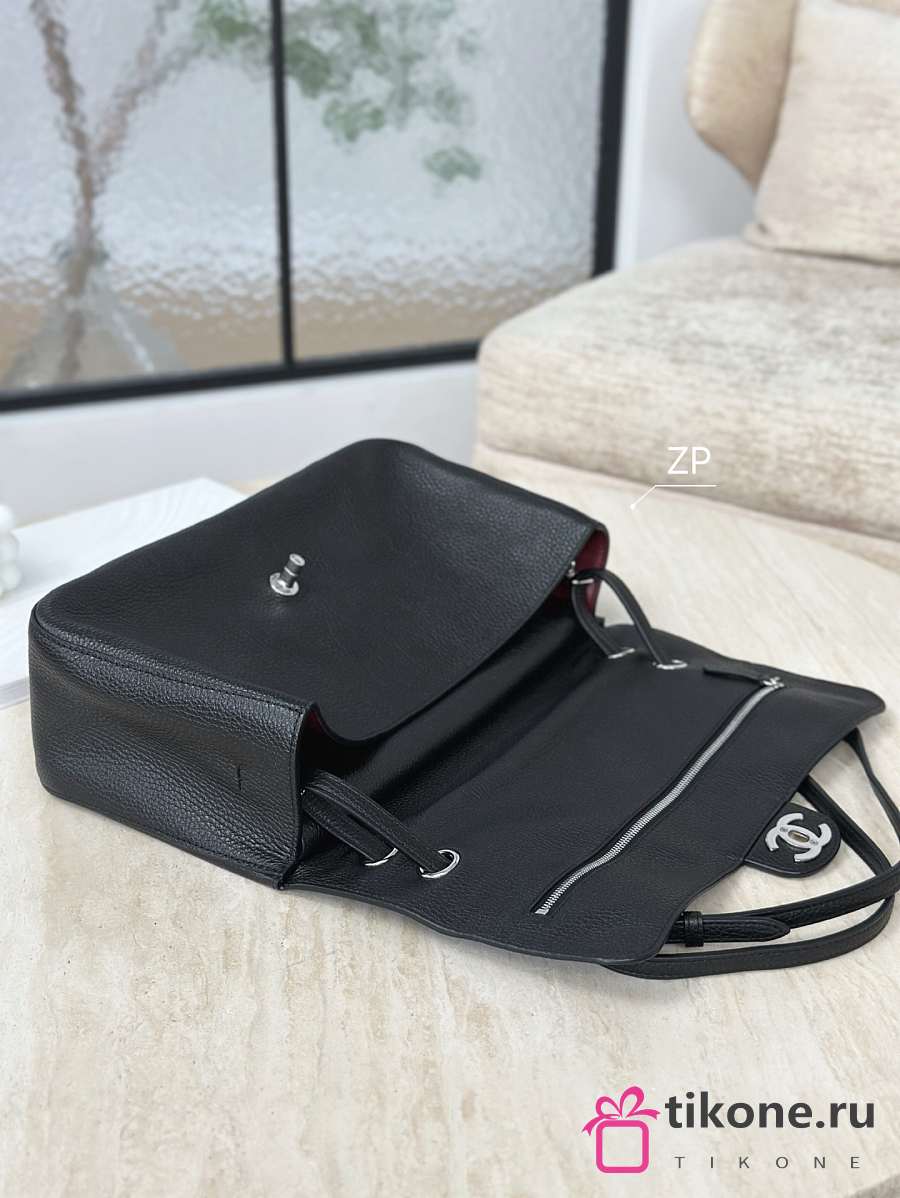 Chanel 25 Medium Backpack Grained Calfskin & Gold Tone Metal Black - 23x23x14cm