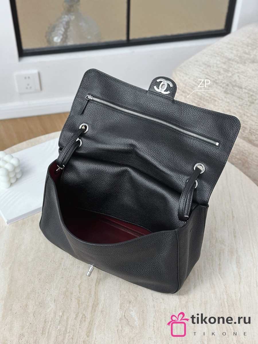 Chanel Maxi Flapbag Grained Calfskin & Silver Metal Black - 32x19.5x10cm