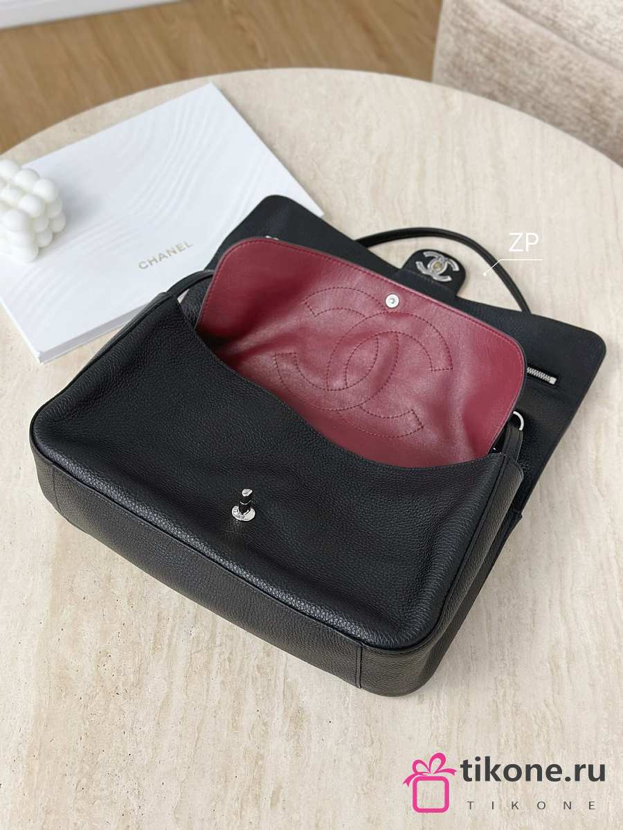 Chanel 25 Handbag Small Grained Calfskin Gold Tone Metal Black - 30x26x14cm