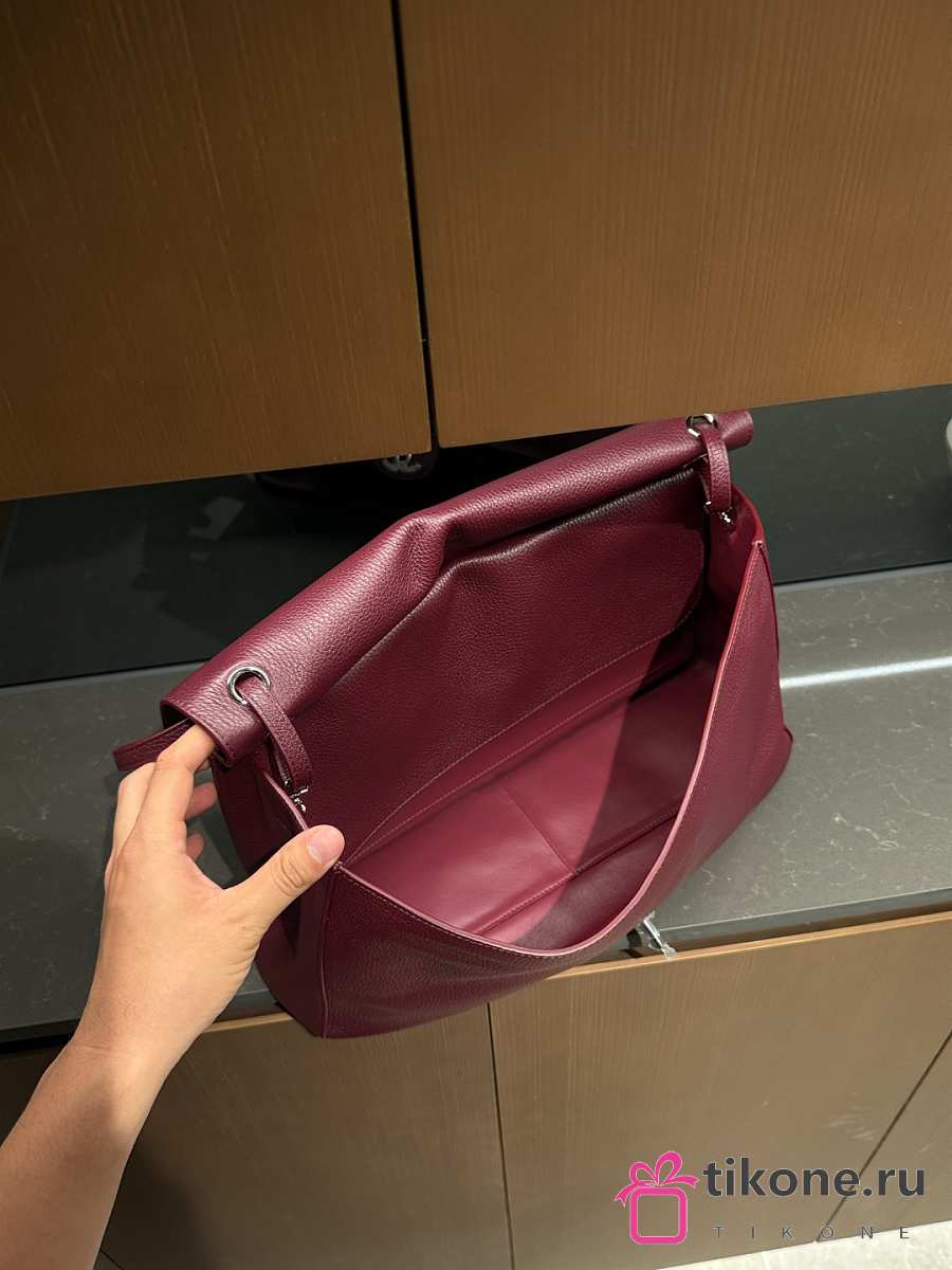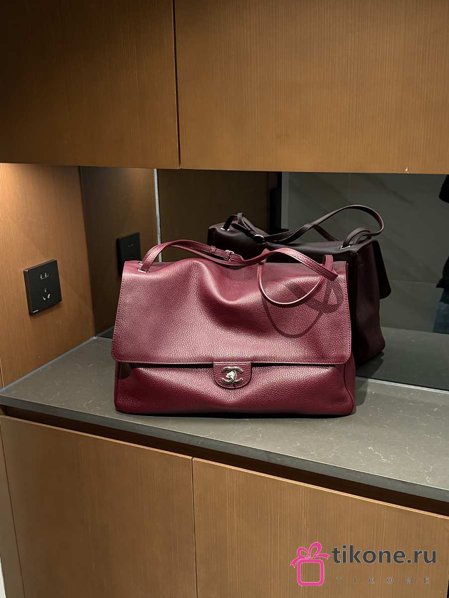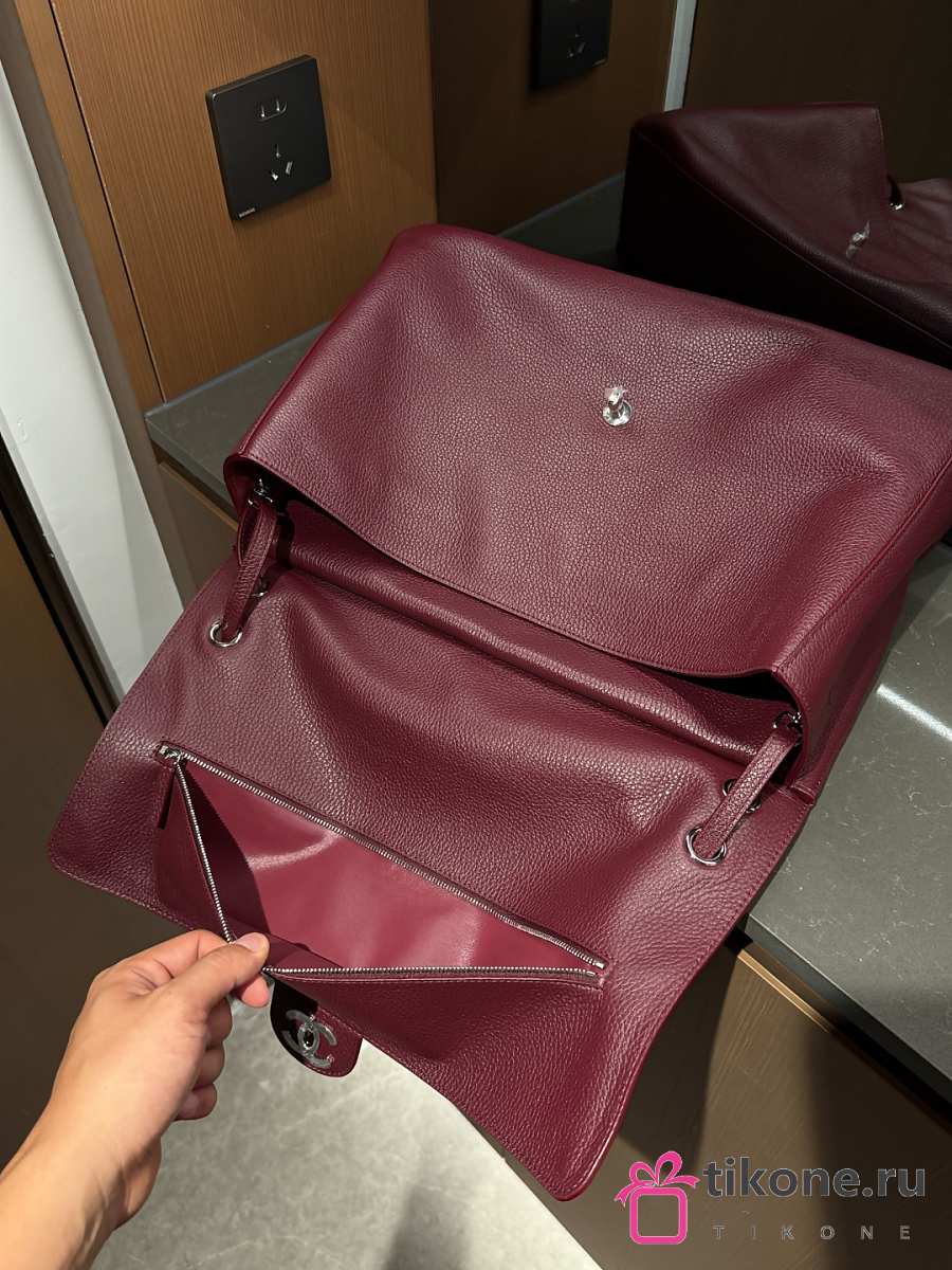 Chanel Maxi Flapbag Grained Calfskin & Silver Metal Dark Burgundy - 38.5x26x11cm