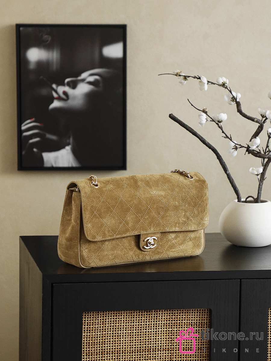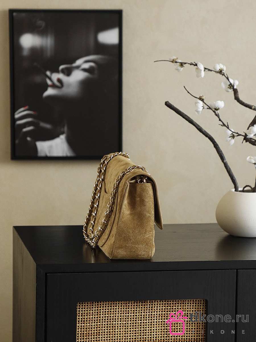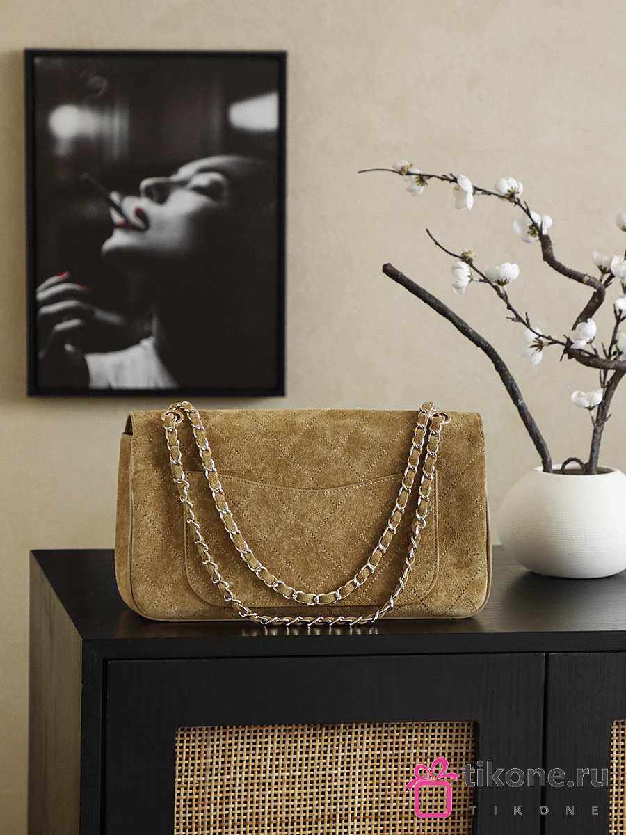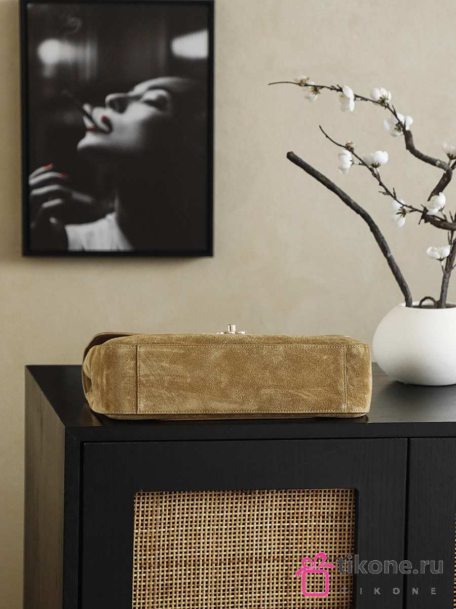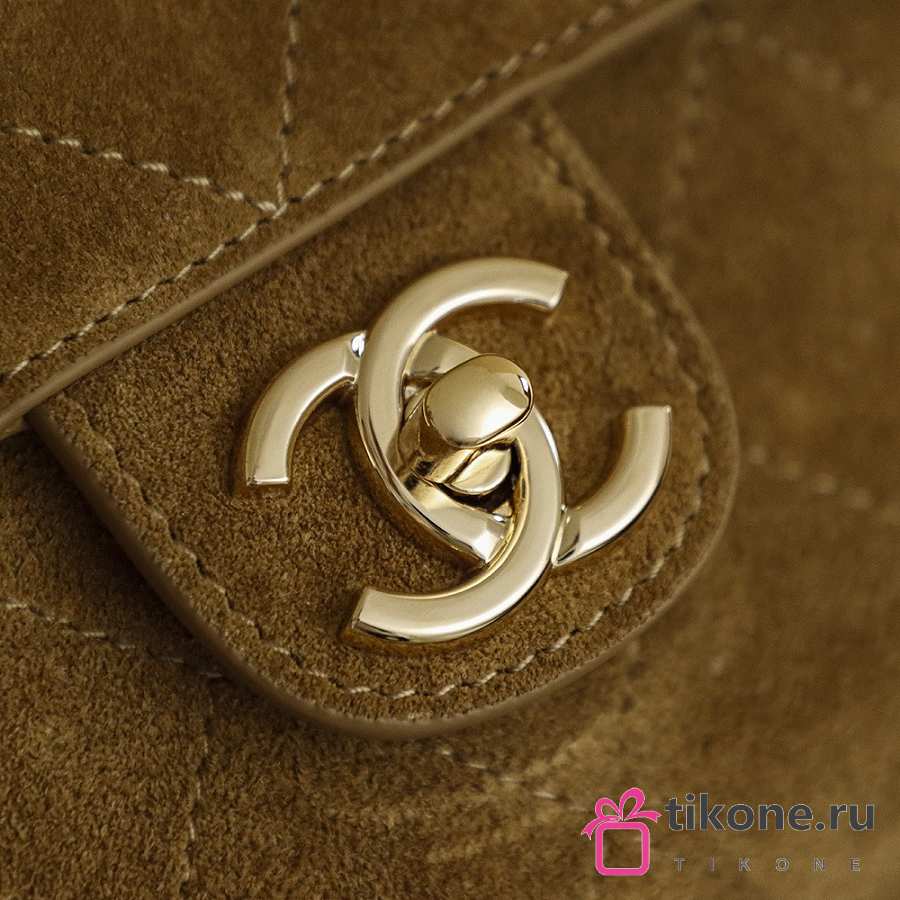 Chanel Maxi Flapbag Suede Calfskin & Gold-Tone Metal Dark Beige - 32x9.5x10cm