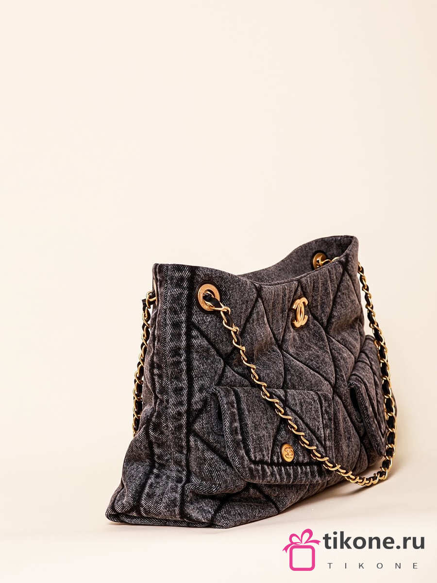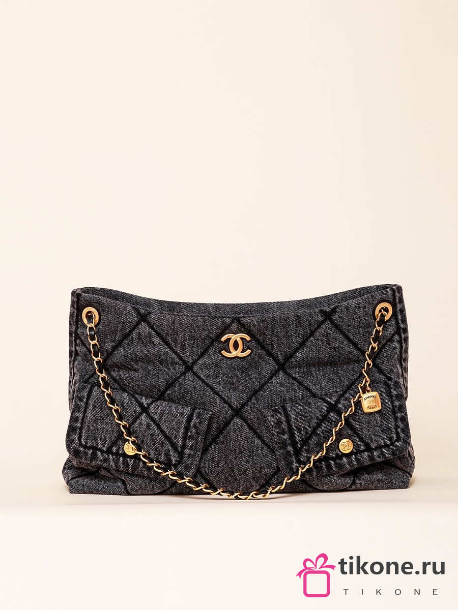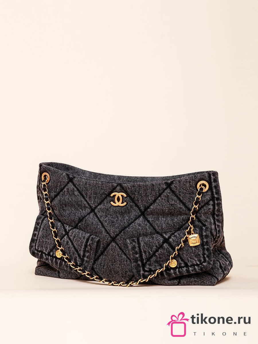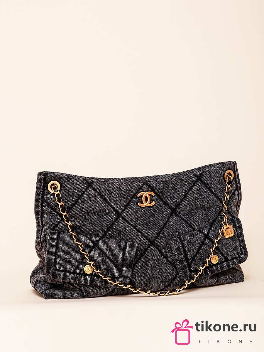 Chanel Maxi Flapbag Washed Denim & Gold Tone Metal Black - 45x27x10cm
