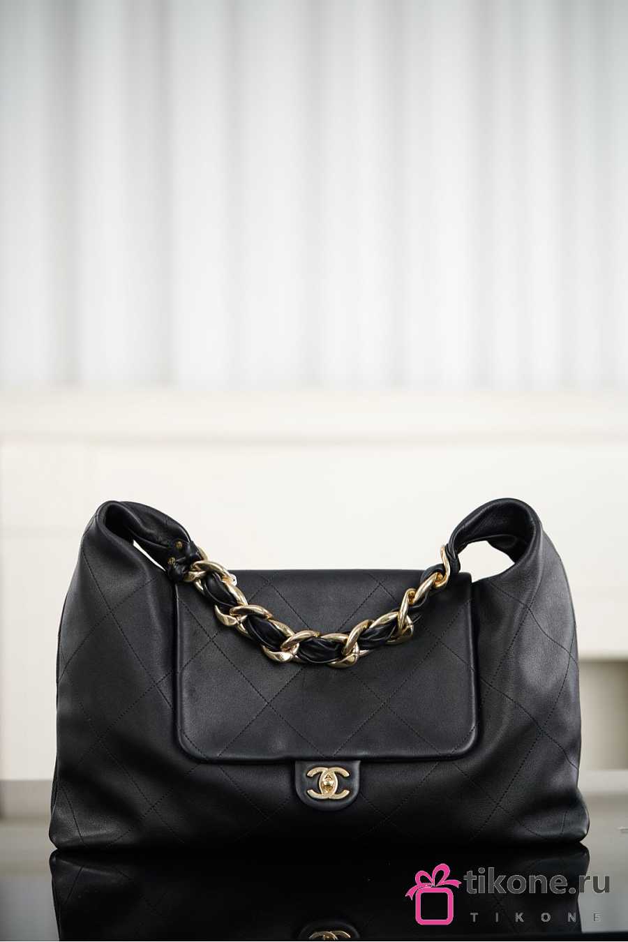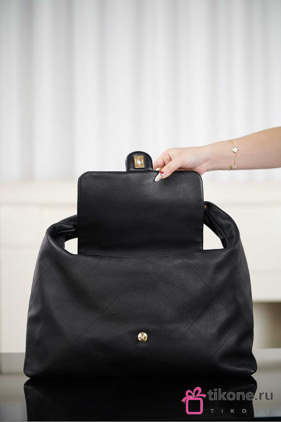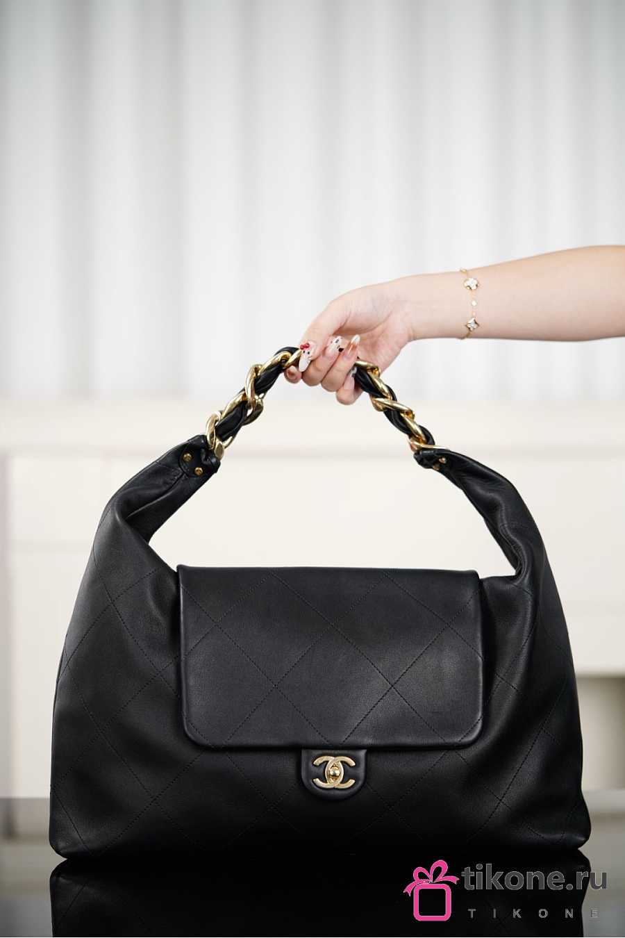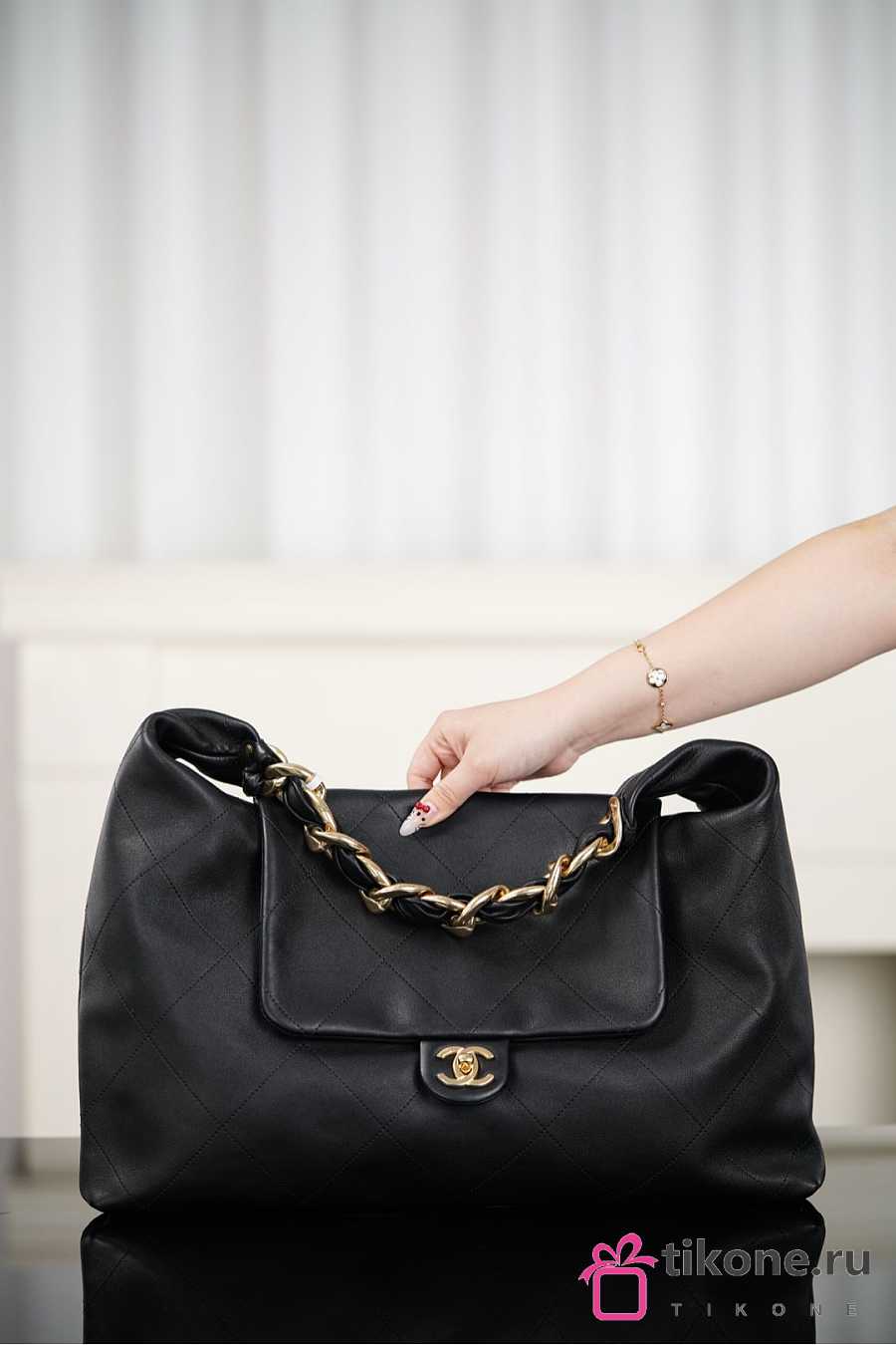 Chanel Maxi Hobo Bag Shiny Calfskin & Gold Tone Metal Black - 43x33x7cm