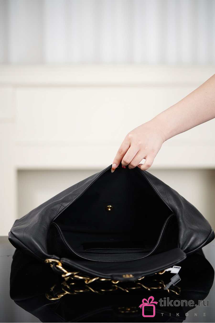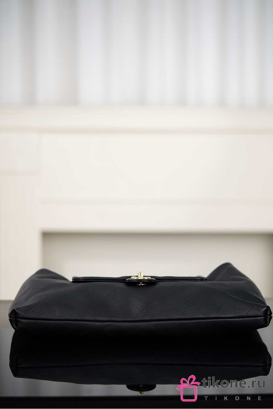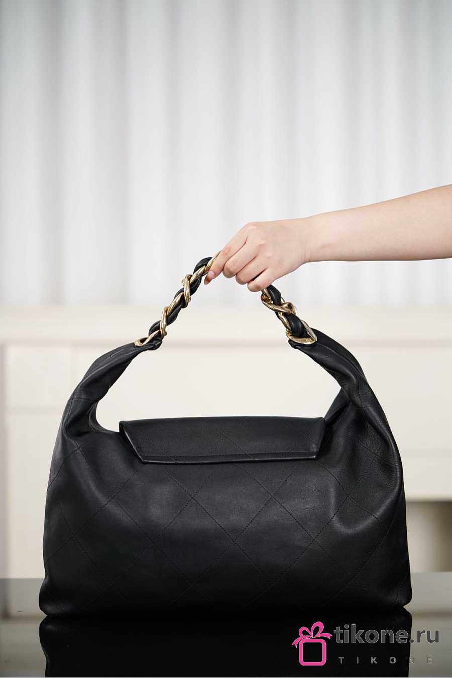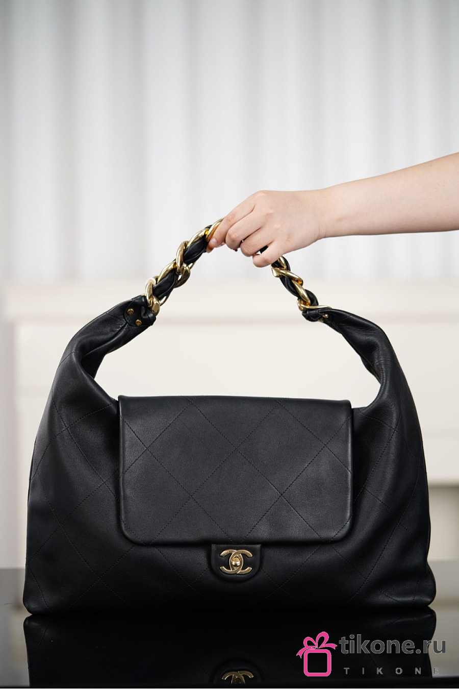 Chanel Maxi Hobo Bag Shiny Calfskin & Gold Tone Metal Black - 43x33x7cm