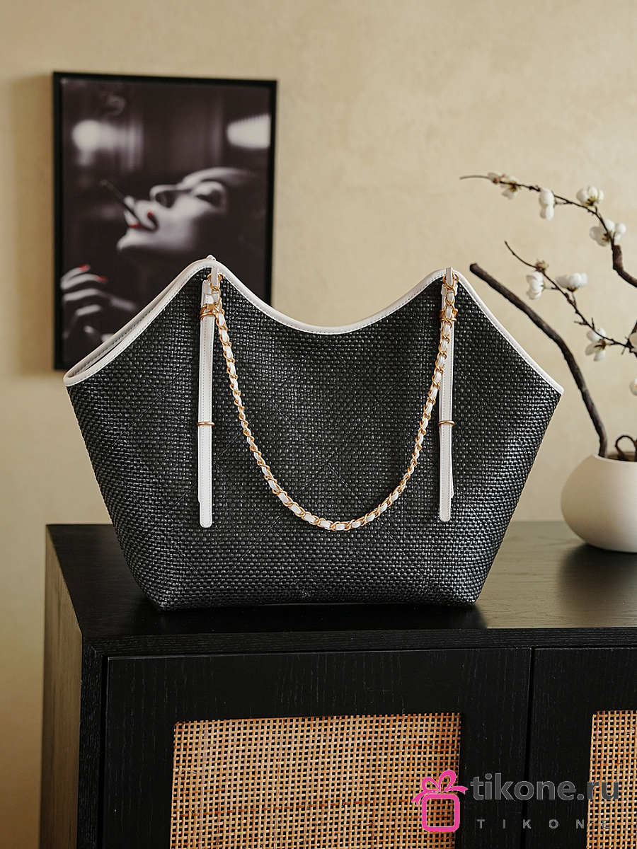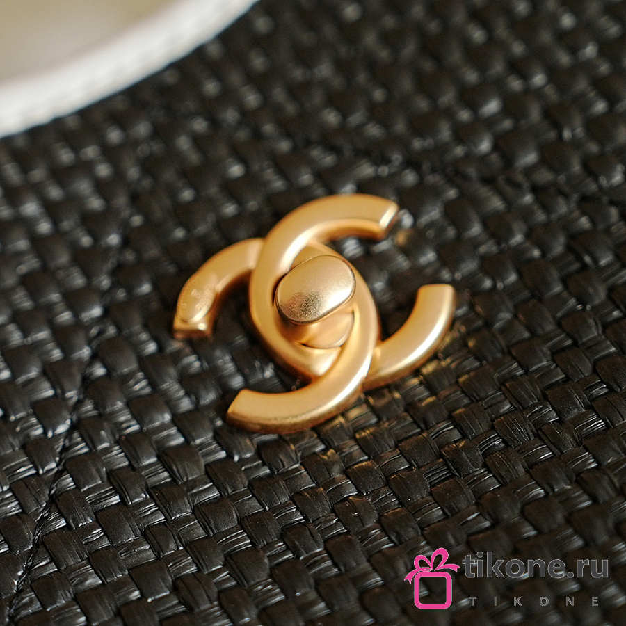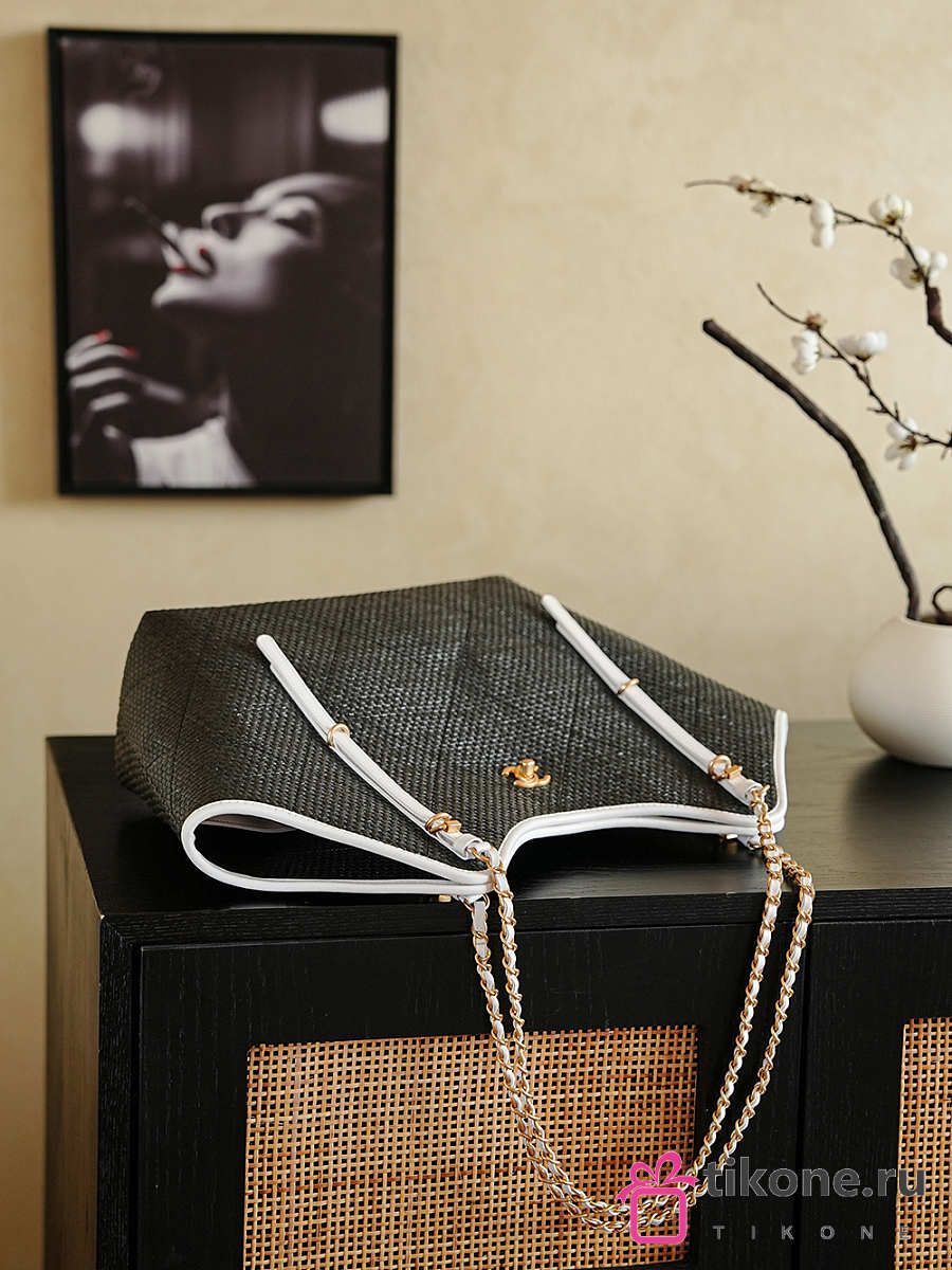 Chanel Maxi Shopping Bag Braided Raffia Calfskin & Gold-Tone Metal Black & White - 59x36x13cm