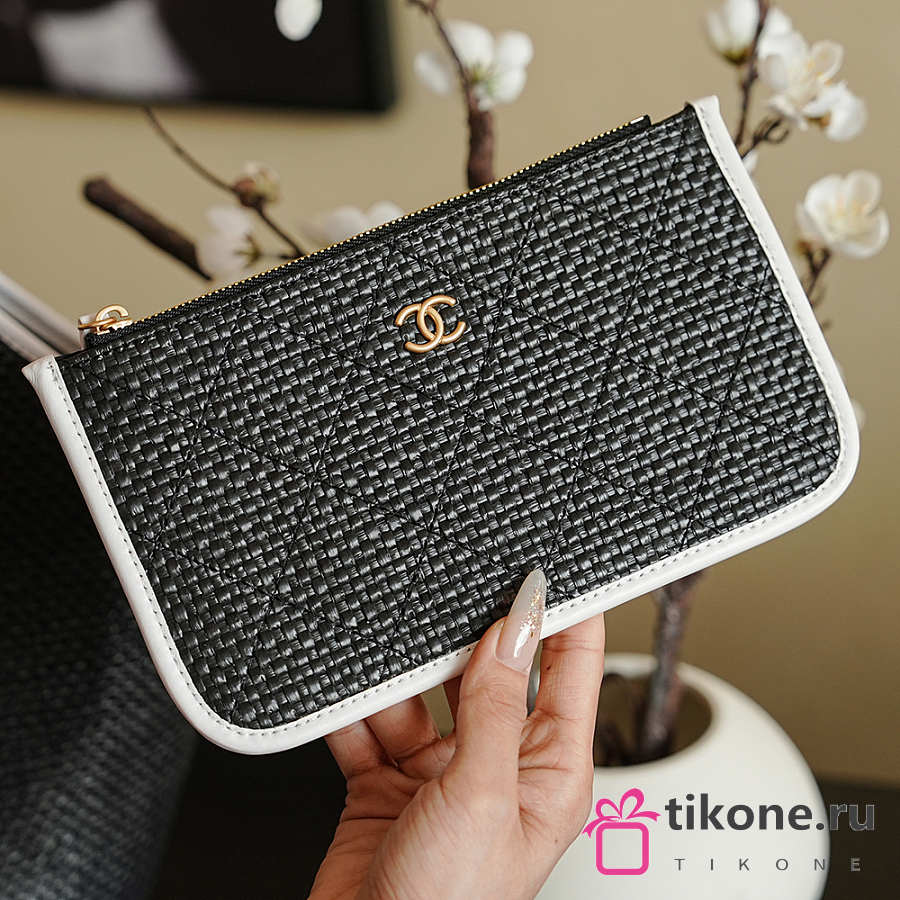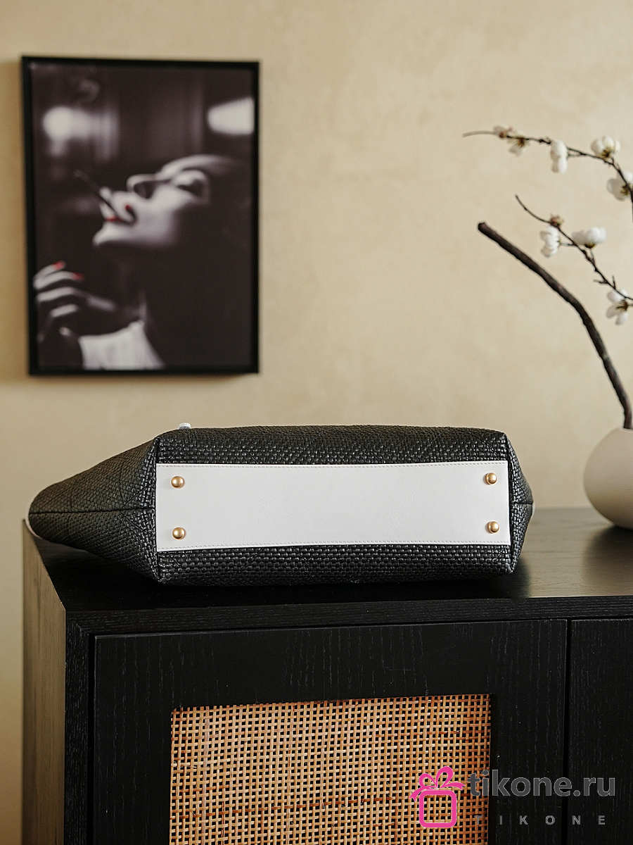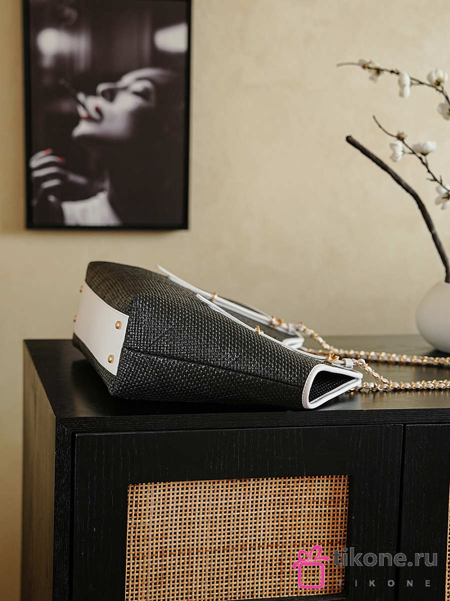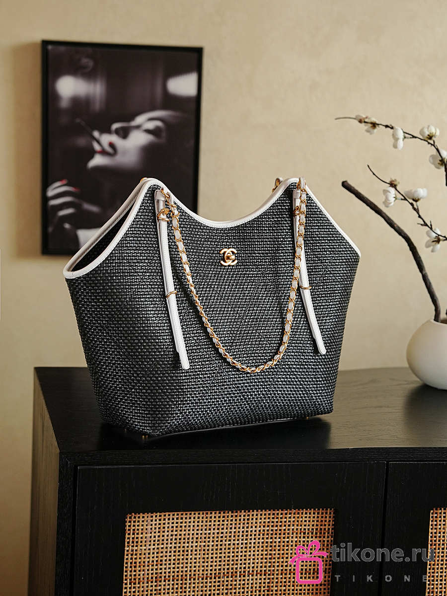 Chanel Maxi Shopping Bag Braided Raffia Calfskin & Gold-Tone Metal Black & White - 59x36x13cm