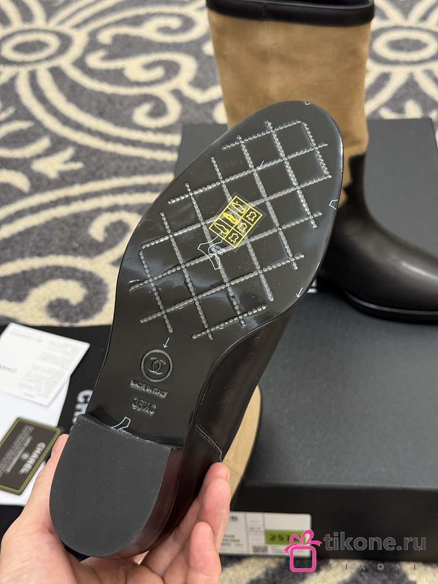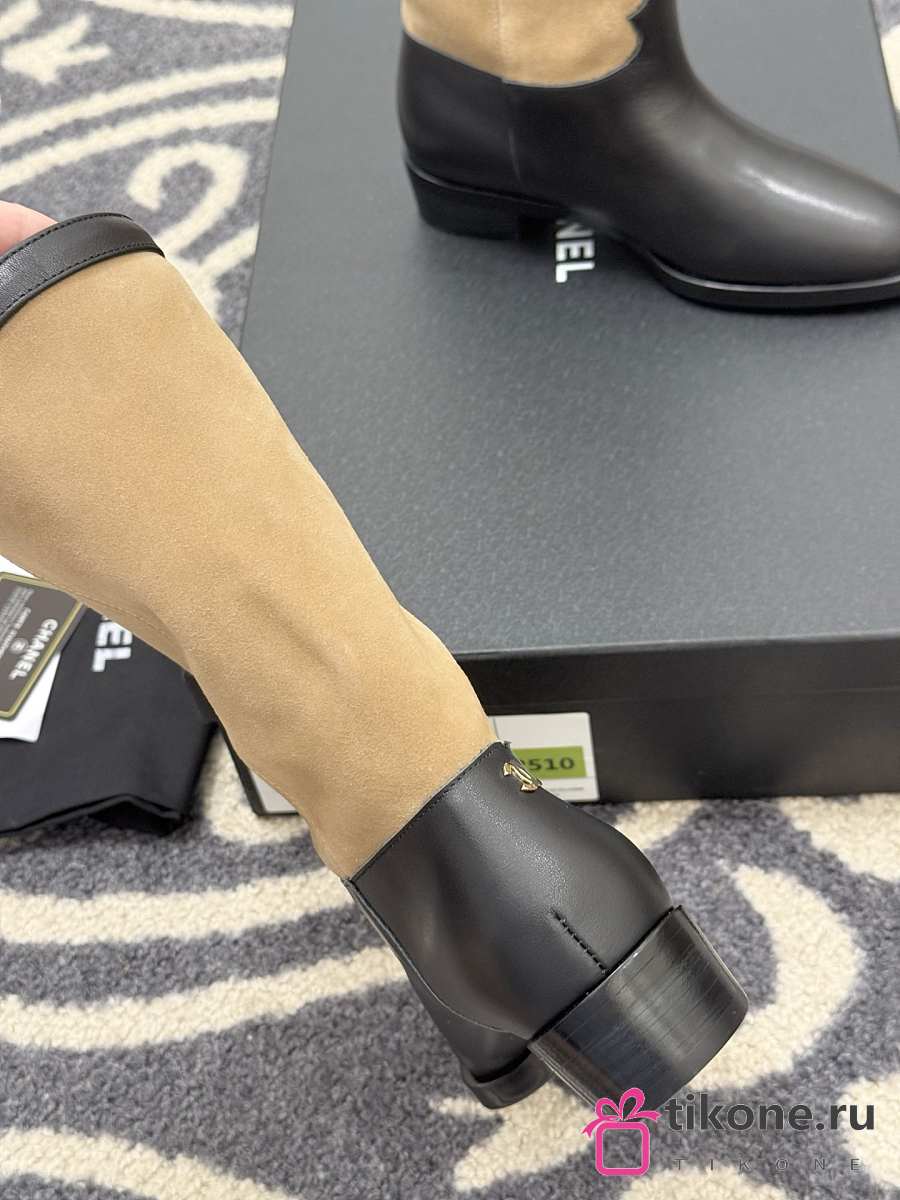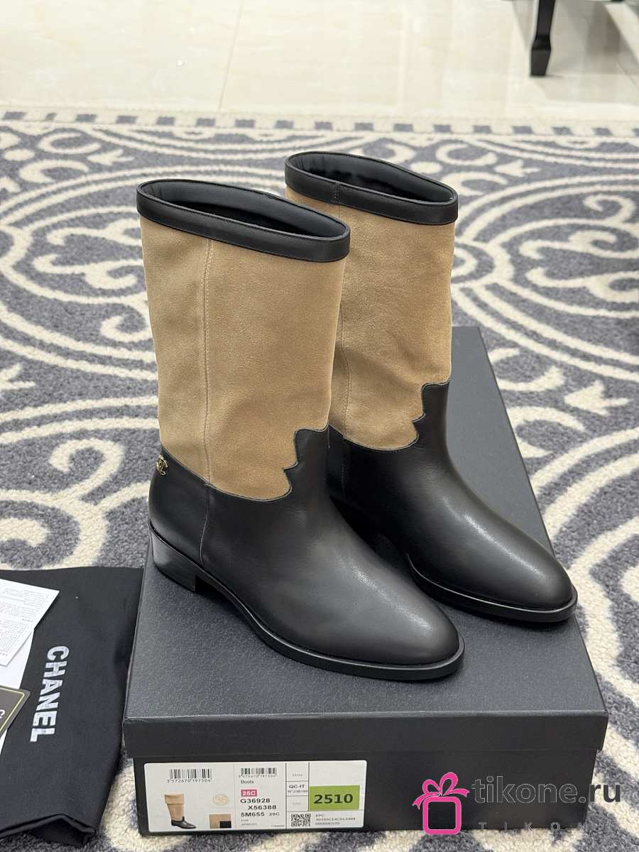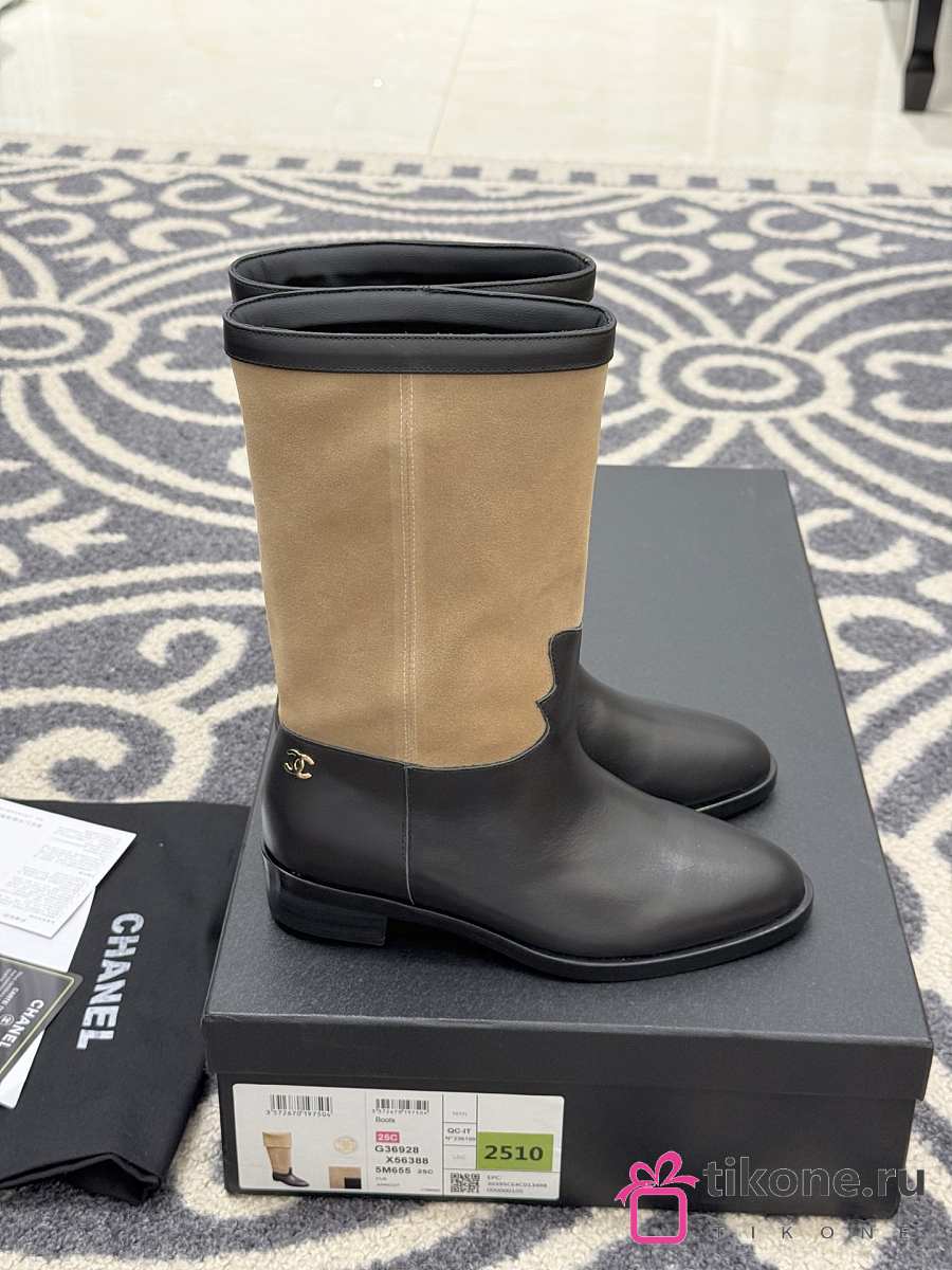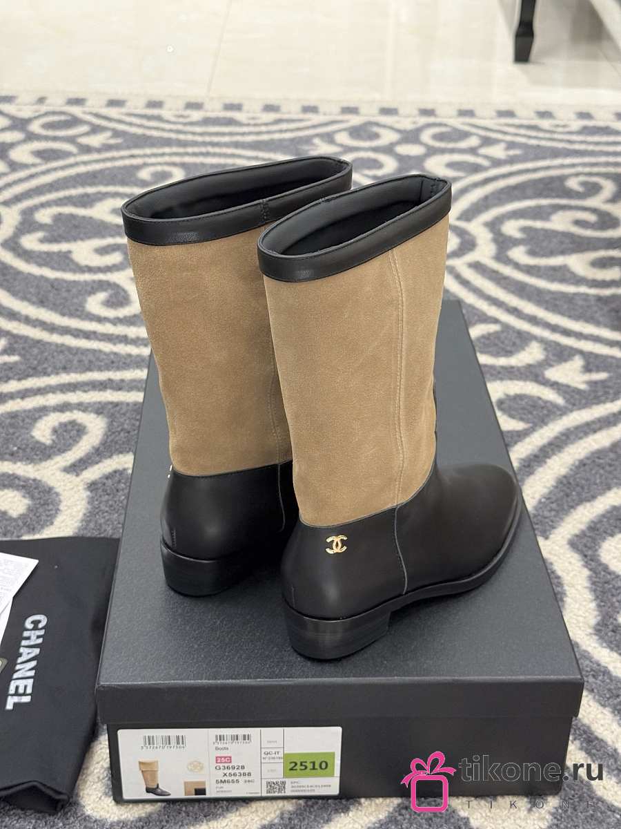 Chanel Mid-Calf Boots Suede Calfskin & Calfskin Brown Black 3.5cm