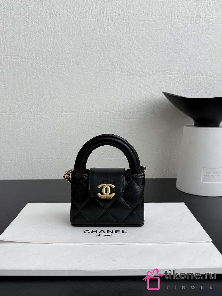 Chanel Mini Bag Charm Shiny Lambskin & Gold Tone Metal Black - 11.5x10x4cm